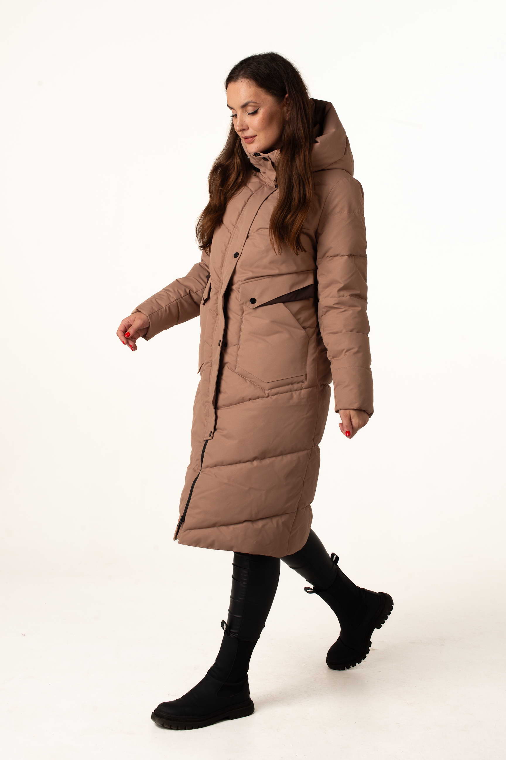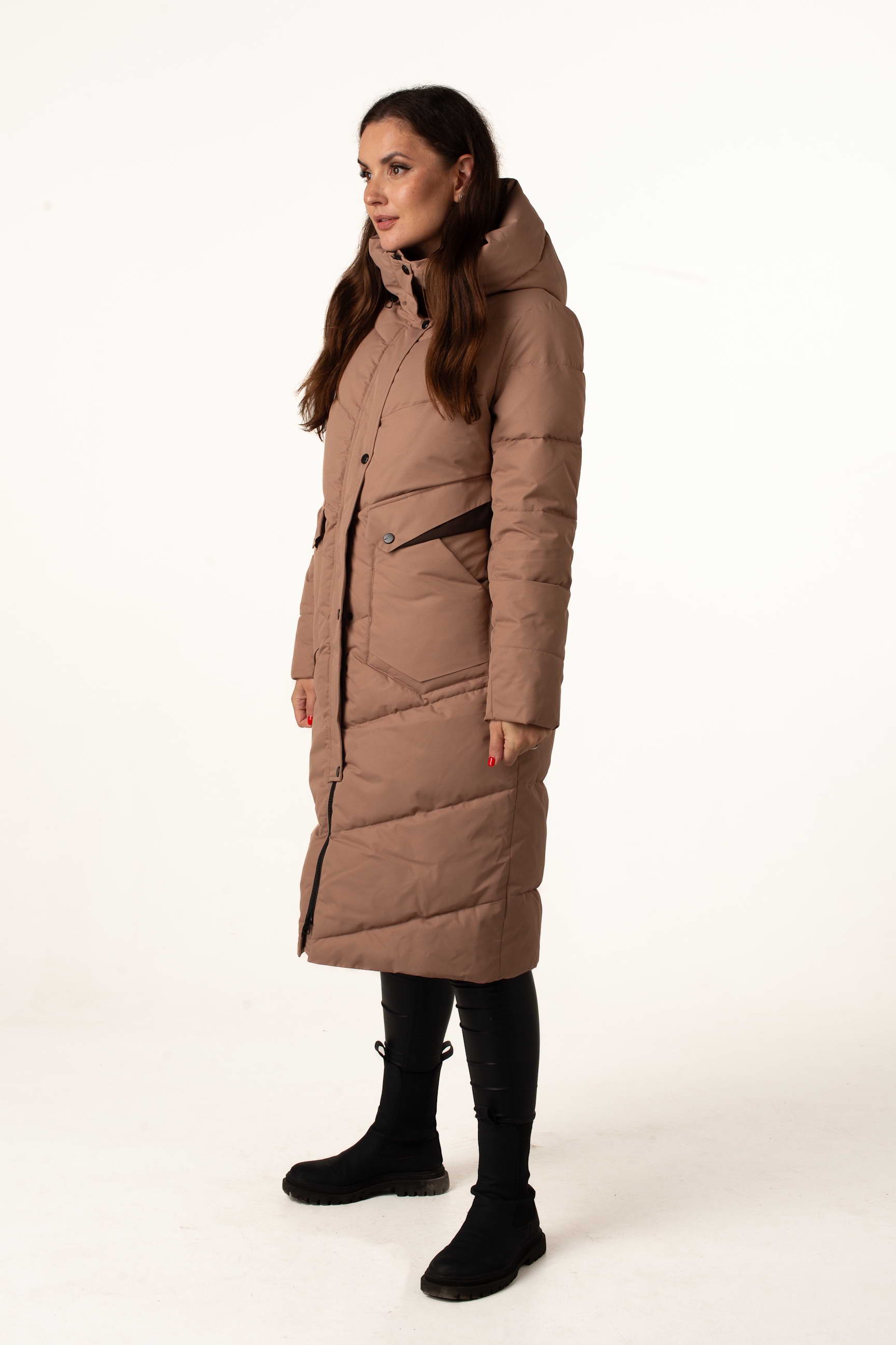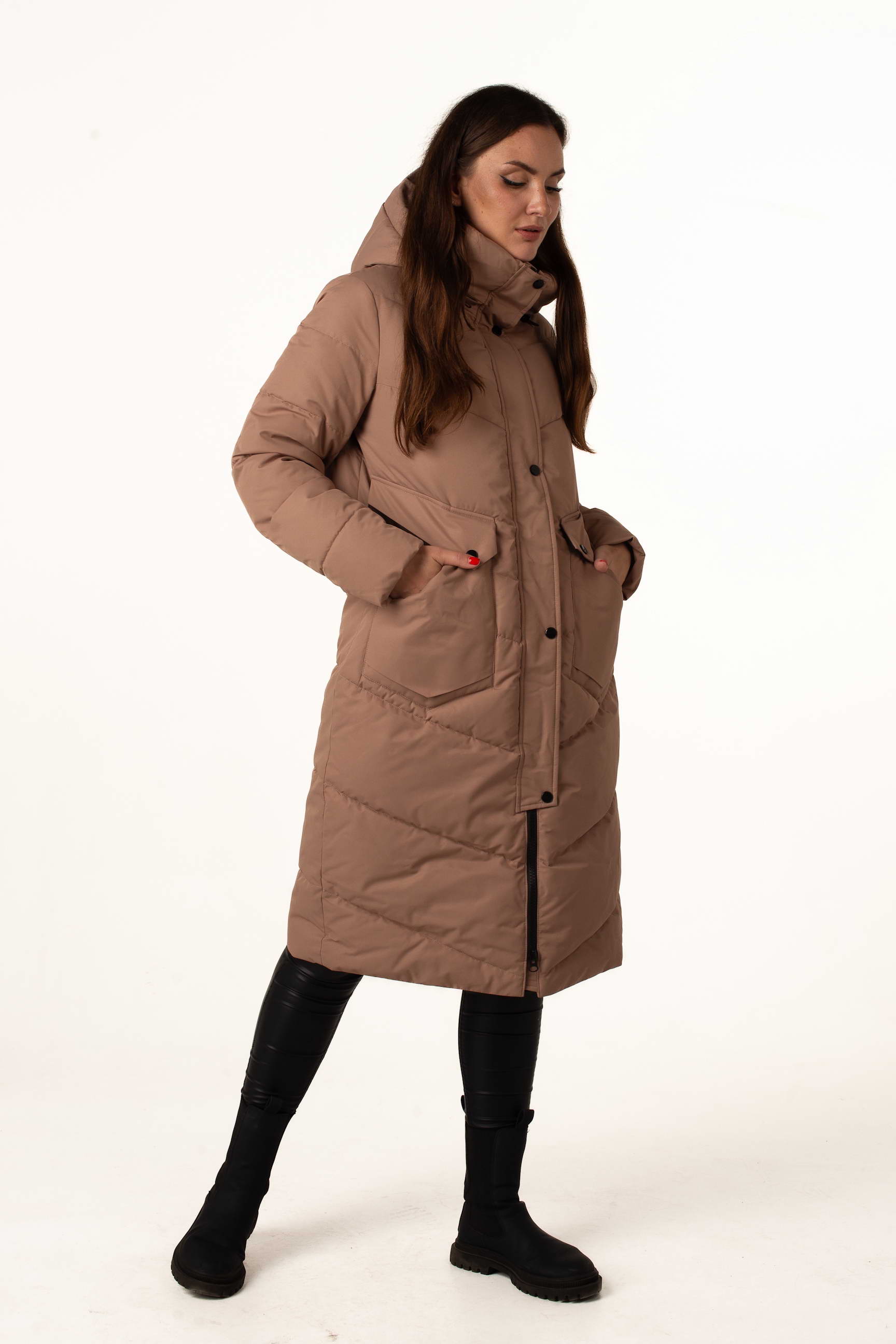 Жіночий біопуховик бежевого кольору поєднує стиль і функціональність, забезпечуючи тепло і комфорт у зимовий період. Легка, тепла і практична модель для щоденного носіння.