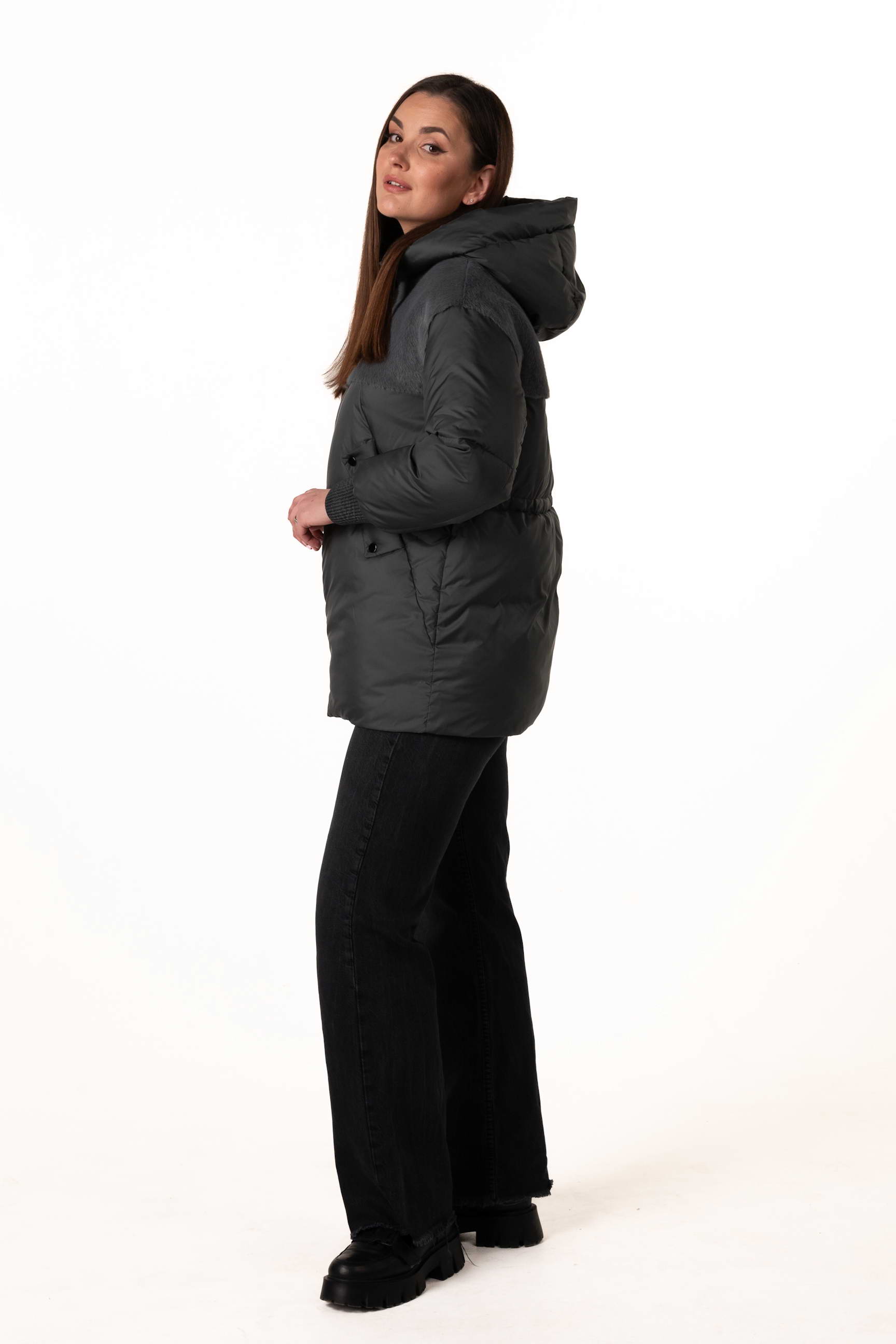 Прямий крій забезпечує свободу рухів і підходить для будь-якого типу фігури, а комір-стійка з капюшоном надійно захищає від вітру та холоду. Куліска по талії дозволяє регулювати посадку та формувати бажаний силует, роблячи образ більш витонченим або зручним для активного руху.