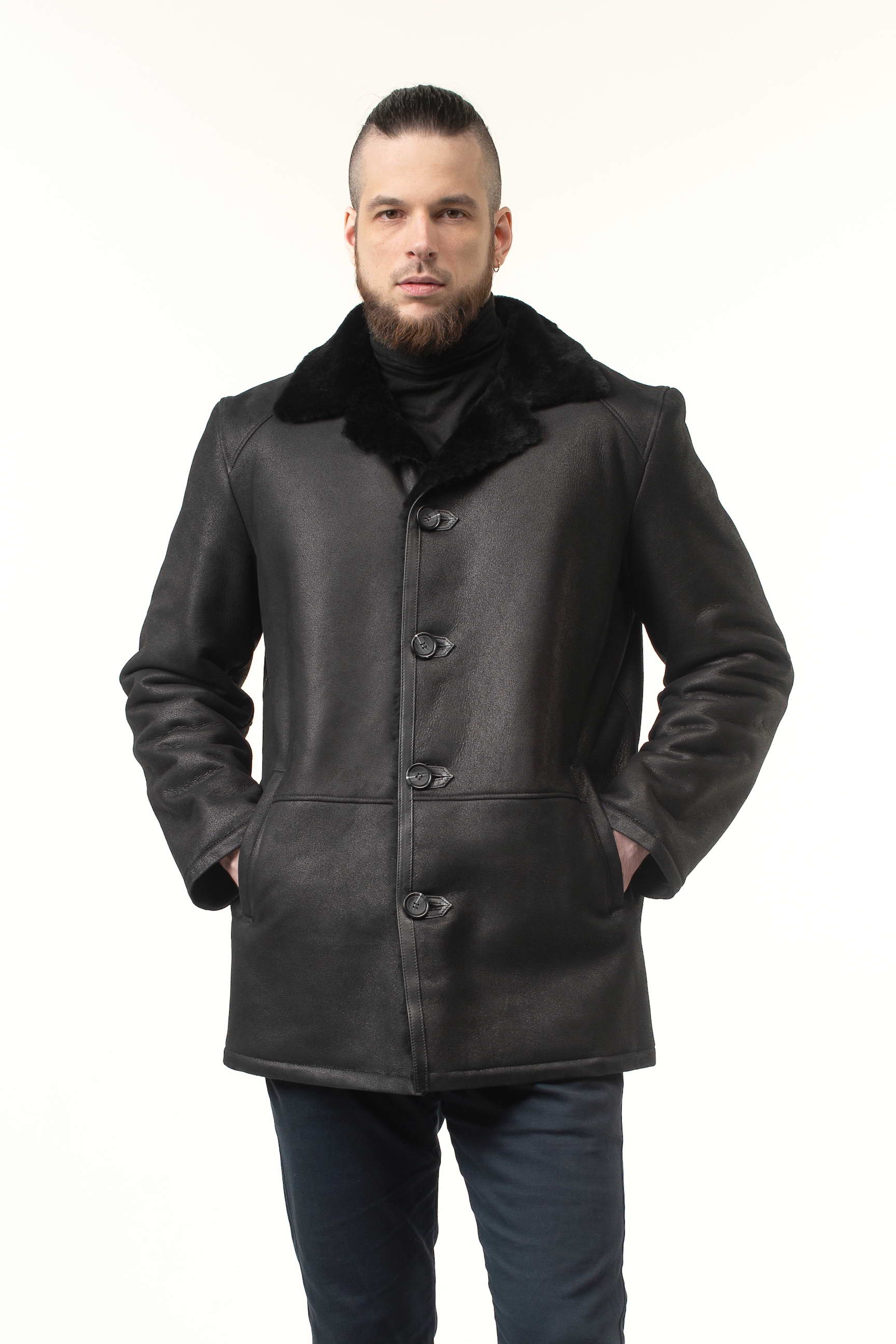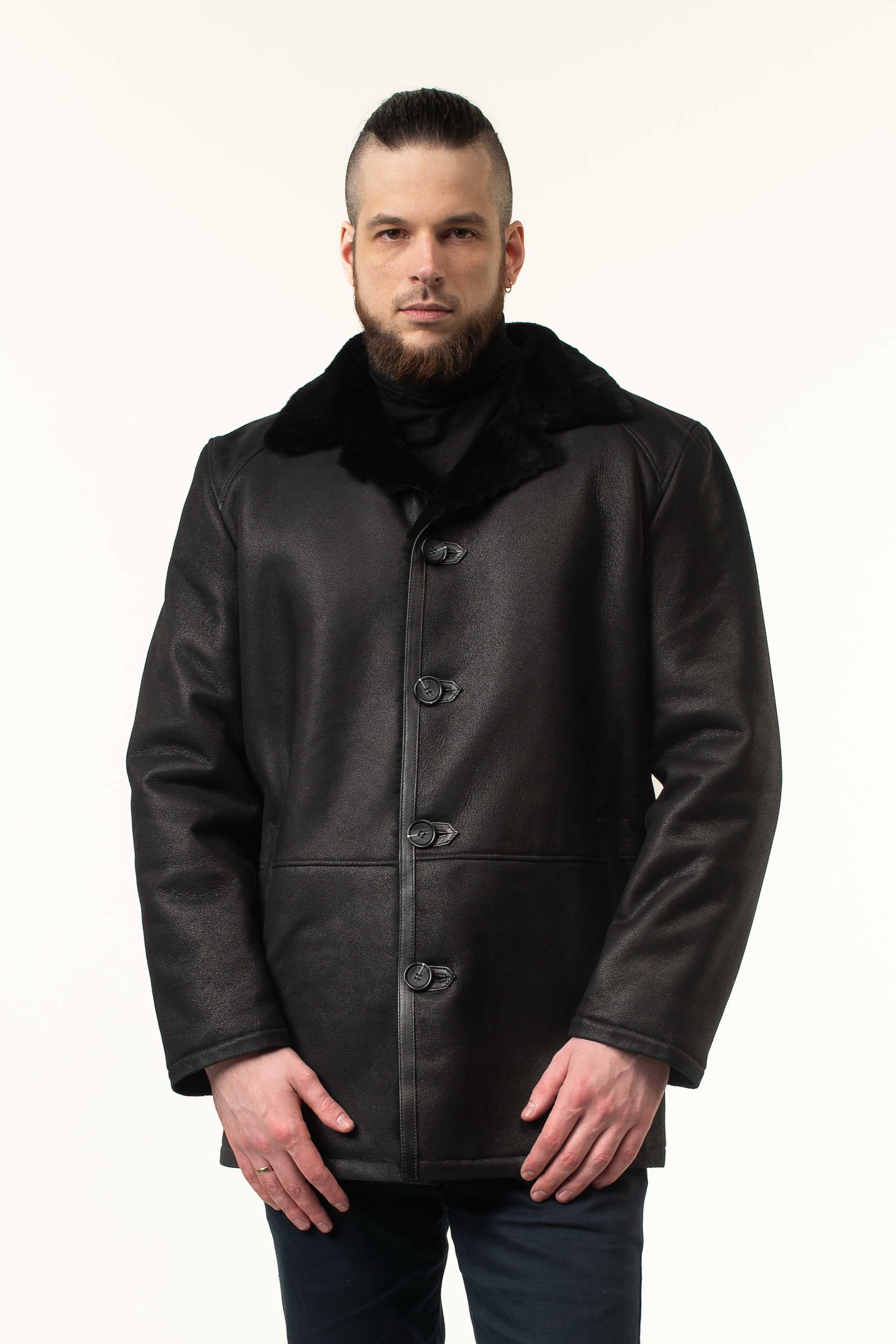 Чоловіча дублянка з натуральної овчини чорна