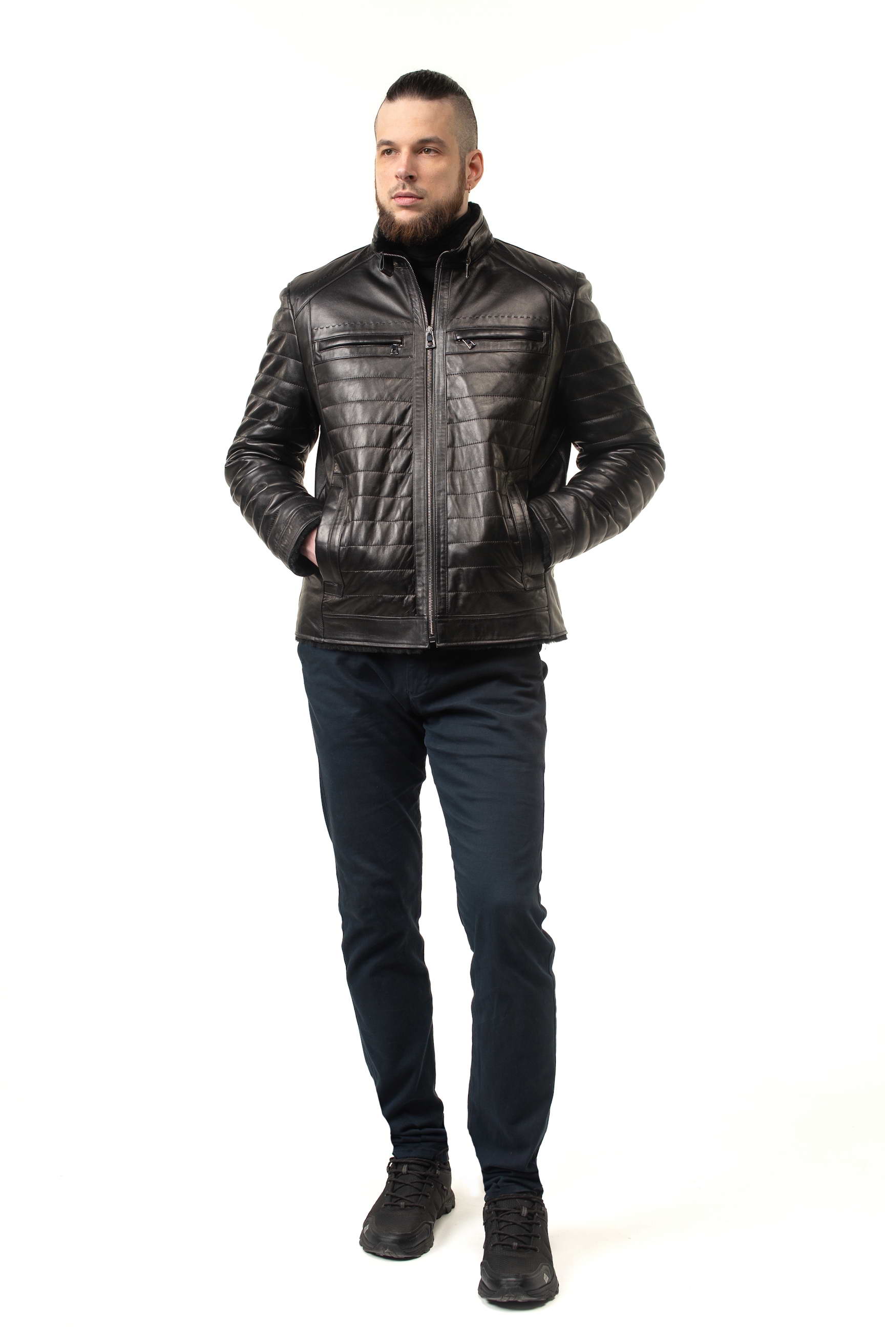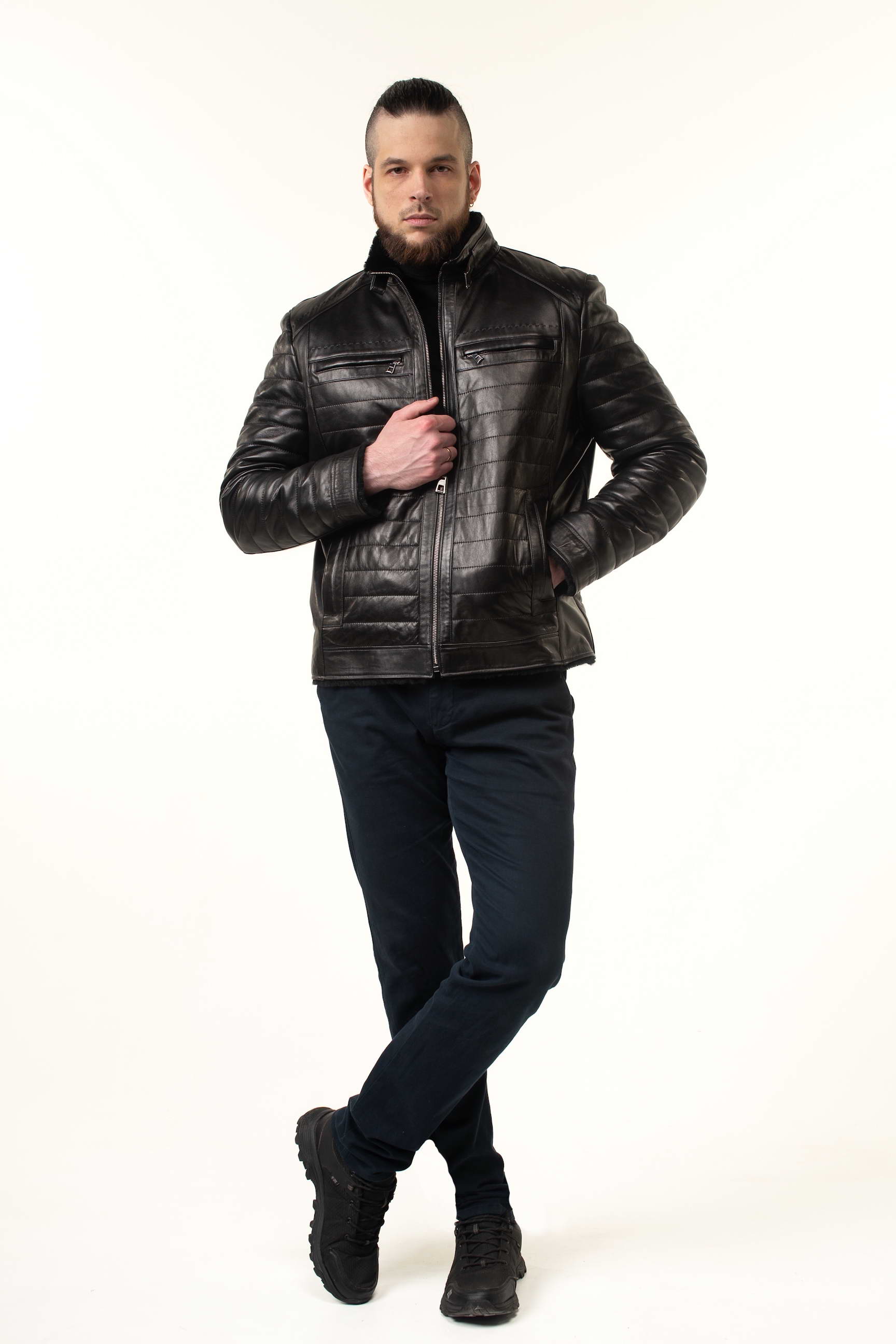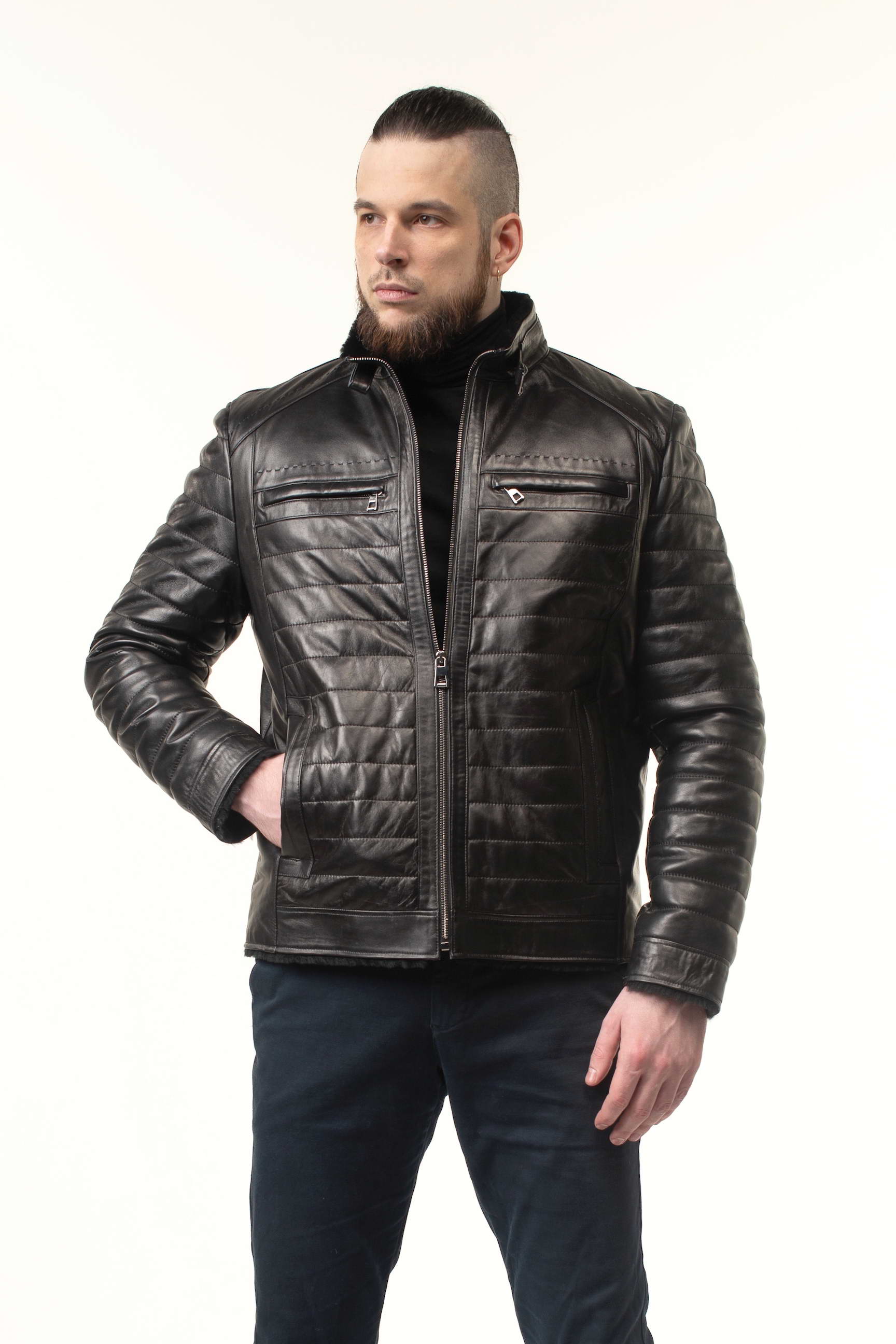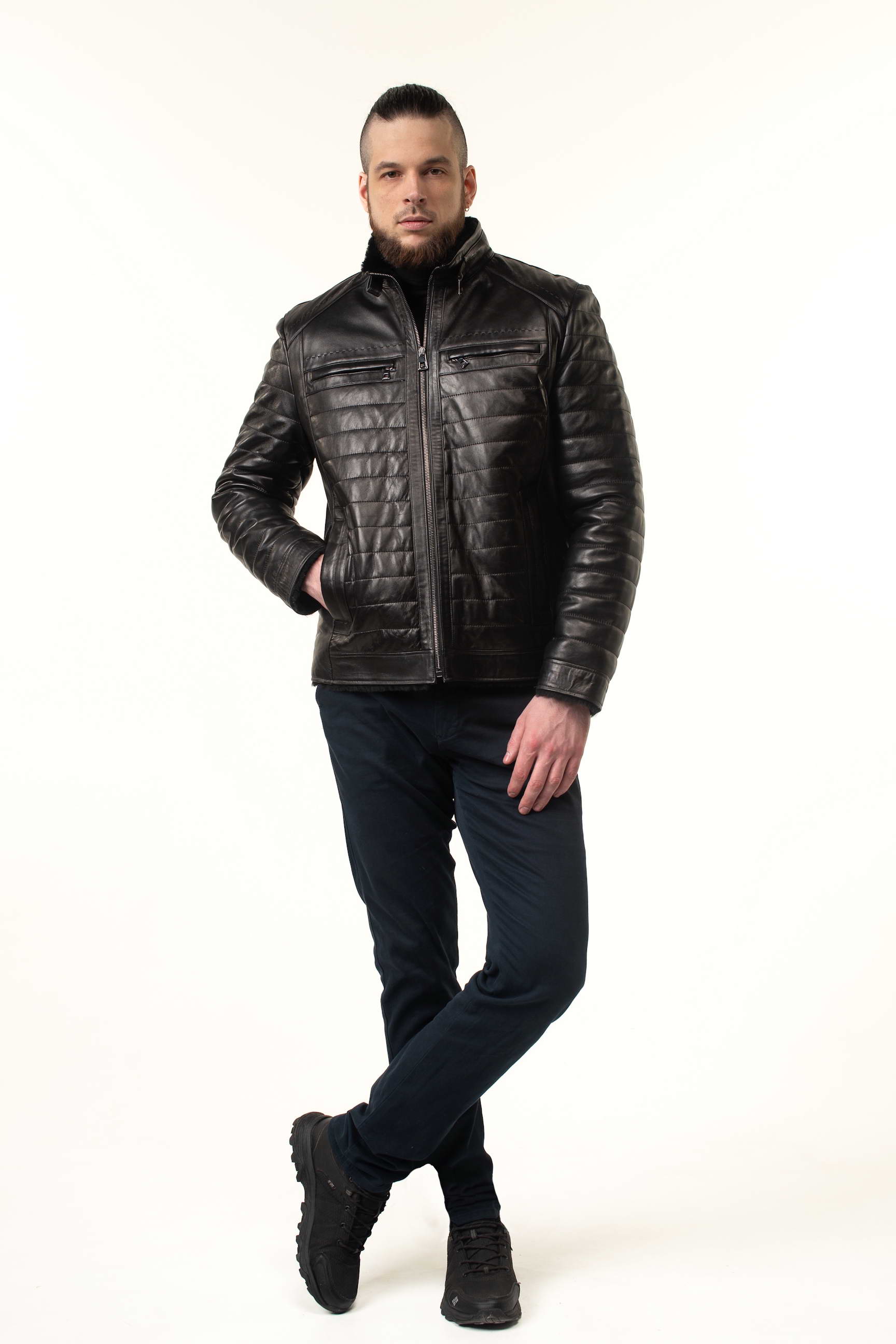 Чоловіча шкіряна дублянка-сендвіч чорного кольору — універсальний вибір для зимового гардеробу: