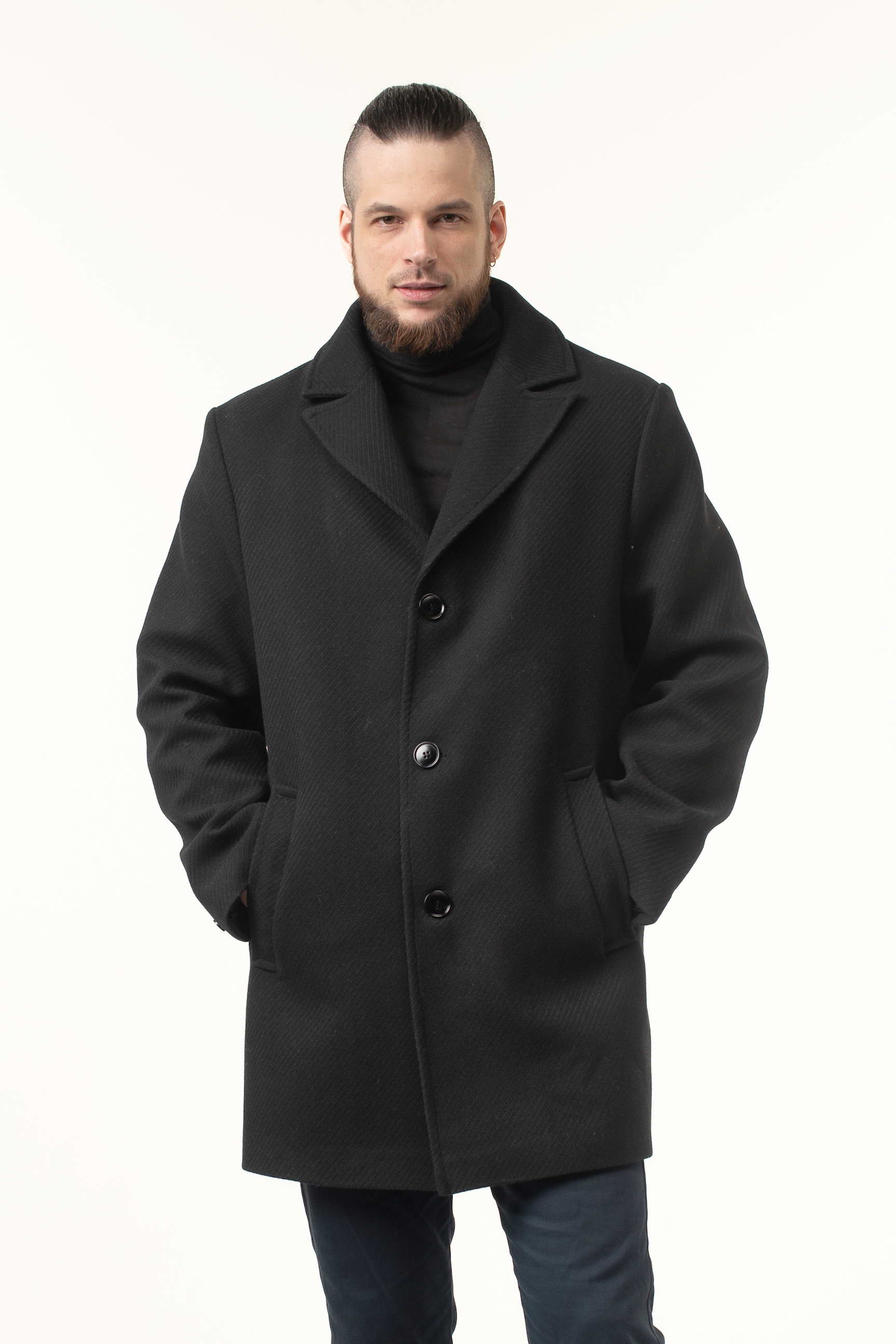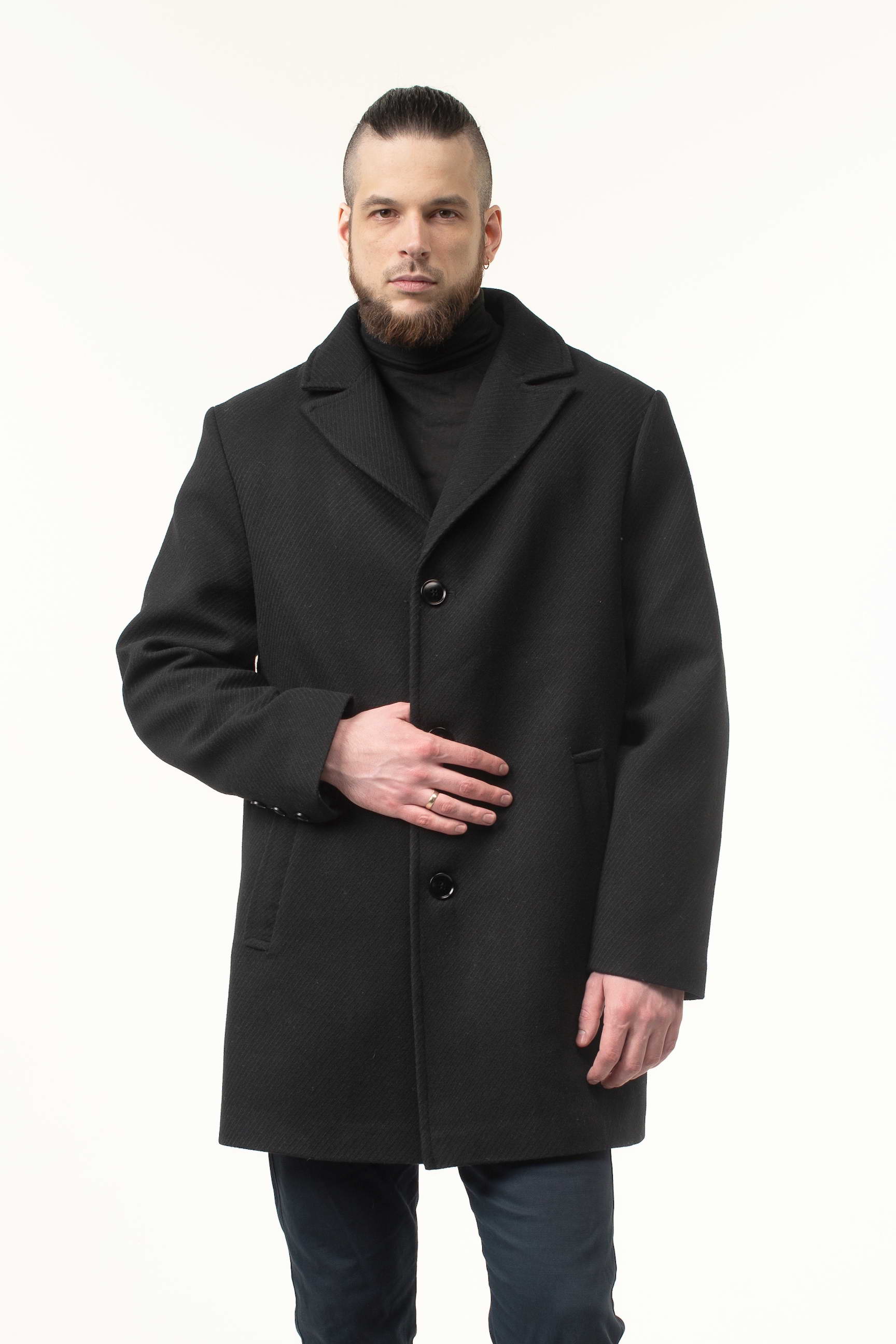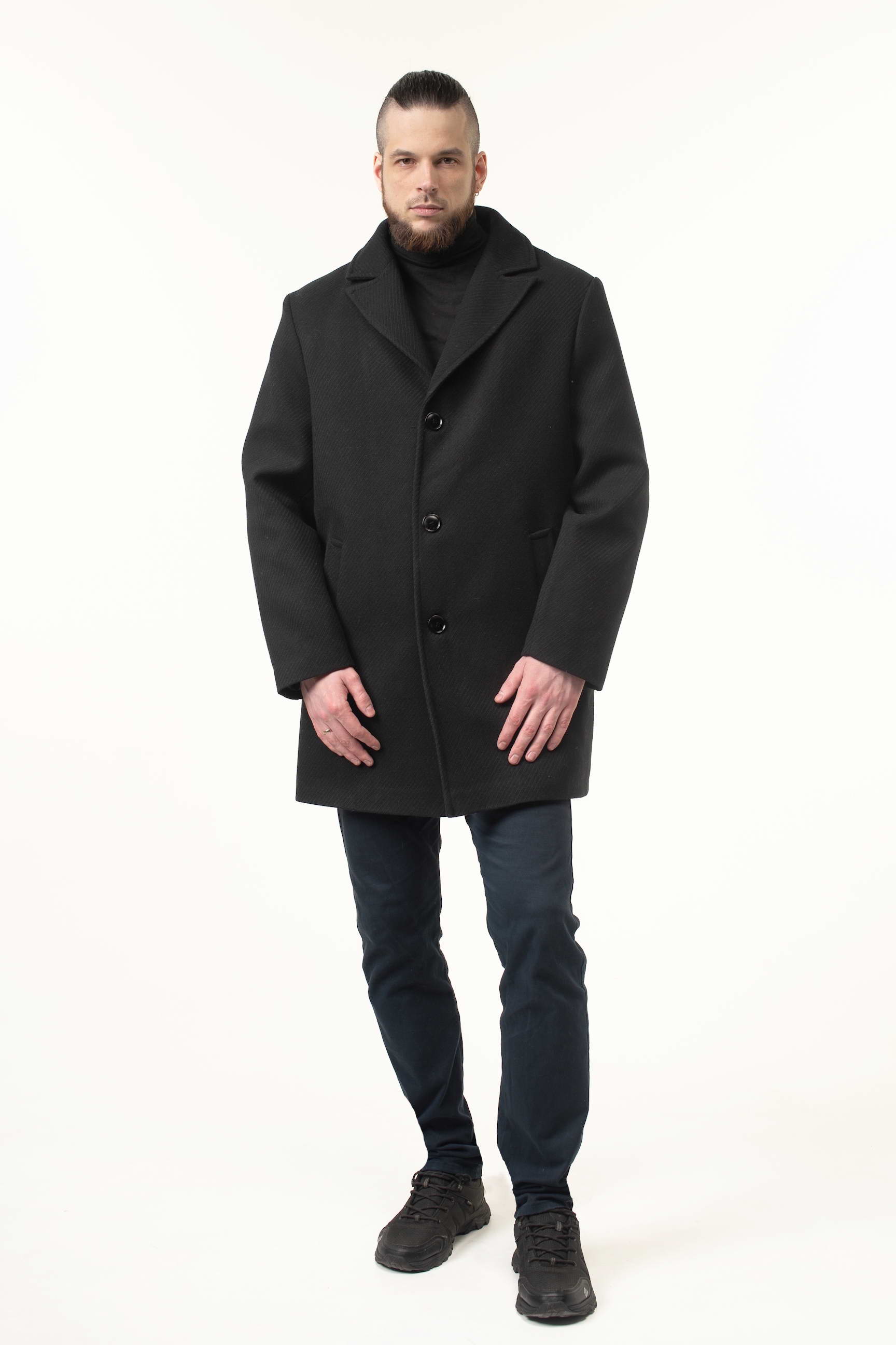 Замовляйте зараз і купуйте чоловіче пальто чорного кольору з пальтової тканини, яке залишатиметься актуальним протягом багатьох сезонів завдяки класичному крою та елегантним деталям.