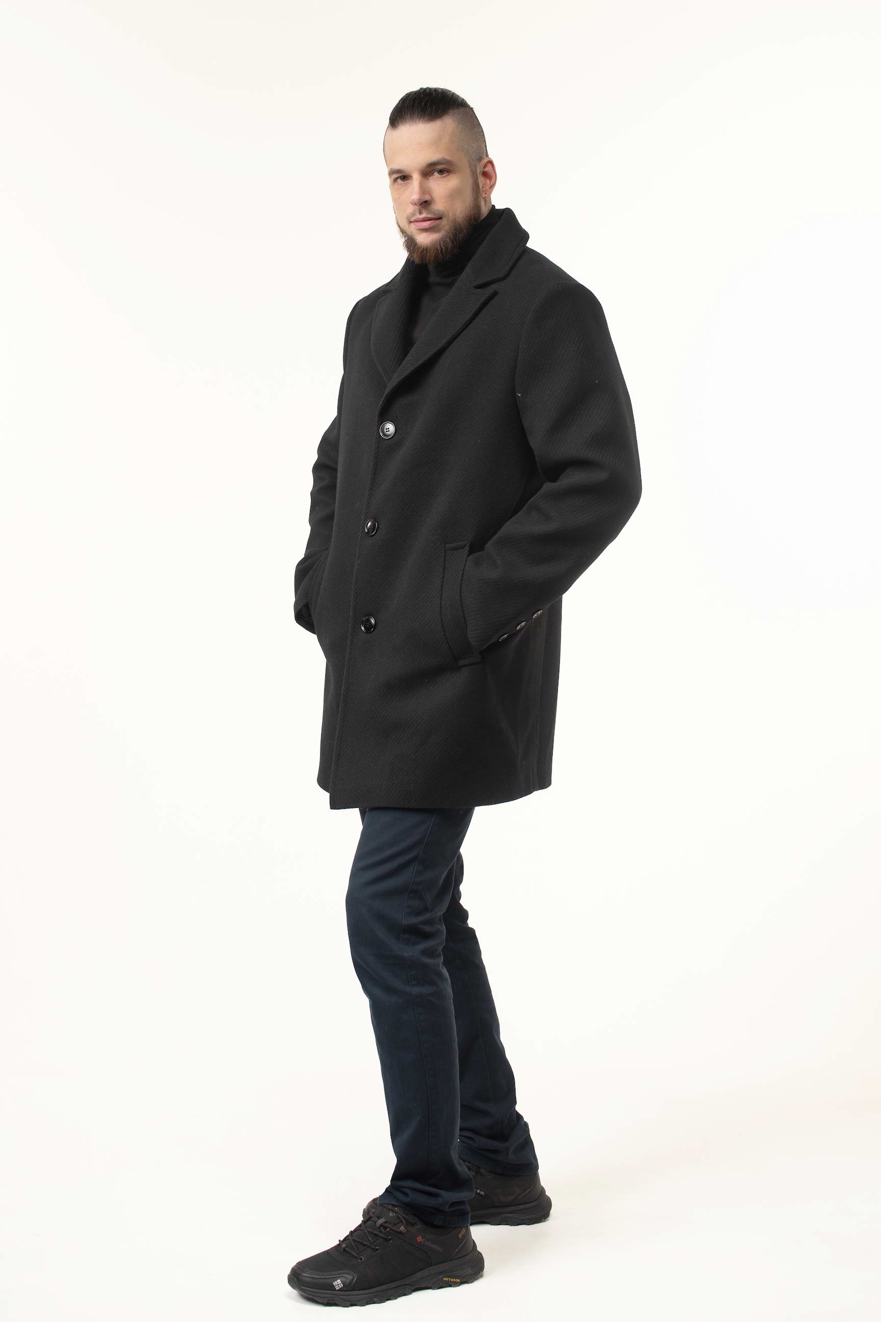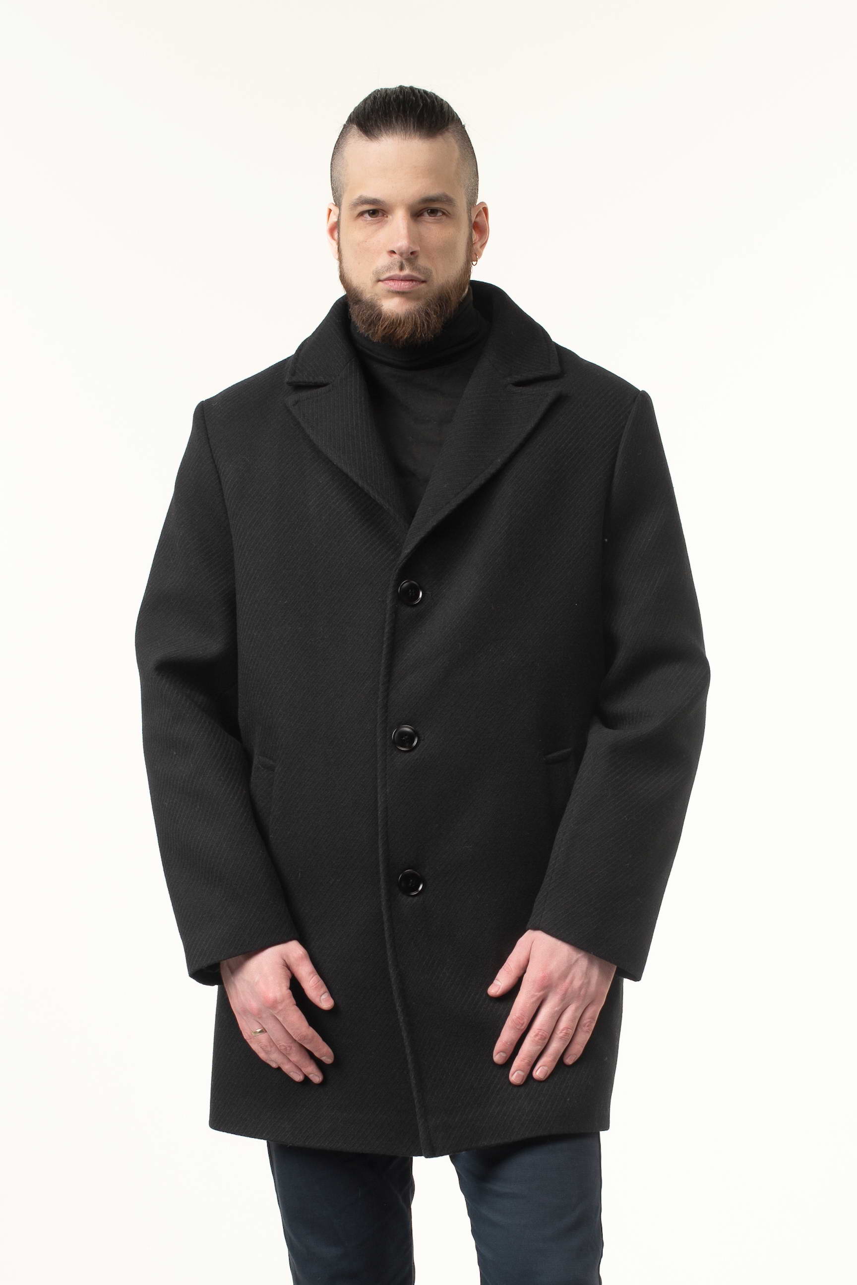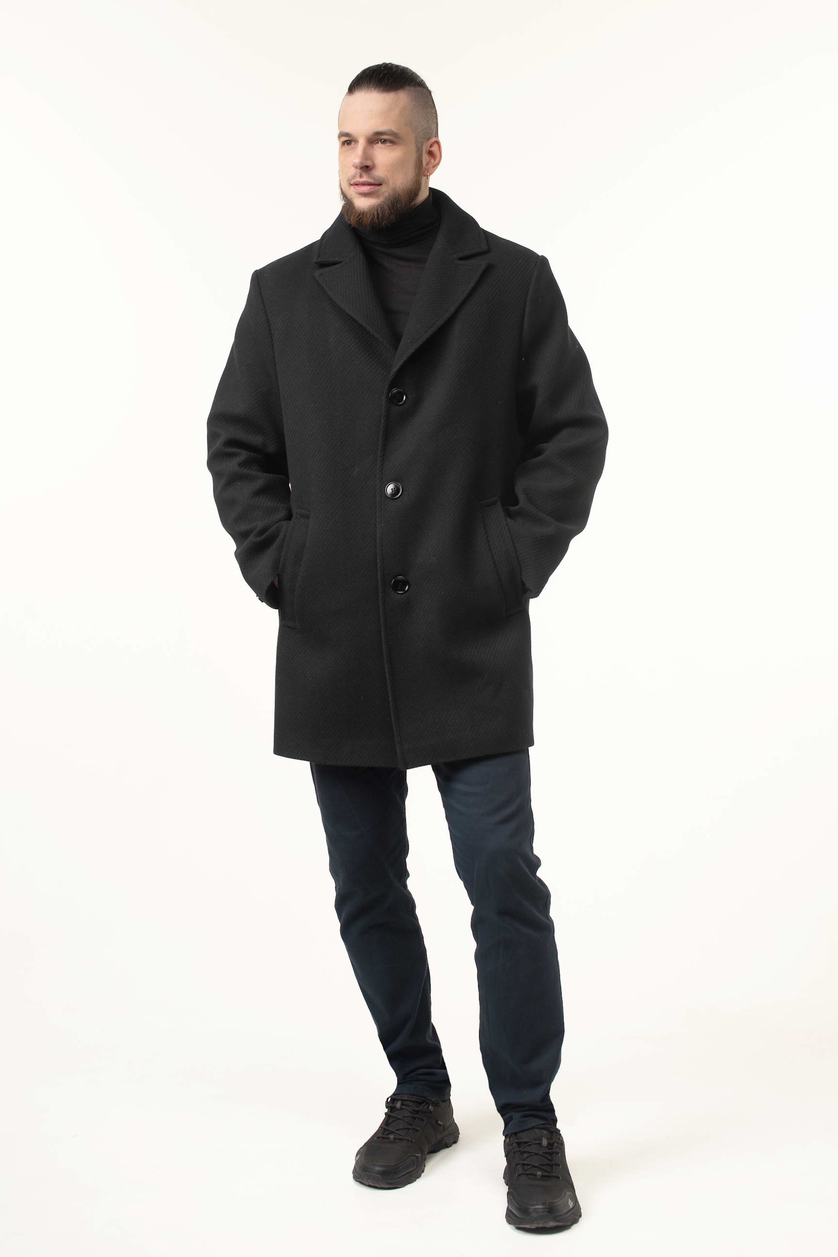 Замовляйте зараз і купуйте чоловіче пальто чорного кольору з пальтової тканини, яке залишатиметься актуальним протягом багатьох сезонів завдяки класичному крою та елегантним деталям.