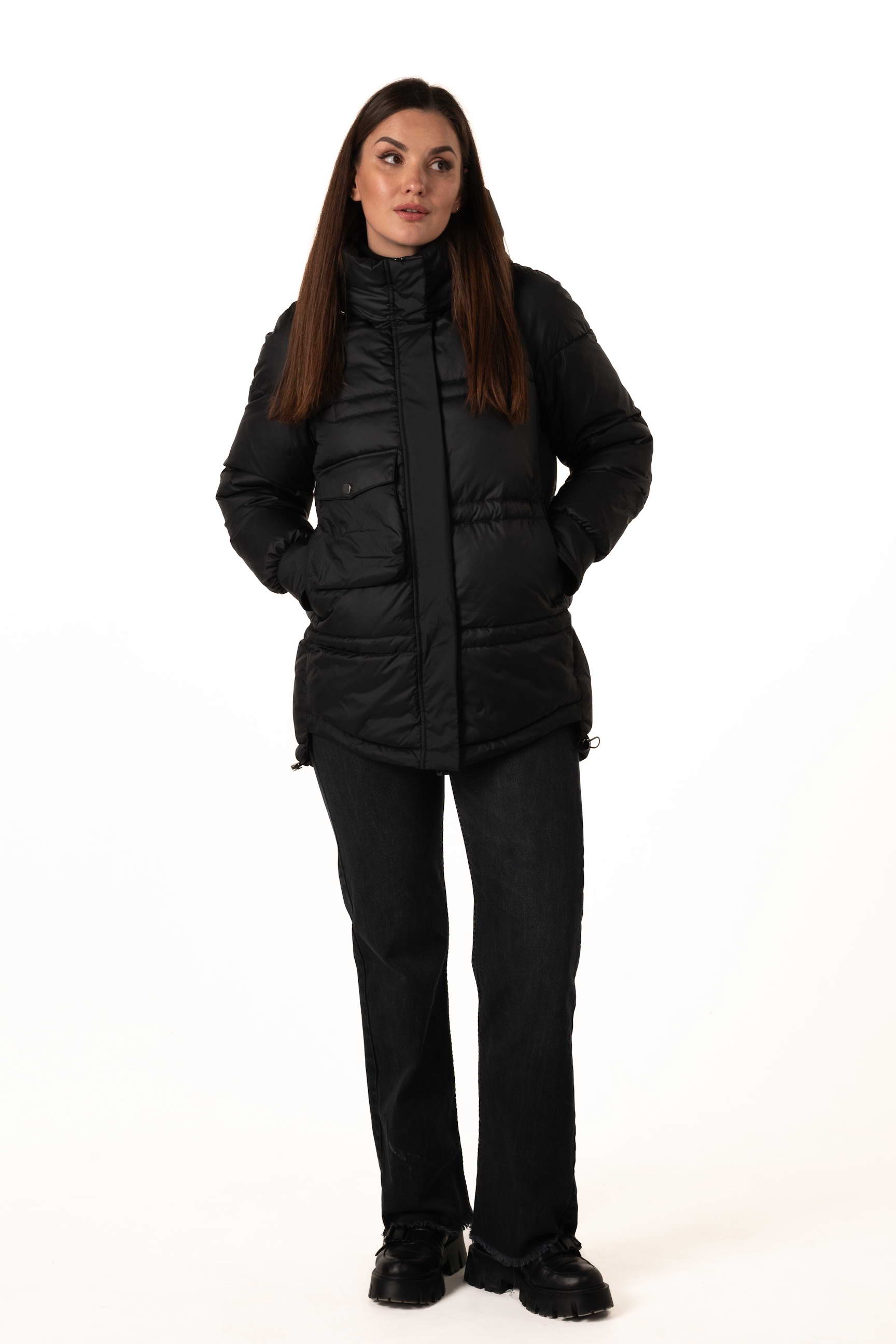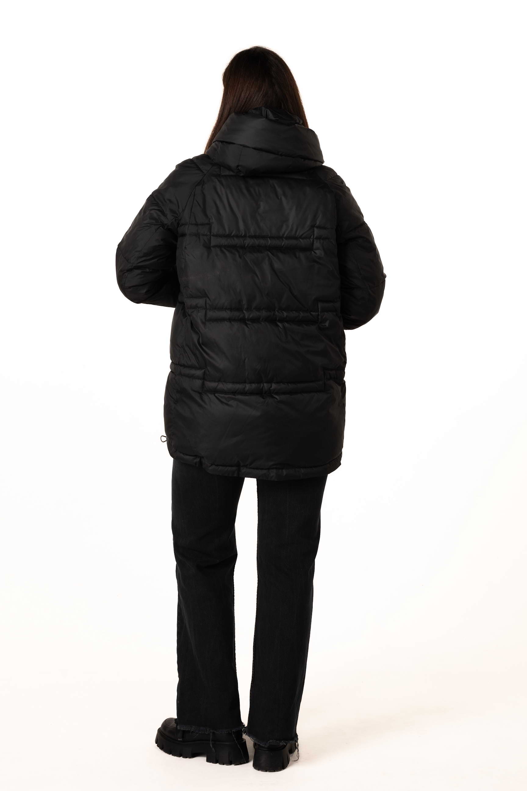 Регульовані куліски дозволяють підкреслити талію або додати об’єму за потреби, формуючи бажаний силует і роблячи носіння пуховика більш комфортним.