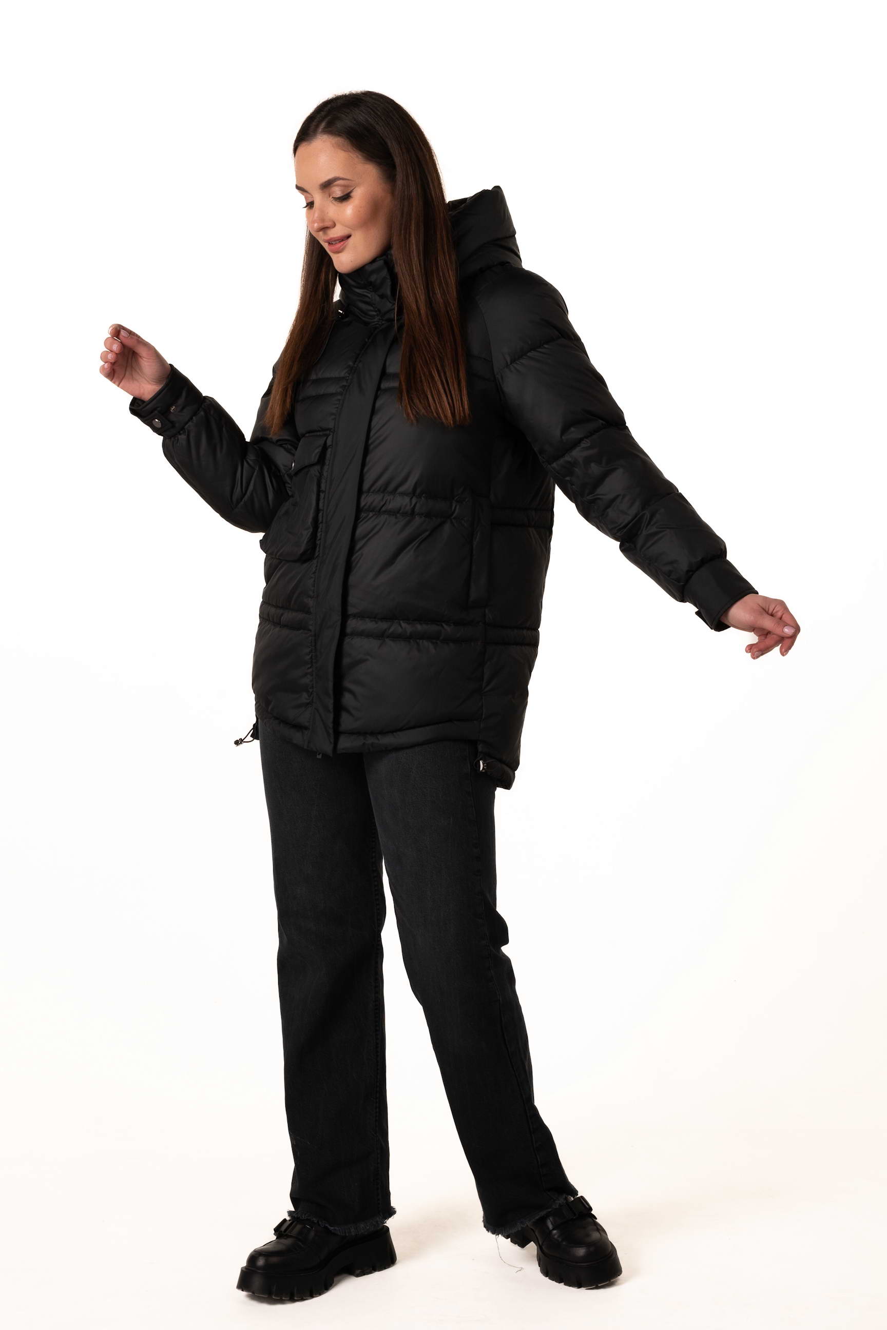 Прямий крій формує рівний силует, не обмежує рухів і дозволяє носити під пуховиком теплі багатошарові образи.