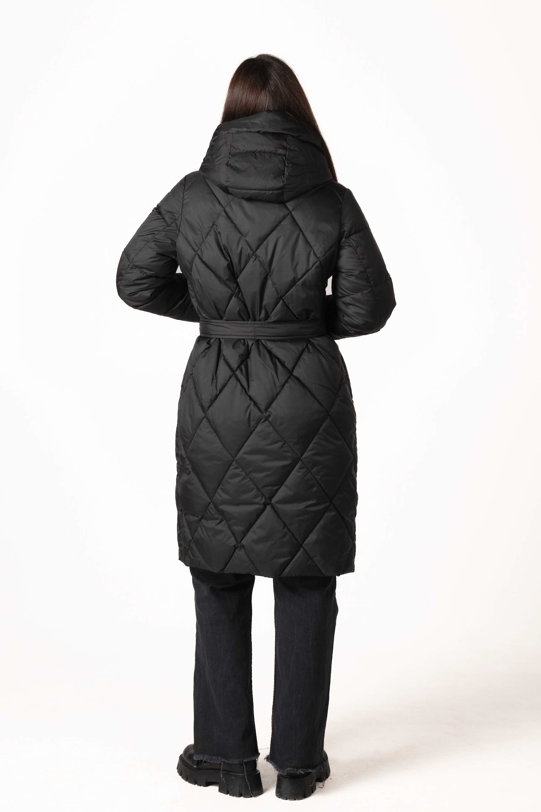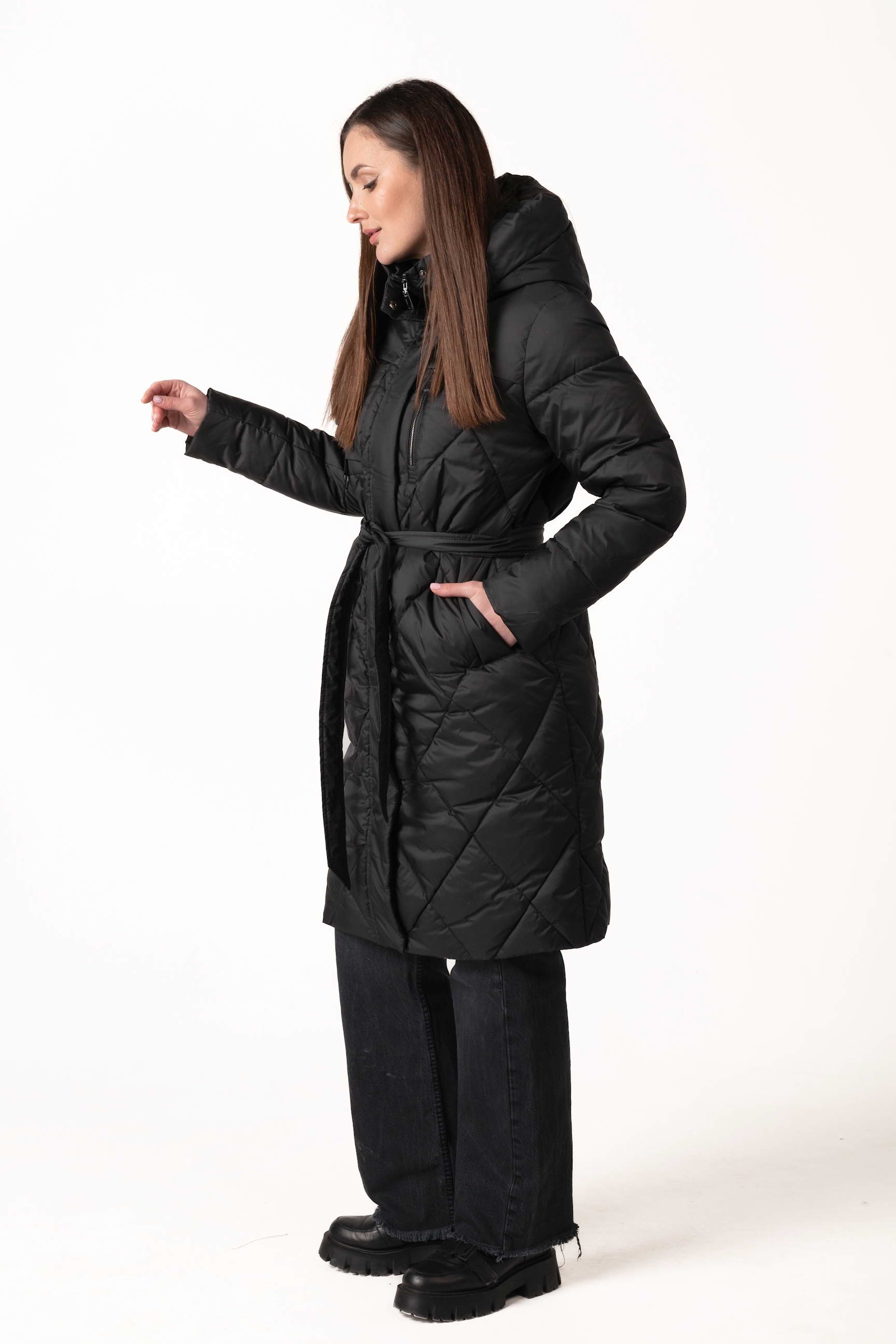 Елегантний жіночий біопуховик чорного кольору — це вдале поєднання класичного дизайну та сучасної функціональності для зимового сезону. Ромбовидна прострочка додає моделі виразності й підкреслює силует, роблячи пуховик стильним елементом повсякденного гардероба. Якщо ви шукаєте, де купити жіночий зимовий пуховик, ця модель стане універсальним вибором для холодної пори року.