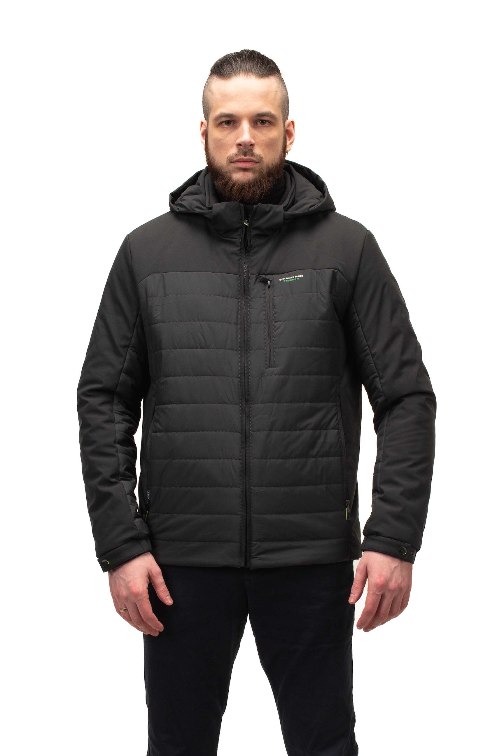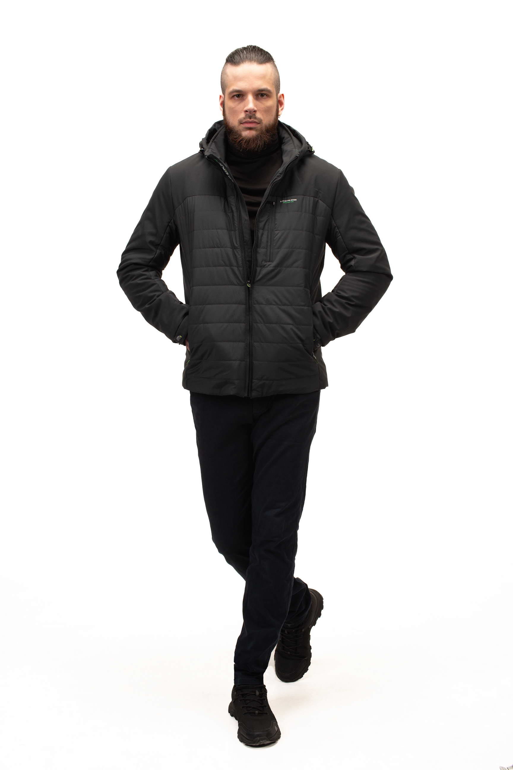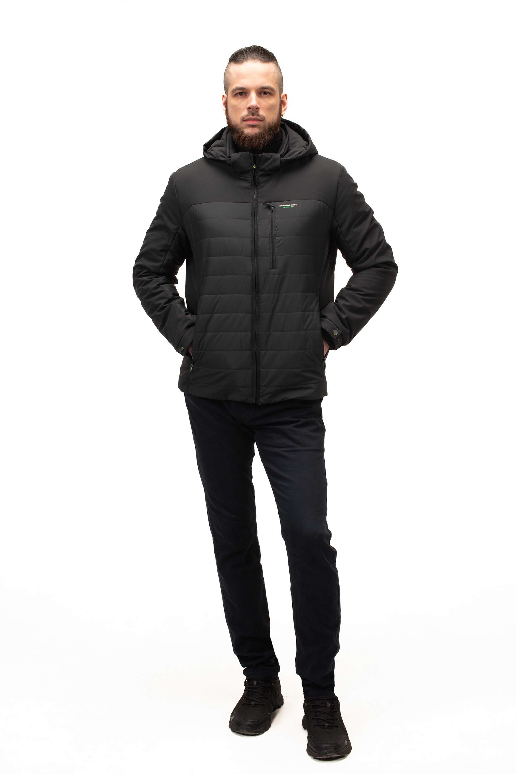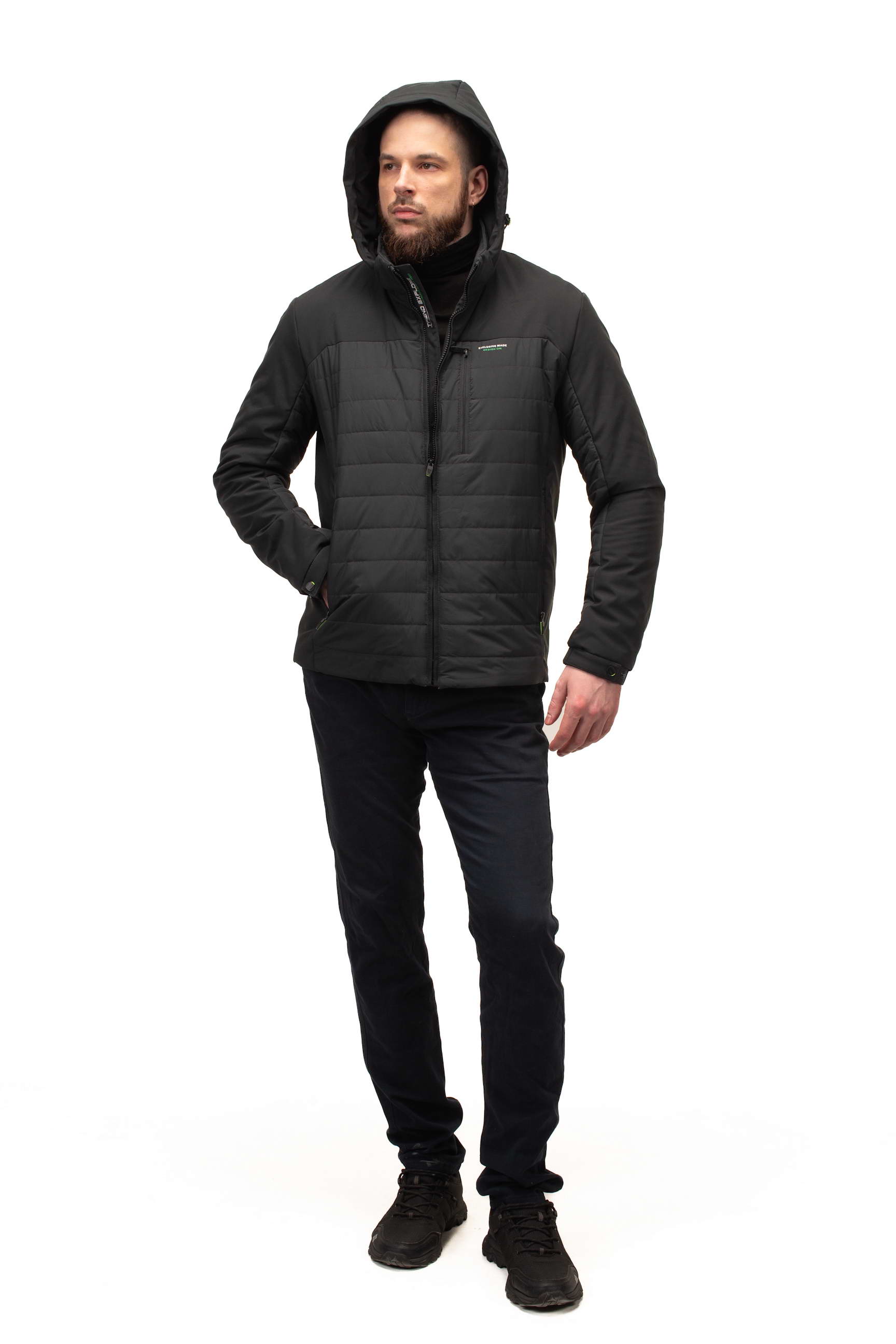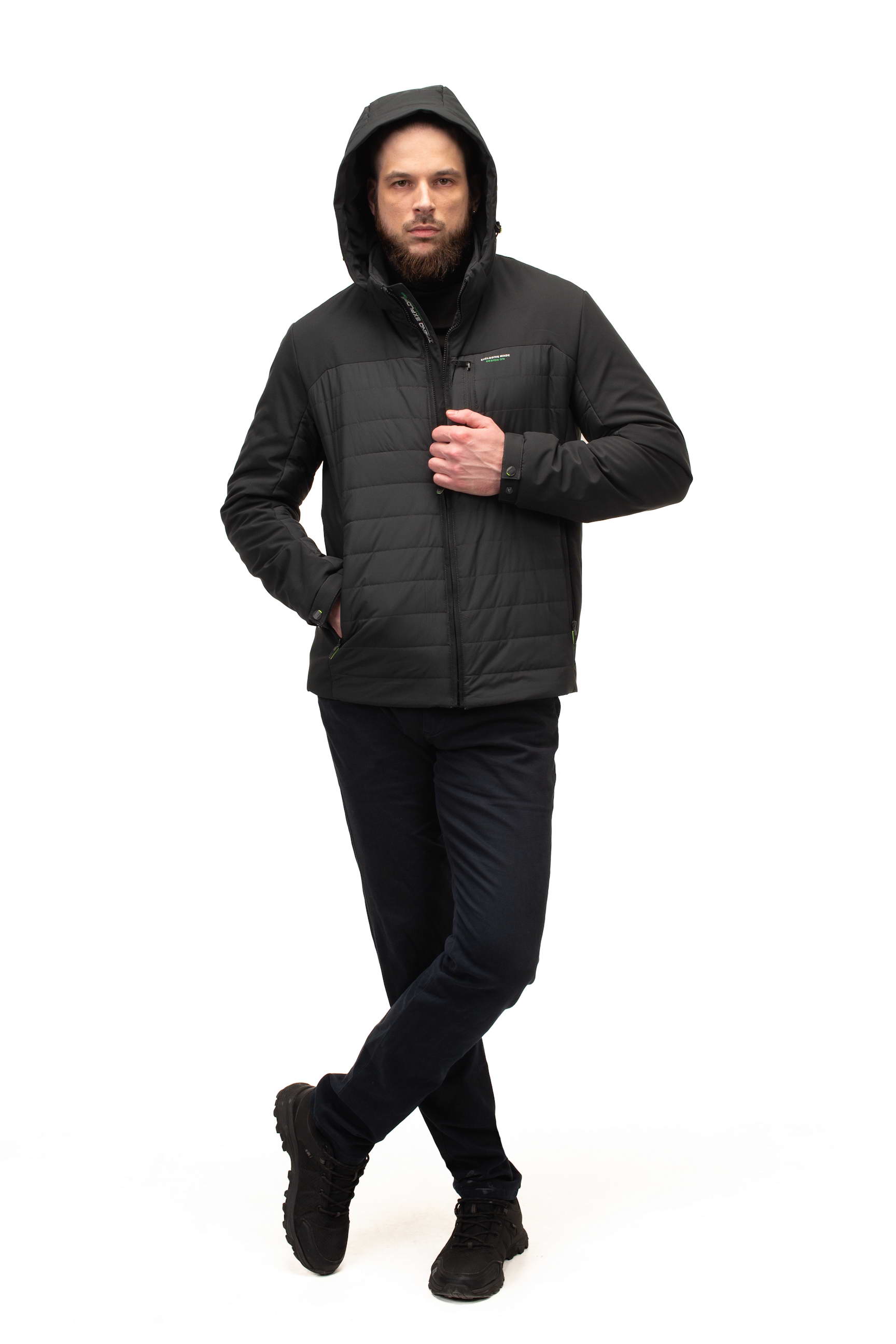 Комір-стійка у поєднанні зі знімним капюшоном дозволяє адаптувати куртку до різних погодних умов, забезпечуючи захист від вітру та дощу. Це робить модель особливо зручною для активного міського життя та подорожей.