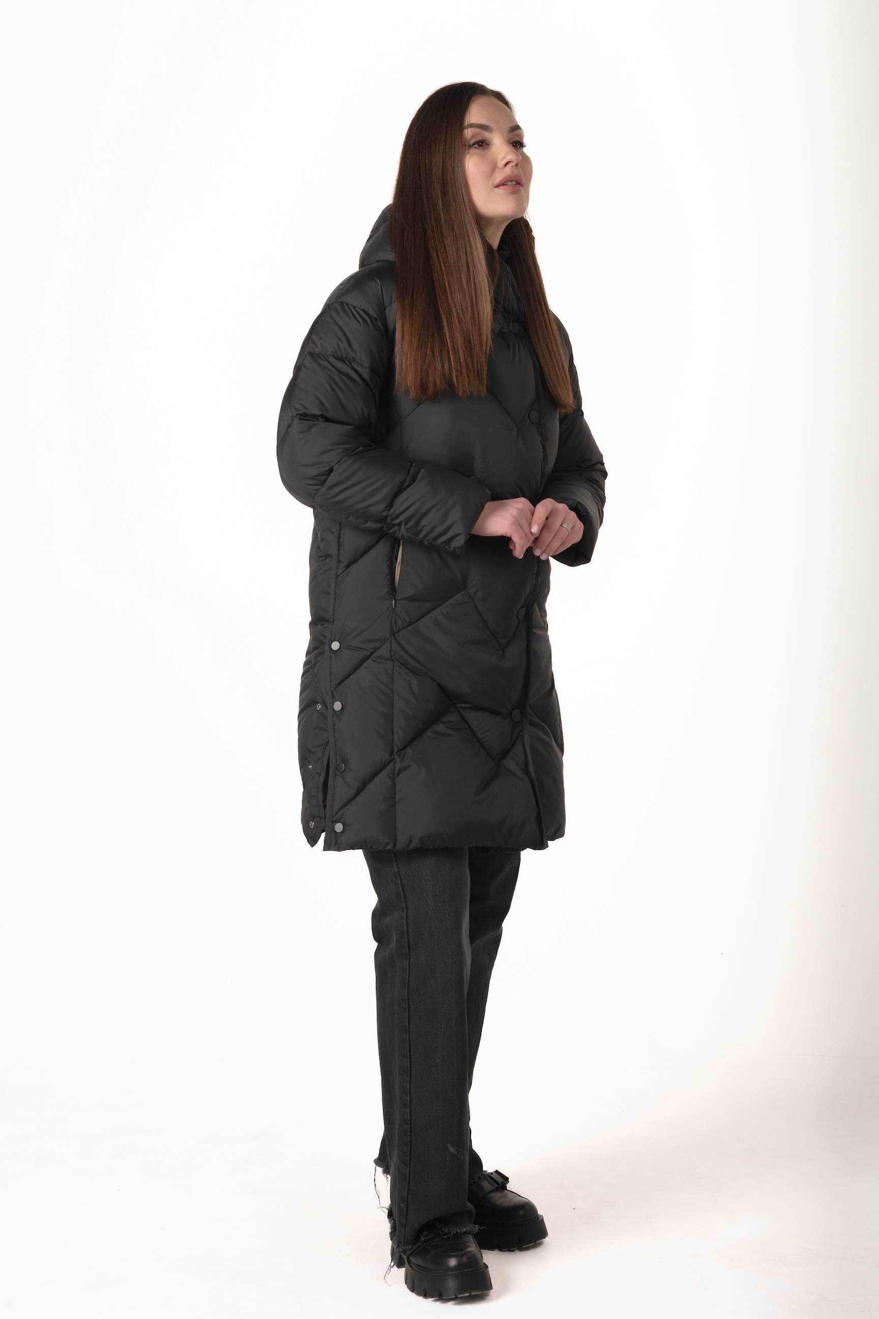 Подовжена довжина 115 см гарантує максимальний захист від холоду в зоні стегон і ніг, роблячи пуховик ідеальним варіантом для справжньої зими.