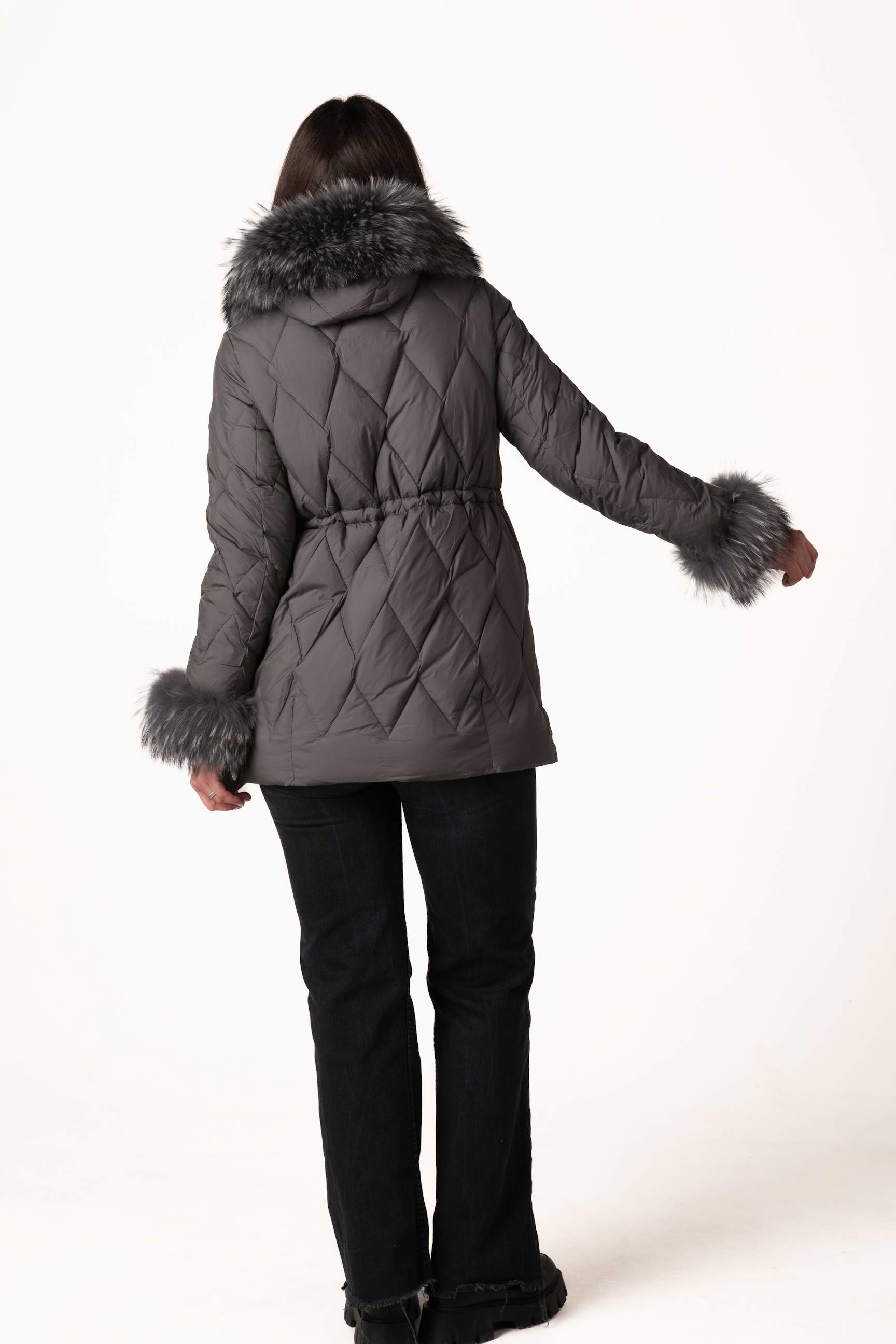 Манжети декоровані хутром єнота, яке можна відстібати — для додаткової практичності та стильного вигляду.