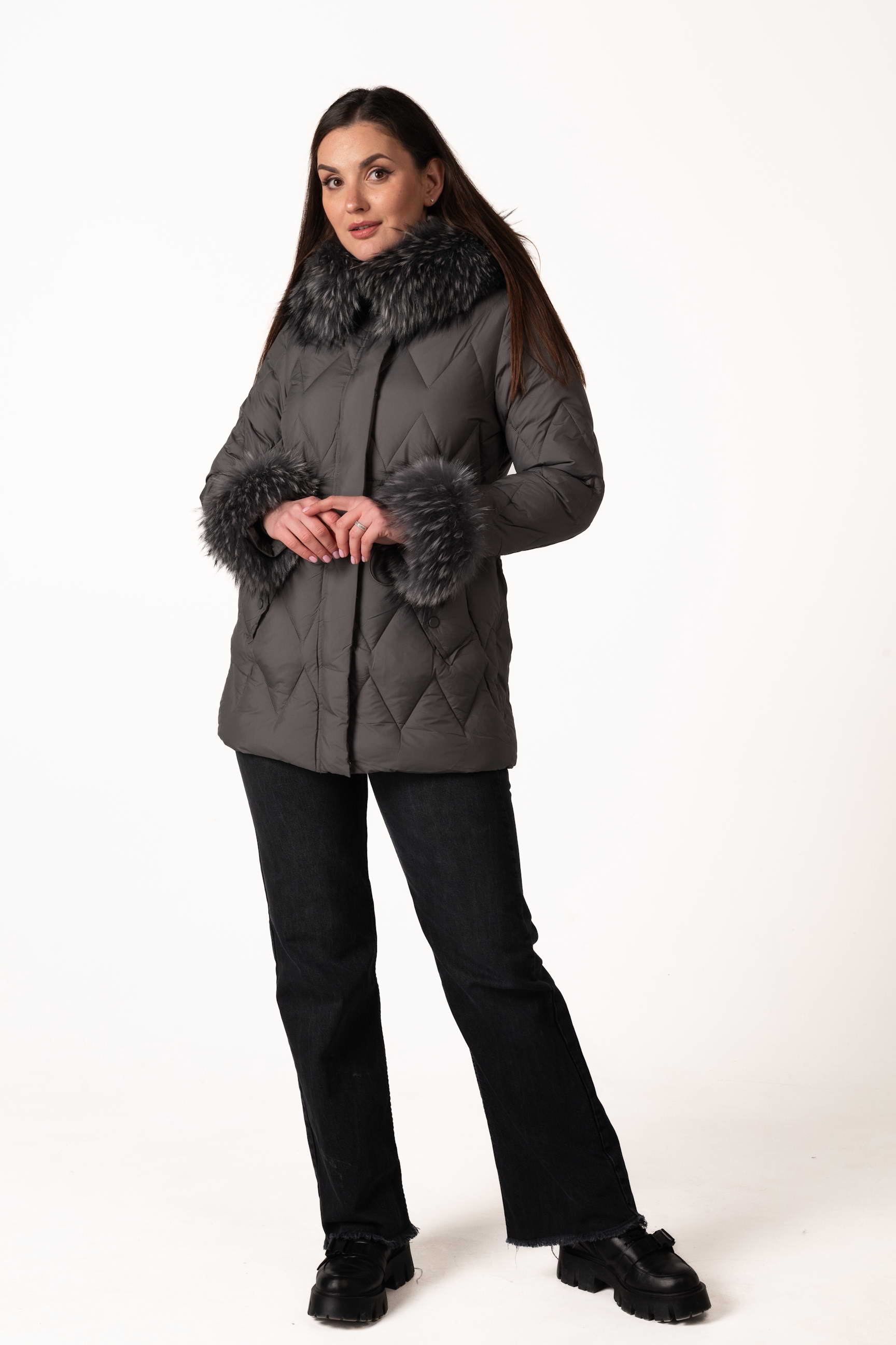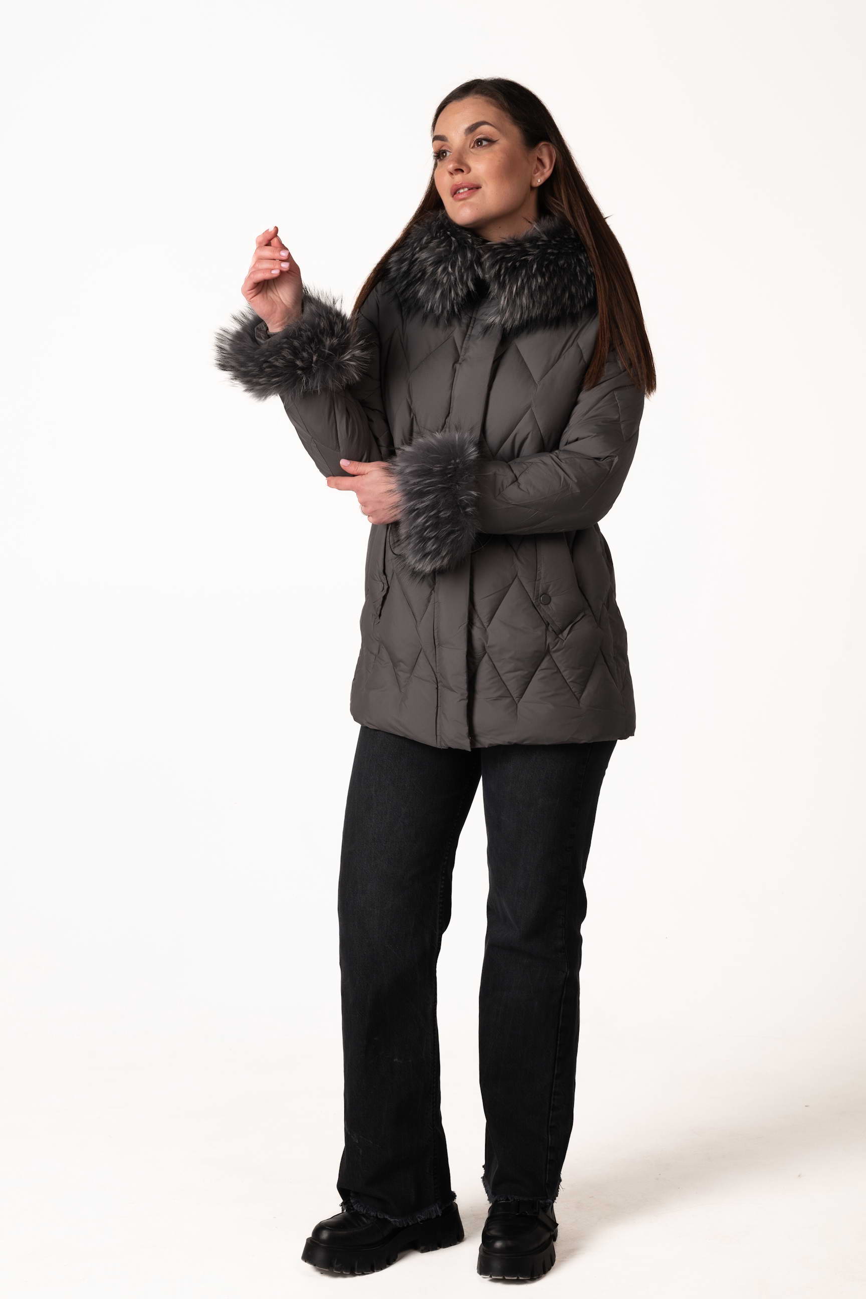 Глибокий графітовий відтінок виглядає стримано та елегантно, легко поєднується з будь-яким зимовим гардеробом.