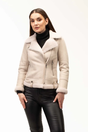 Жіноча біла дублянка з комірцем з овчини