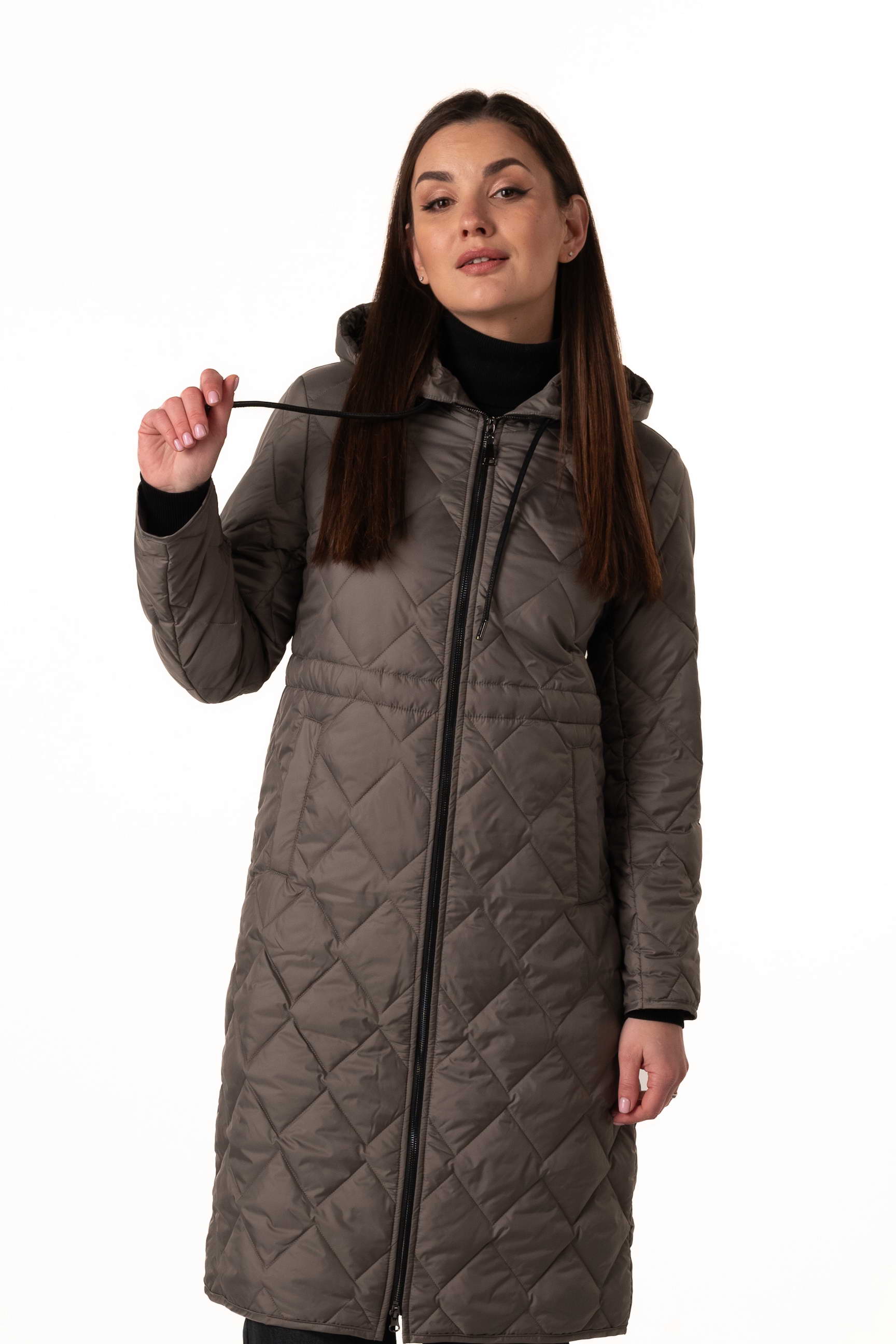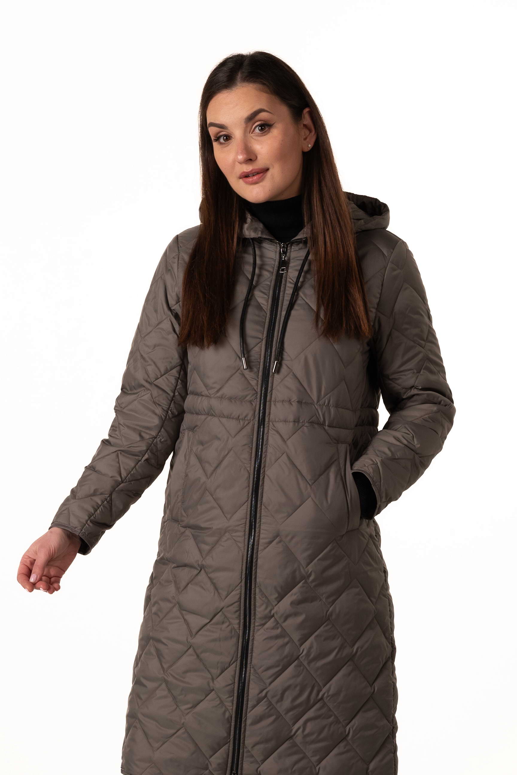 Стильний оливковий жіночий демісезонний біопуховик — оптимальний варіант для прохолодної весни та осені. Модель оснащена високим коміром-стійкою з капюшоном, куліскою по талії та ромбовидною прострочкою, що підкреслює сучасний силует і додає елегантності образу. Якщо ви шукаєте, де купити жіночу демісезонну куртку, ця модель стане практичним та стильним рішенням для щоденного носіння.