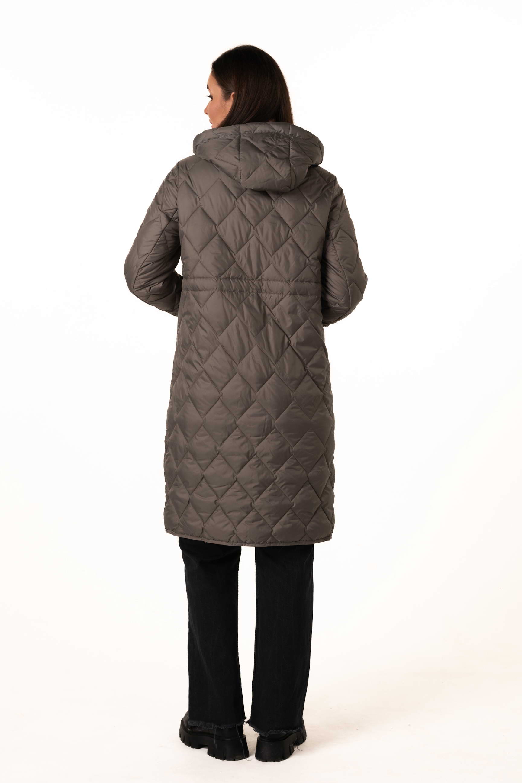 Ромбовидна прострочка рівномірно розподіляє наповнювач, додає акуратності та сучасного вигляду демісезонній куртці.