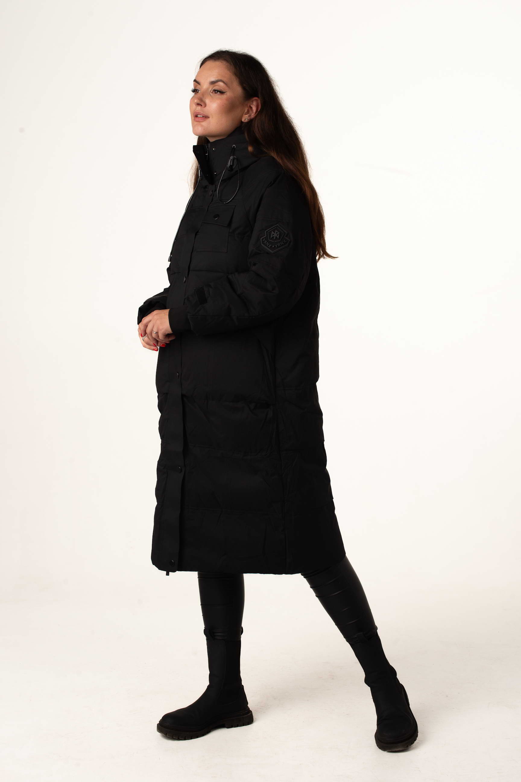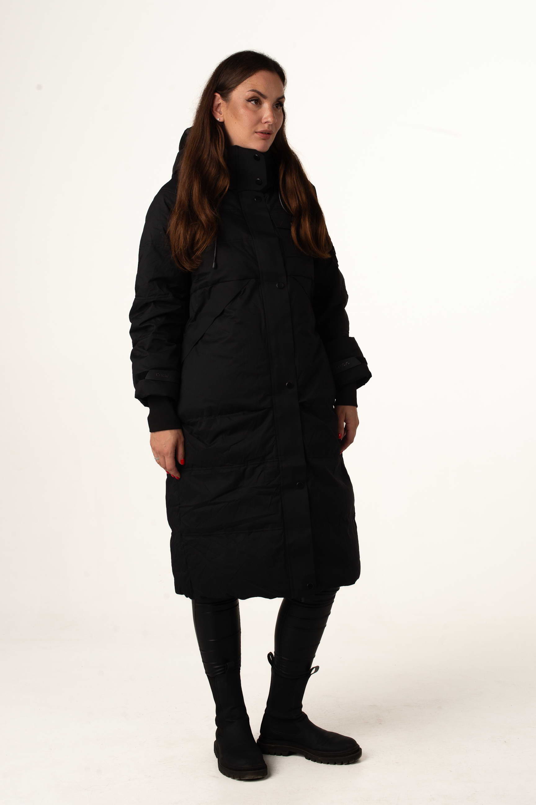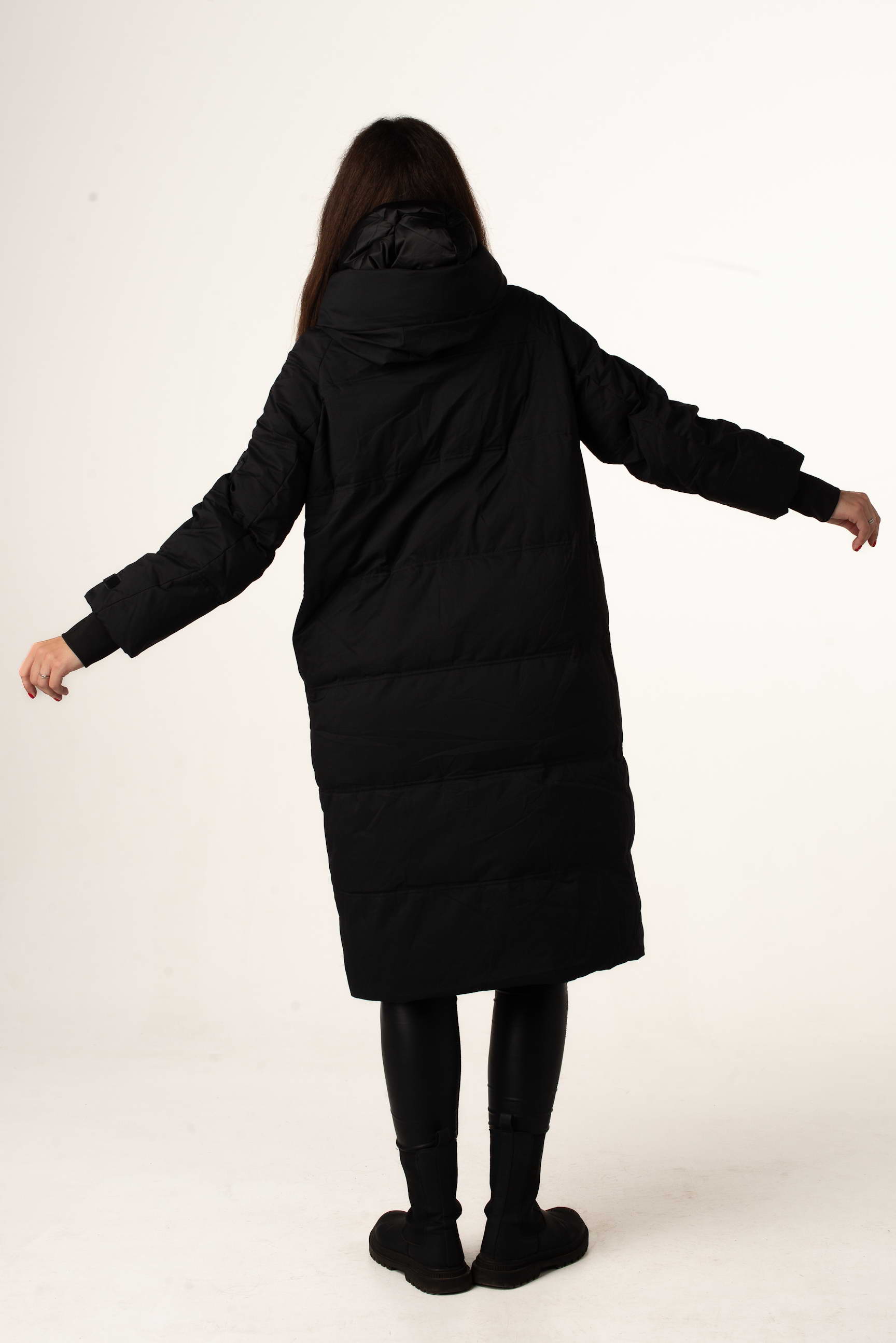 Чорний пуховик довжини 110 см – ідеальний варіант для тих, хто цінує тепло, комфорт і стиль. Модель легко поєднується з будь-яким зимовим гардеробом і підходить для активного способу життя.
