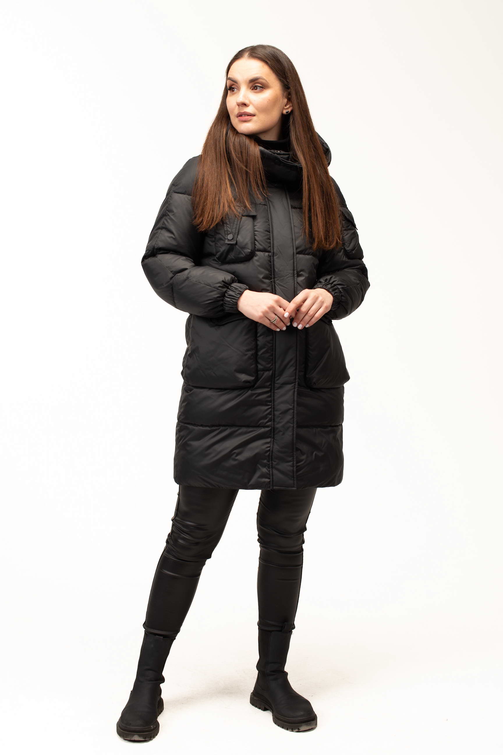 Эта женская зимняя куртка создана для комфортной носки в холодный сезон, сочетая в себе практичность, надежную защиту от мороза и стильный внешний вид. Выполненная из качественной плащевой ткани, она хорошо противостоит ветру и влаге, оставаясь удобной и легкой в повседневном использовании. Классический черный цвет делает модель универсальной и позволяет легко сочетать ее с различными элементами гардероба.