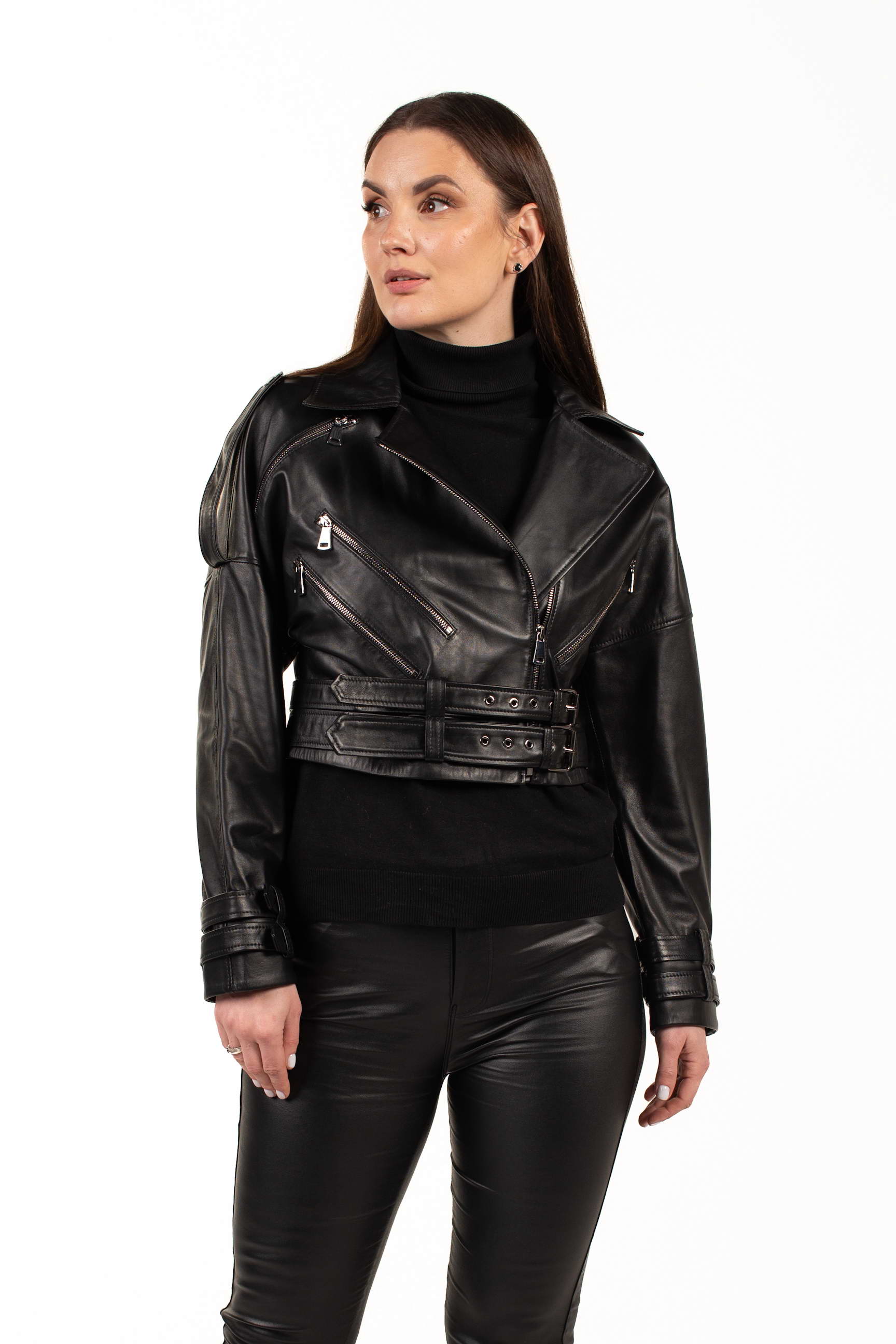 Купить женскую кожаную куртку в черном цвете — значит выбрать стиль, который сочетает элегантность, современность и характер каждый день.