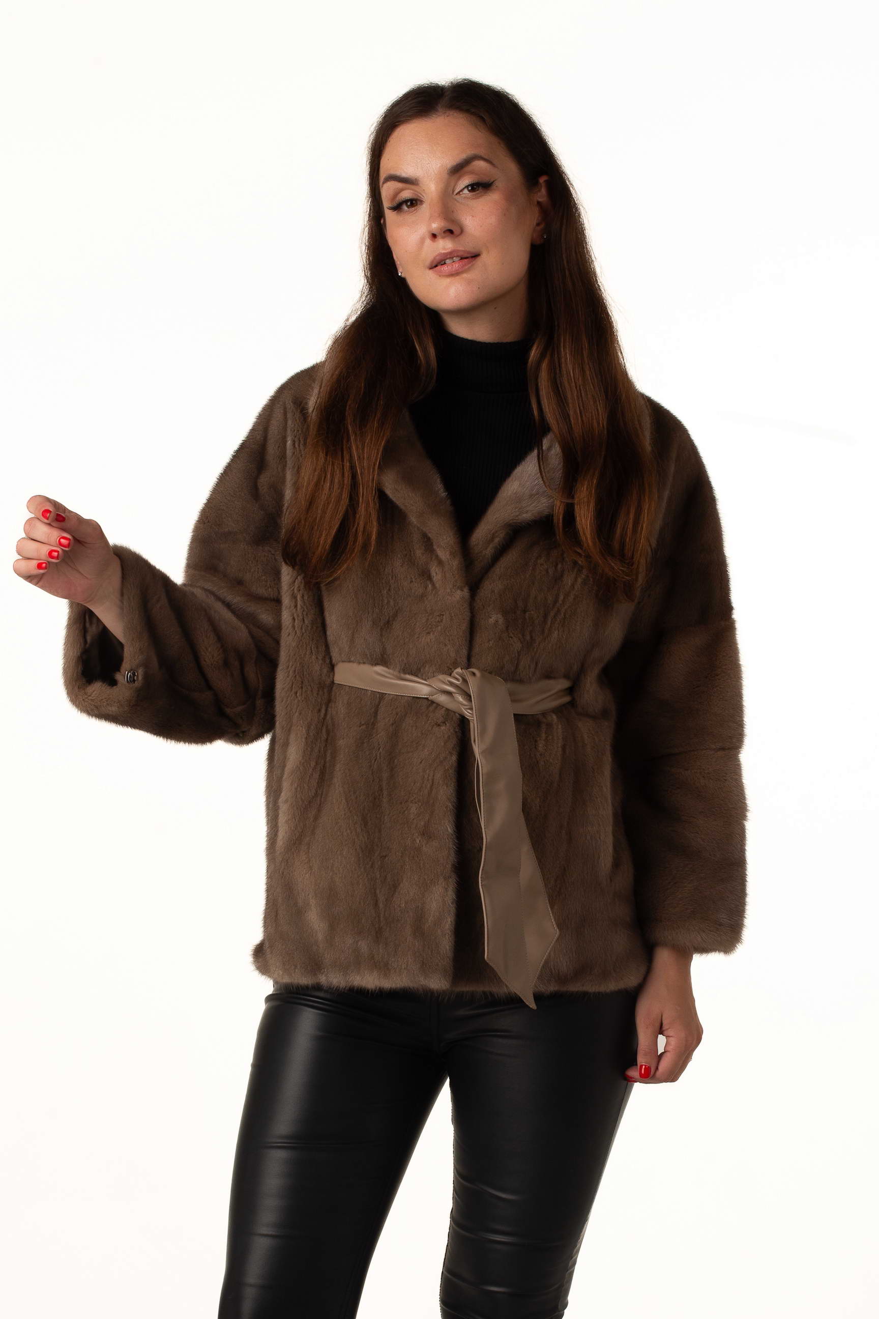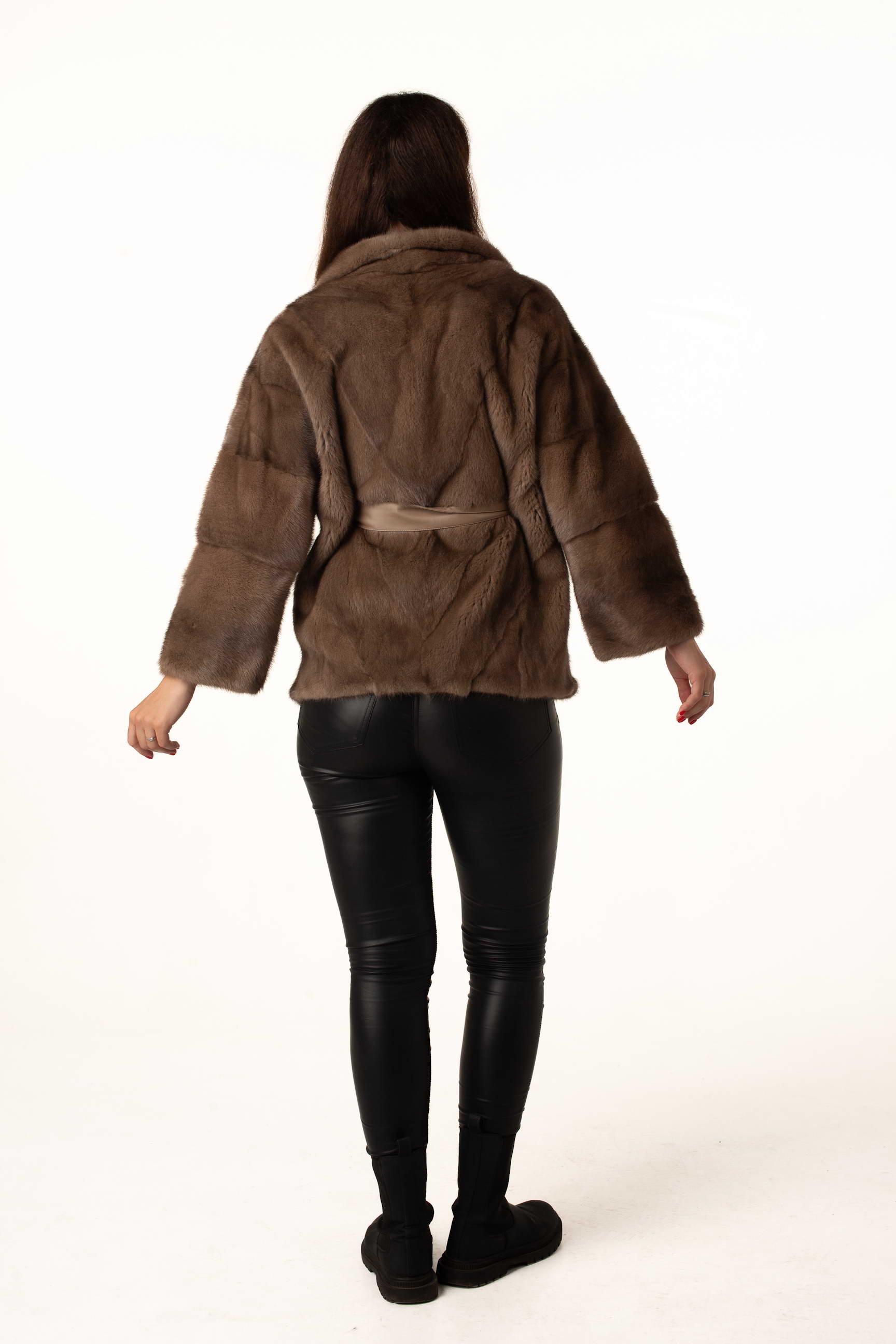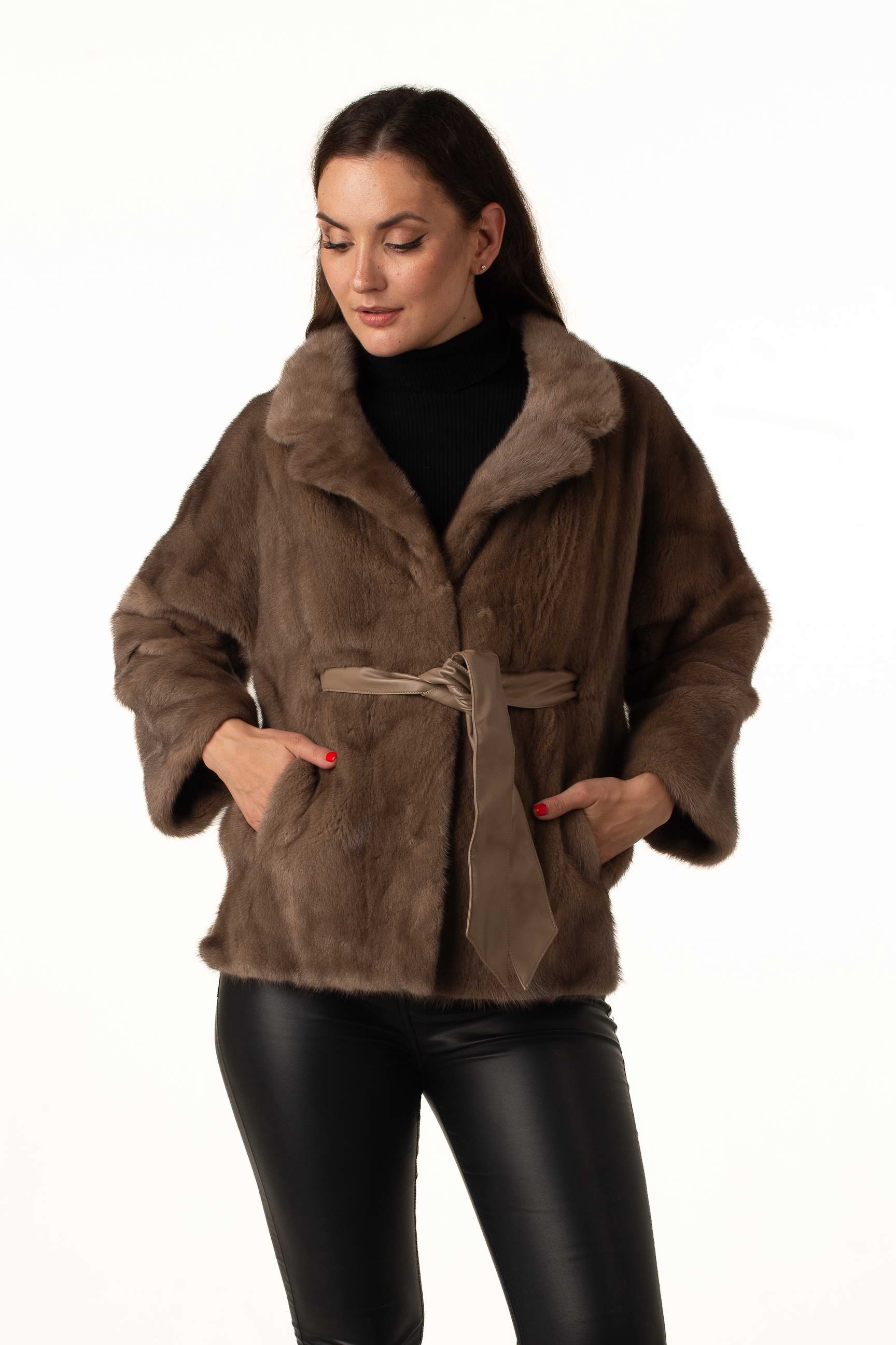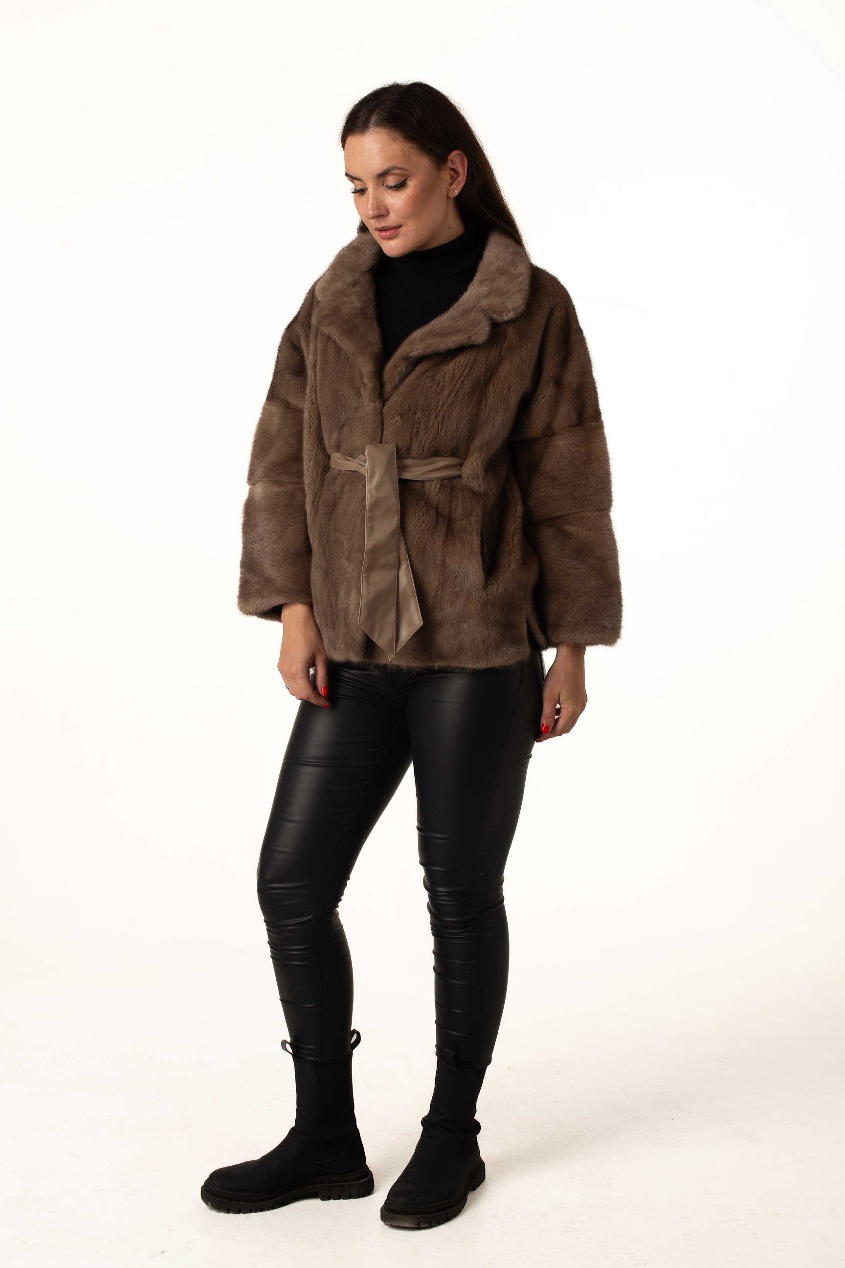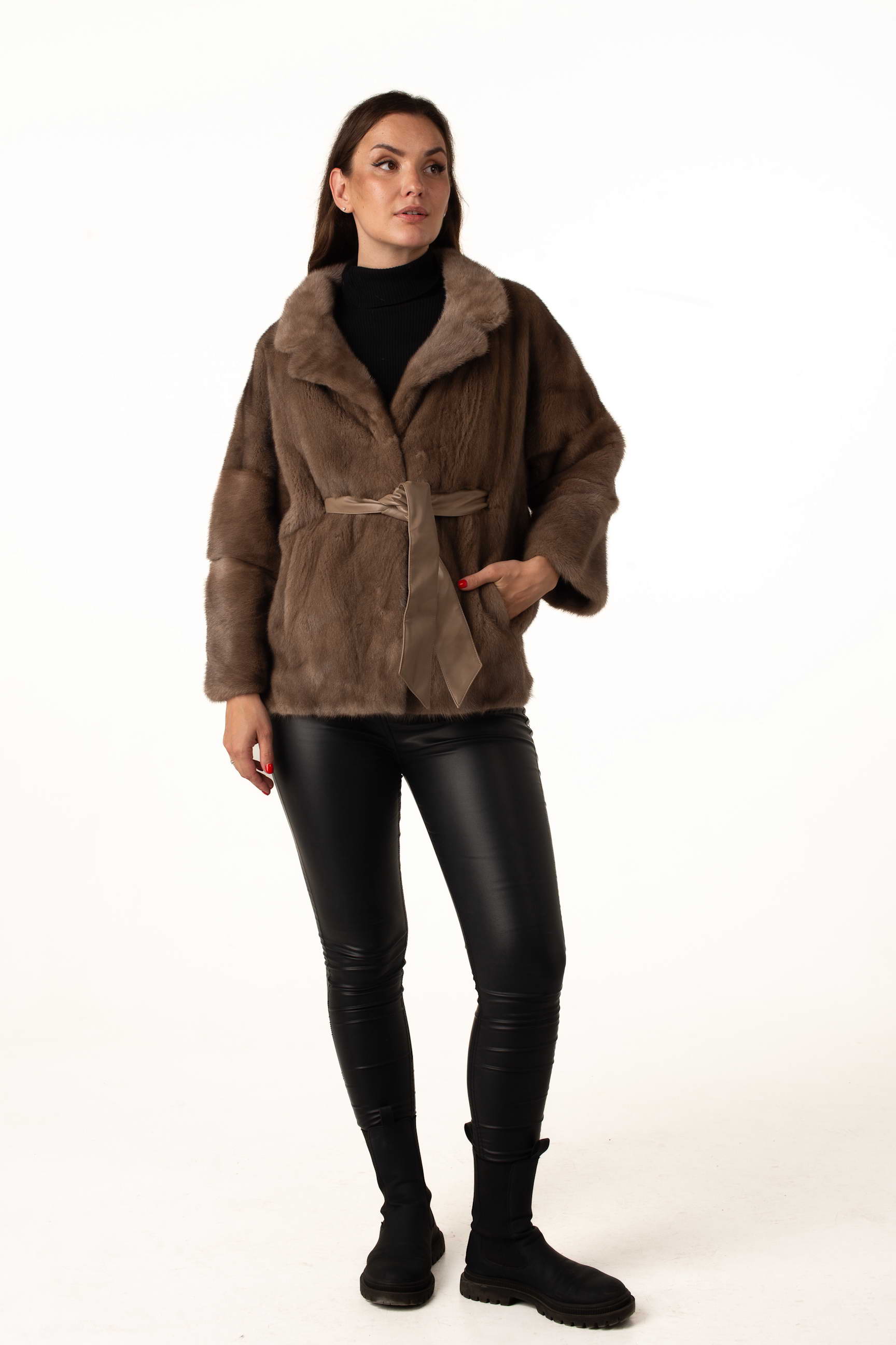 Женская шуба из натурального меха норки в оттенке пастель — это воплощение нежности, роскоши и современного стиля. Лаконичный английский воротник придаёт образу утончённости, а пояс из экокожи подчёркивает талию, создавая женственный силуэт.