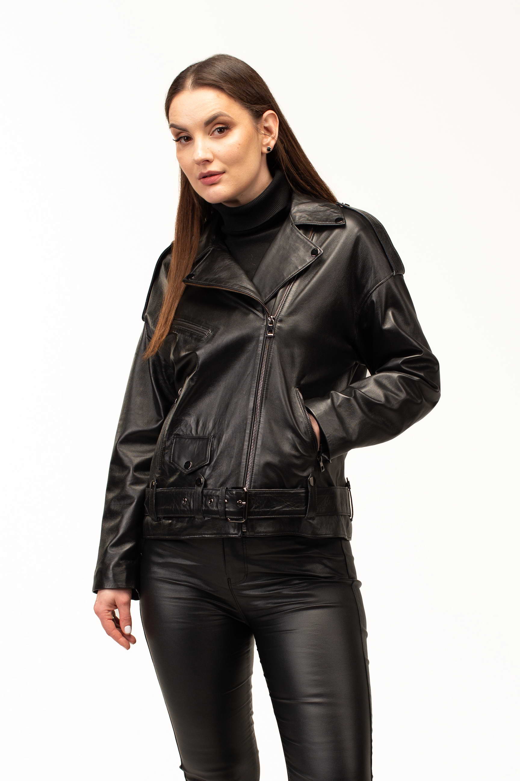 Женская кожаная куртка из натуральной телячьей кожи — это сочетание элегантности, стиля и практичности, созданное для сезона весна и осень. Высококачественная черная кожа делает эту модель универсальной, легко сочетаемой с любым гардеробом и придает образу сдержанную роскошь и современный шарм.