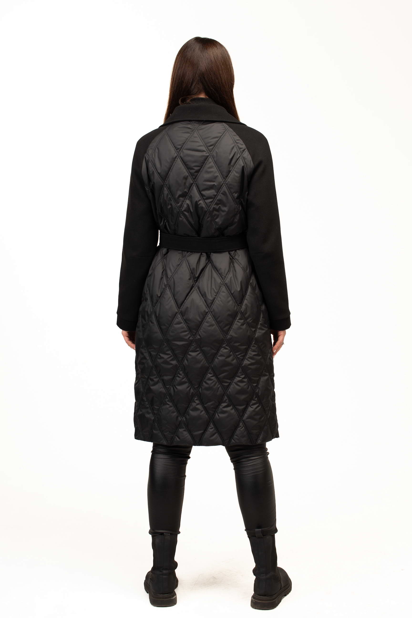 Пояс является важной деталью этой модели, так как он позволяет подчеркнуть талию и сформировать более женственный и утонченный силуэт. Благодаря этому пуховик выглядит не громоздко, а наоборот — элегантно и гармонично. Длина 105 см обеспечивает дополнительный комфорт в прохладную погоду, хорошо защищает от ветра и делает модель практичной для ежедневного использования.