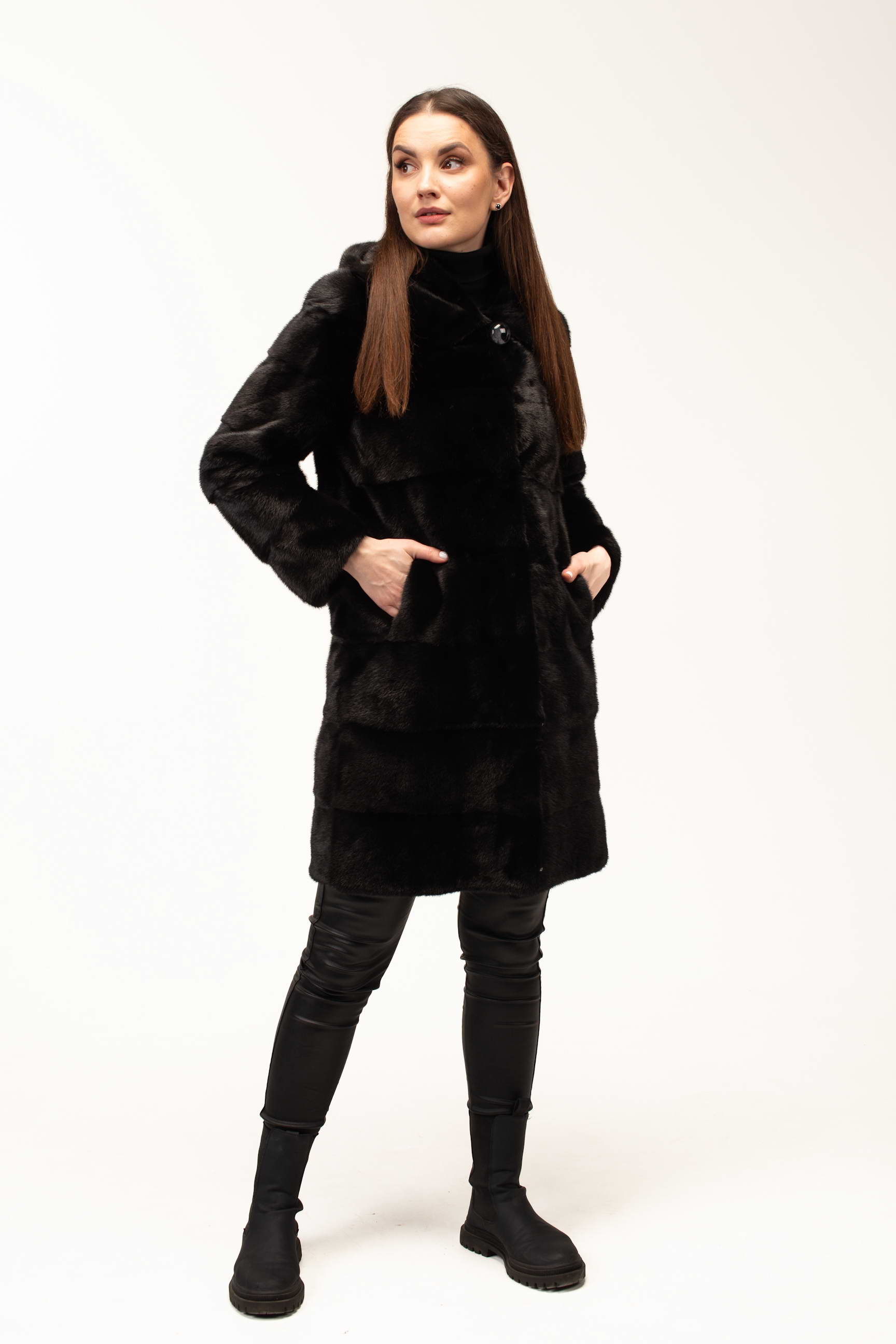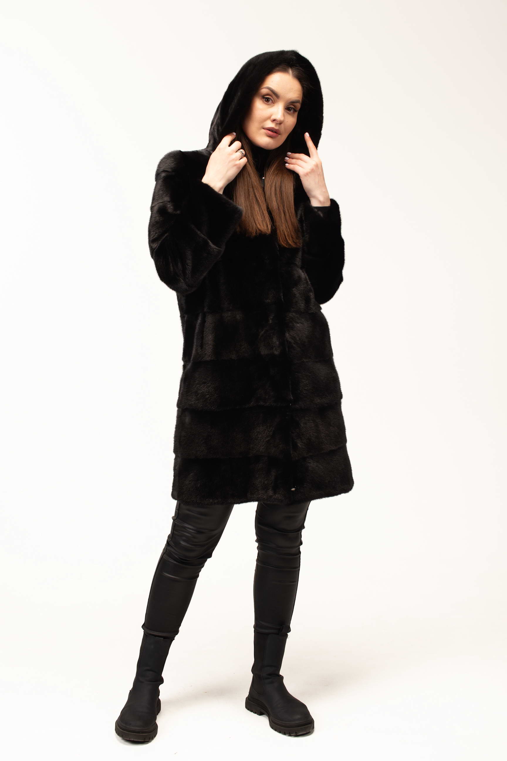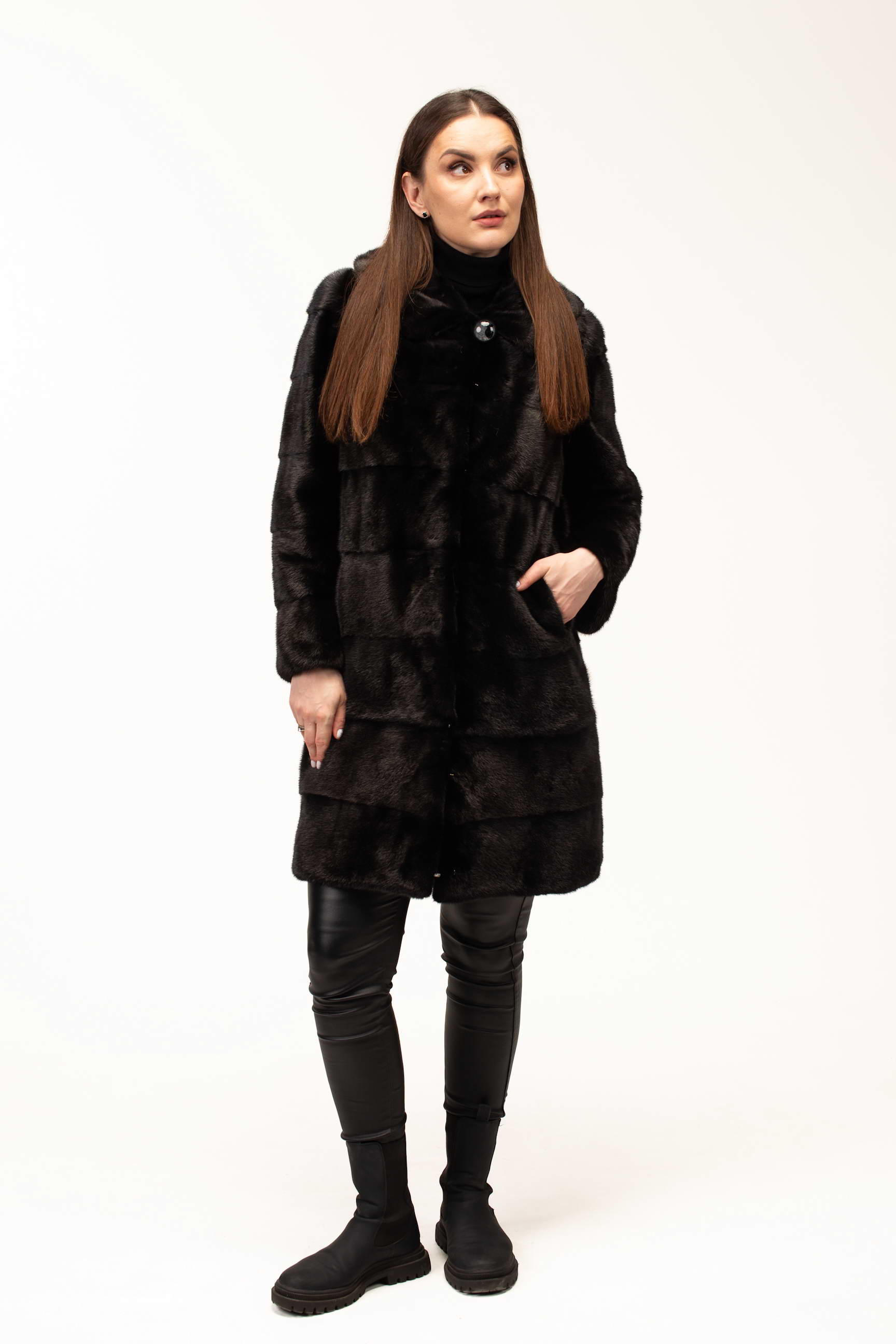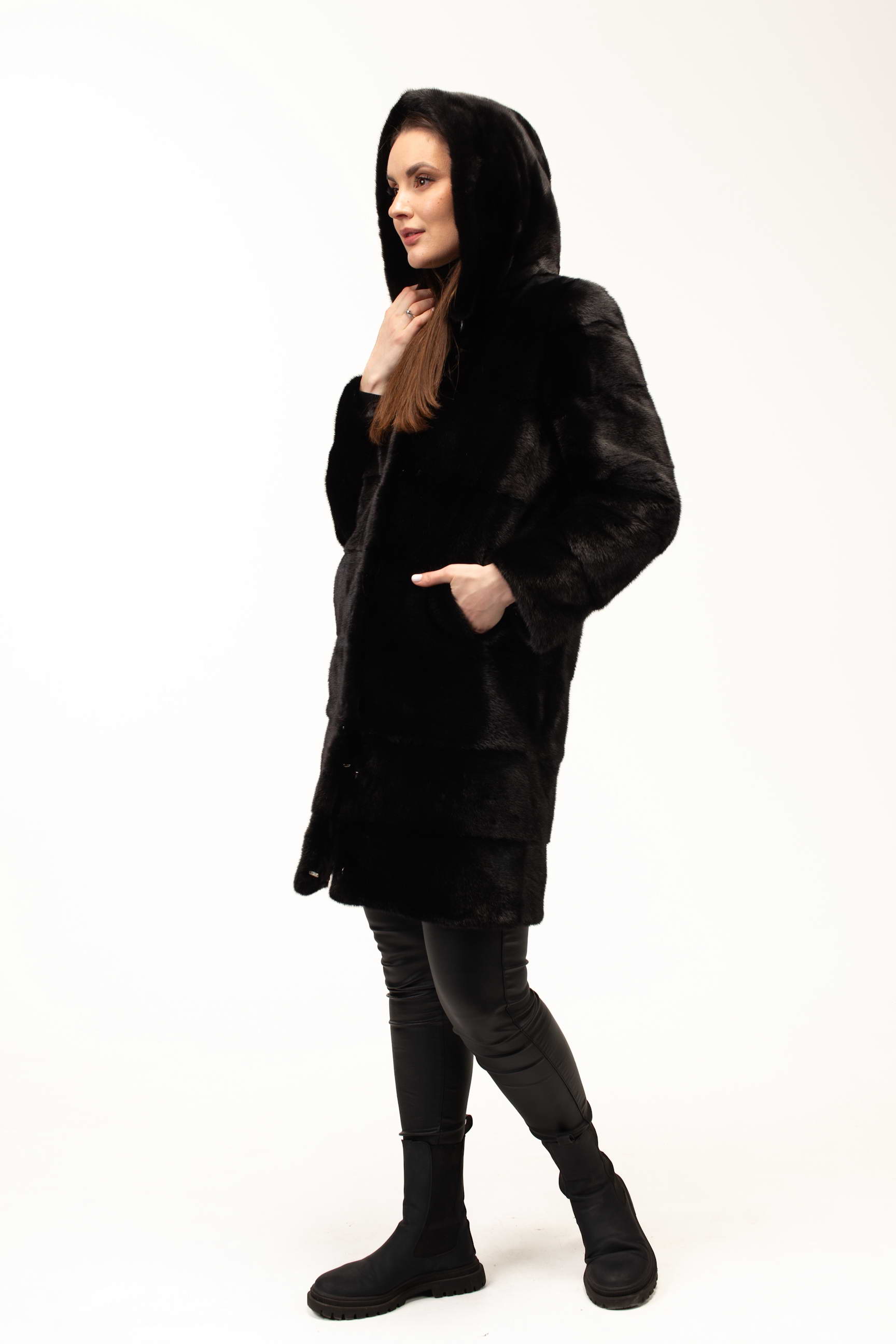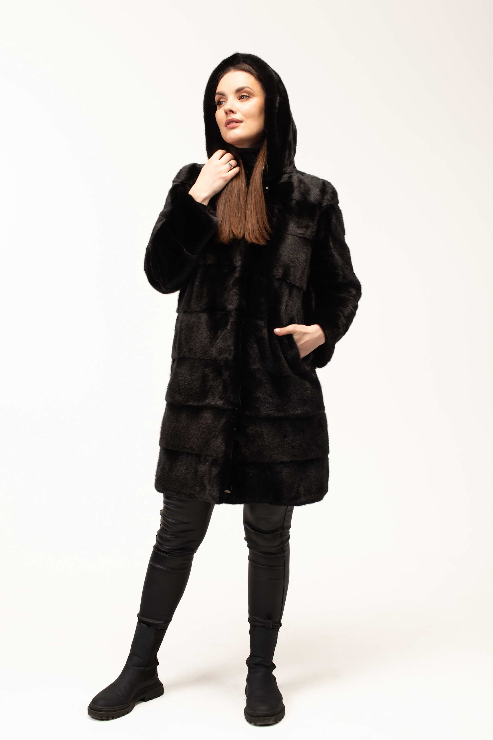 Почувствуйте настоящую роскошь и комфорт вместе с женской шубой из натурального меха норки в классическом чёрном цвете. Это элегантная модель, которая станет вашим любимым выбором для холодной зимы, сочетая в себе премиальное качество, современный дизайн и максимальную функциональность. Она создана для женщин, которые ценят стиль, практичность и безупречный внешний вид в любую погоду.