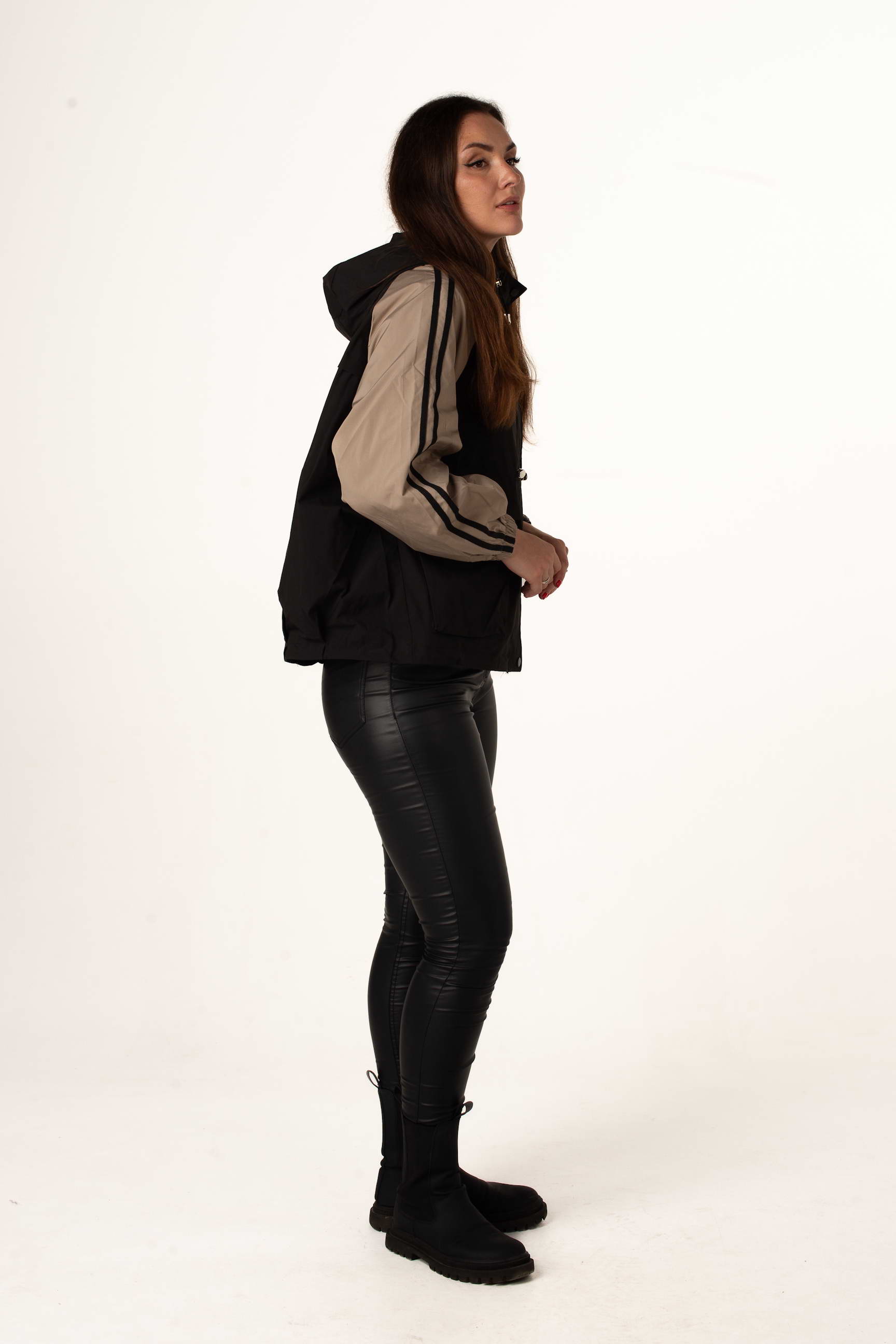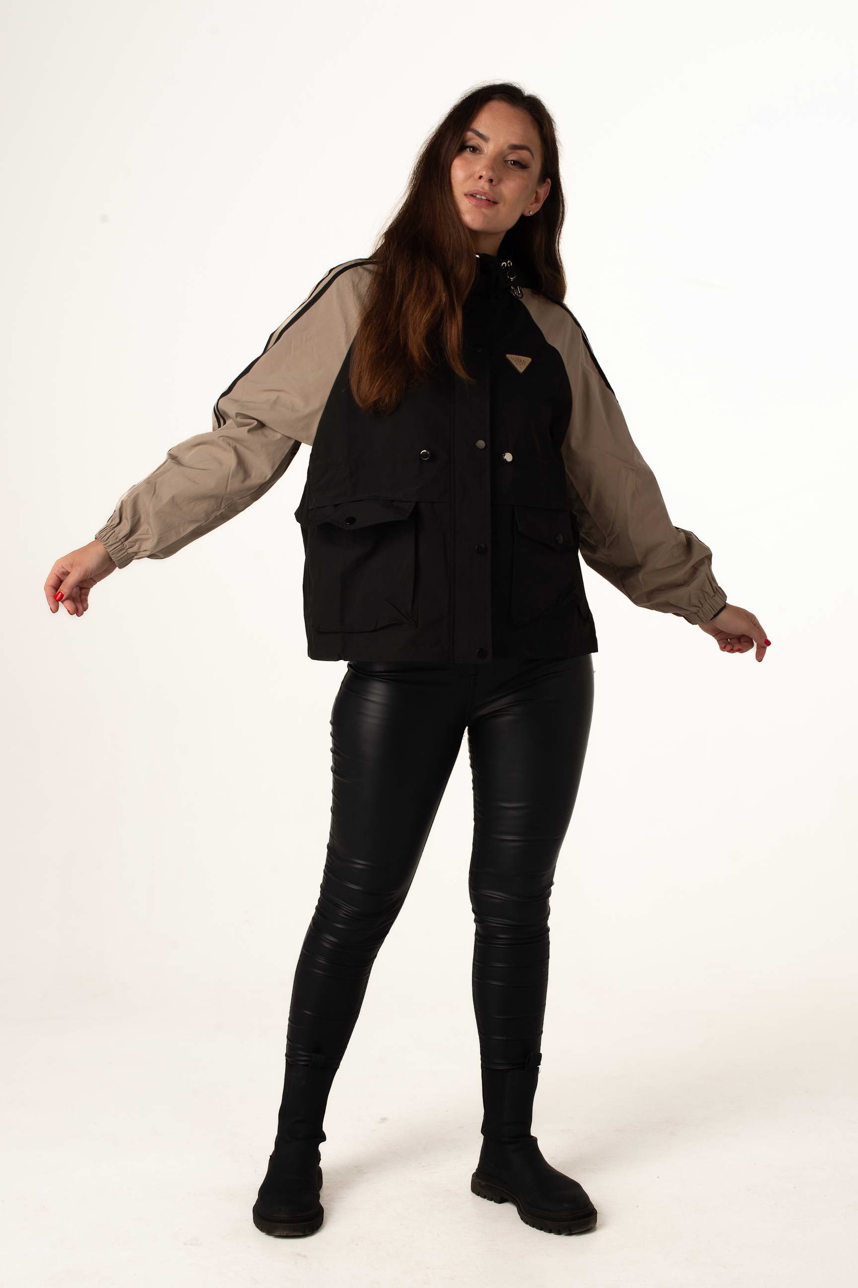 Чорно-бежева вітровка поєднує легкість, стиль і практичність. Вона підходить для міських прогулянок, активного відпочинку та щоденного використання у міжсезоння.