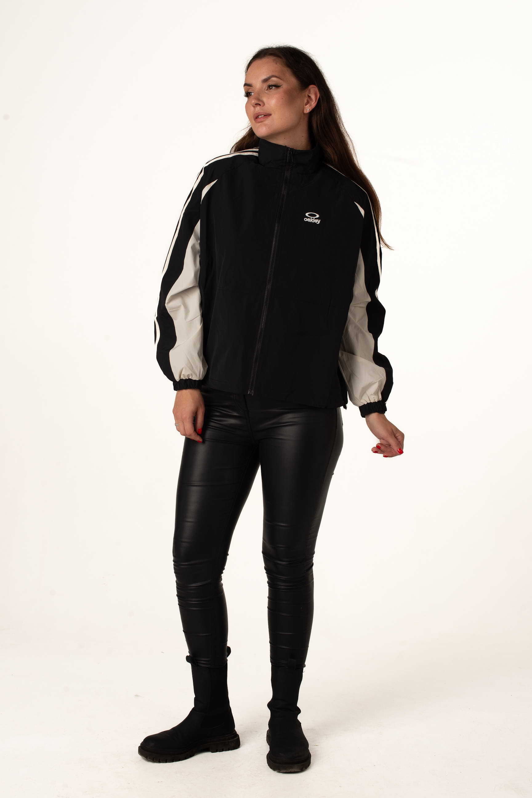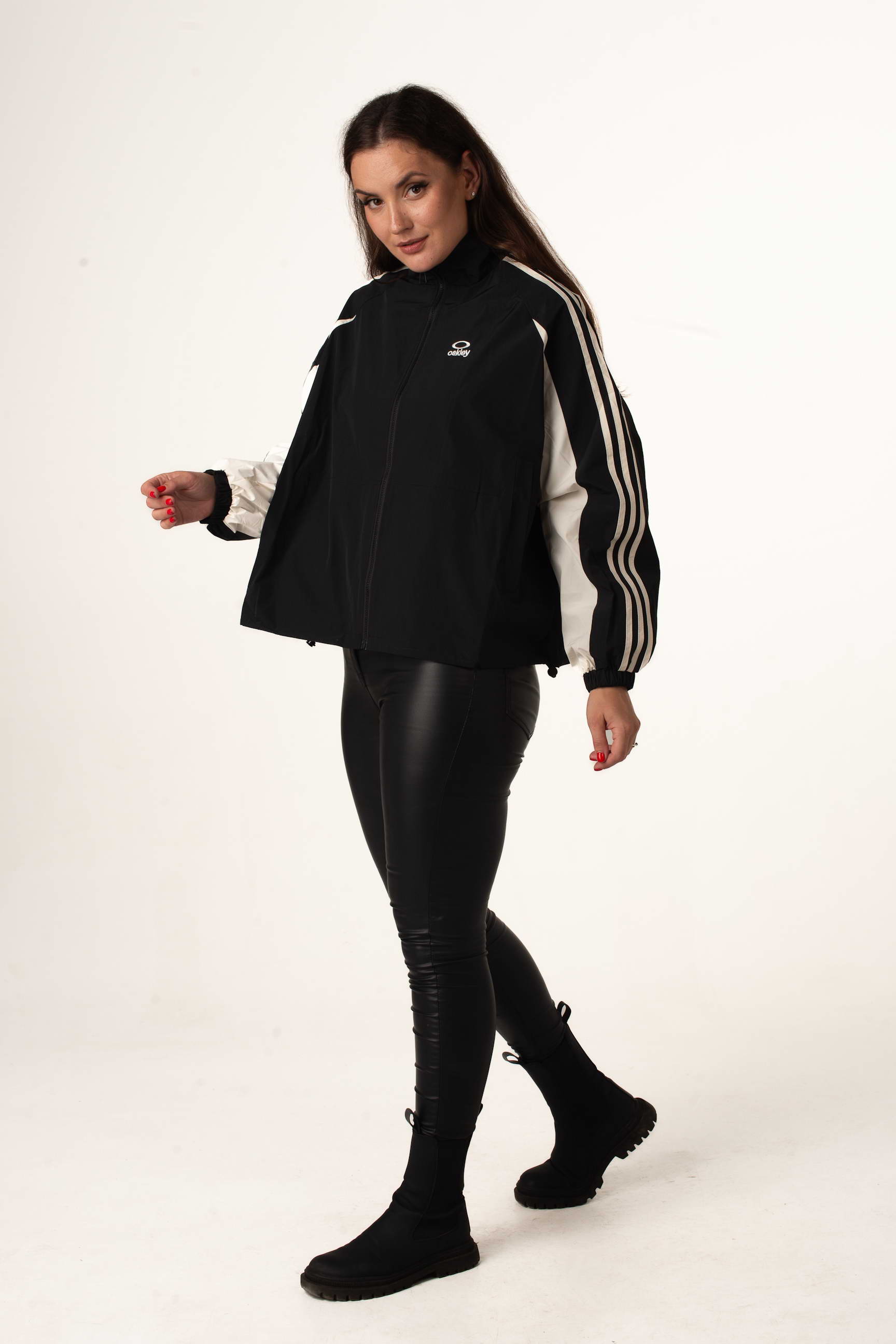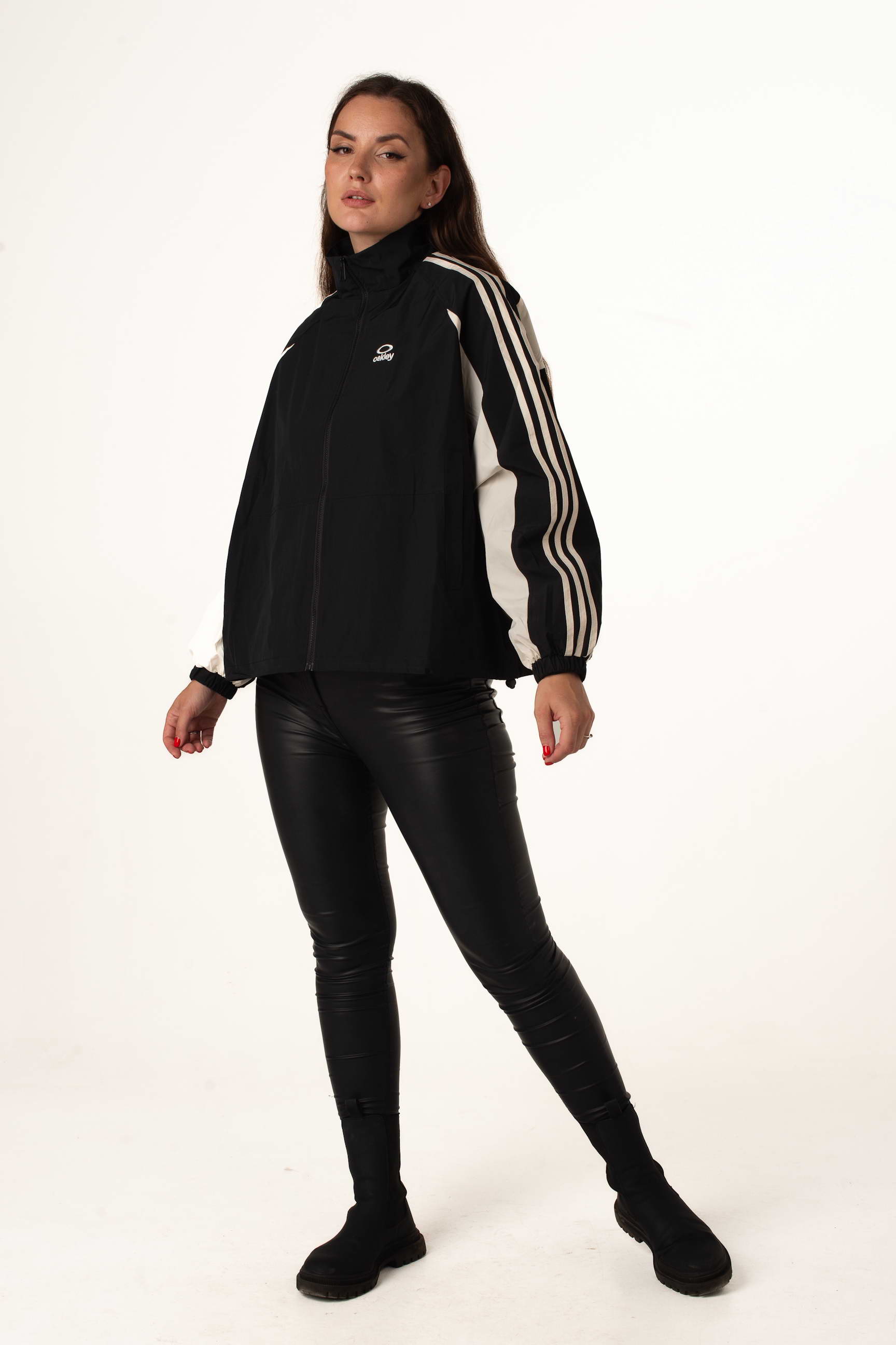 Чорно-біла вітровка поєднує легкість, сучасний стиль і практичність, підходить для міських прогулянок, активного відпочинку та щоденного використання у міжсезоння.
