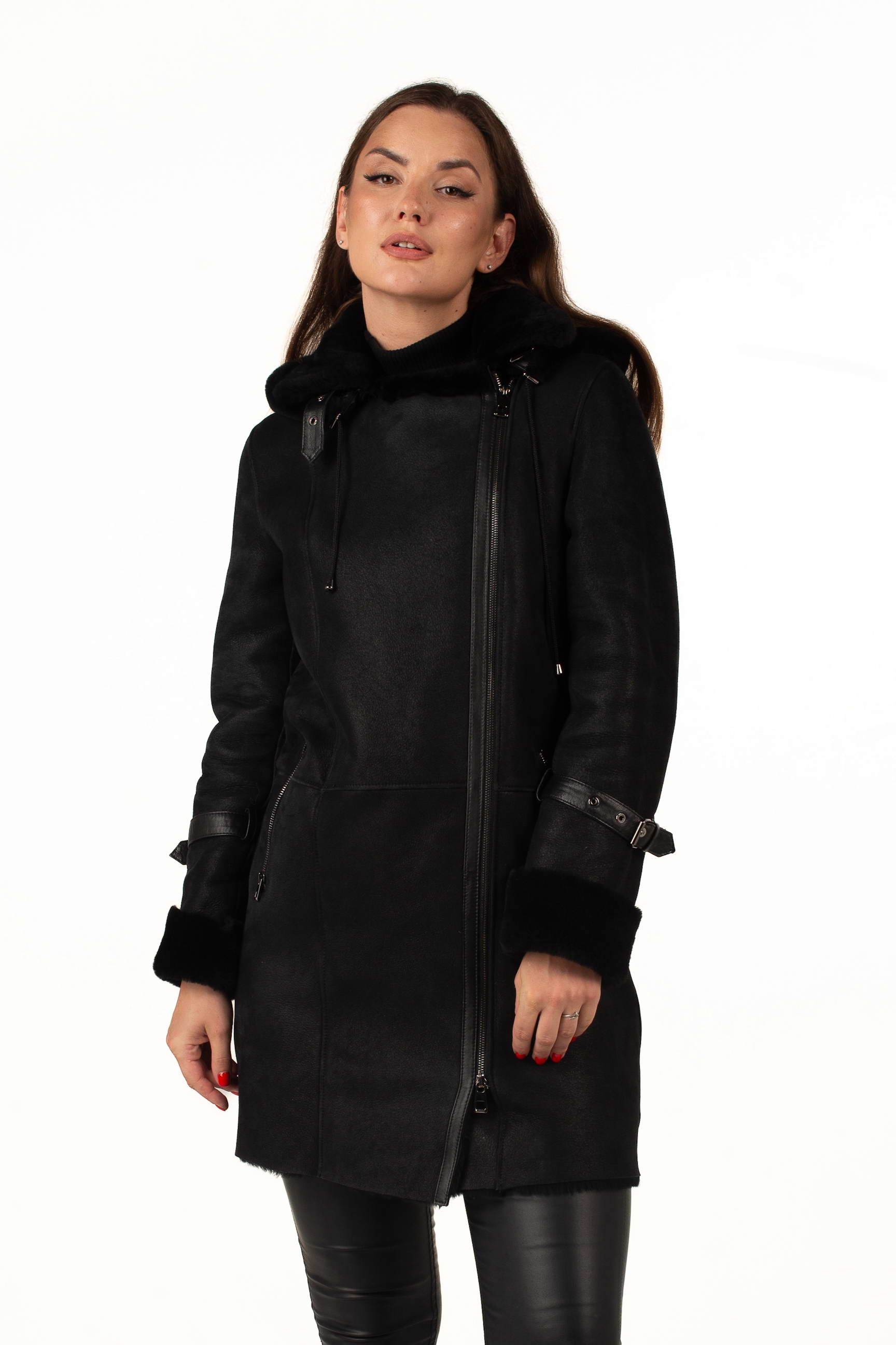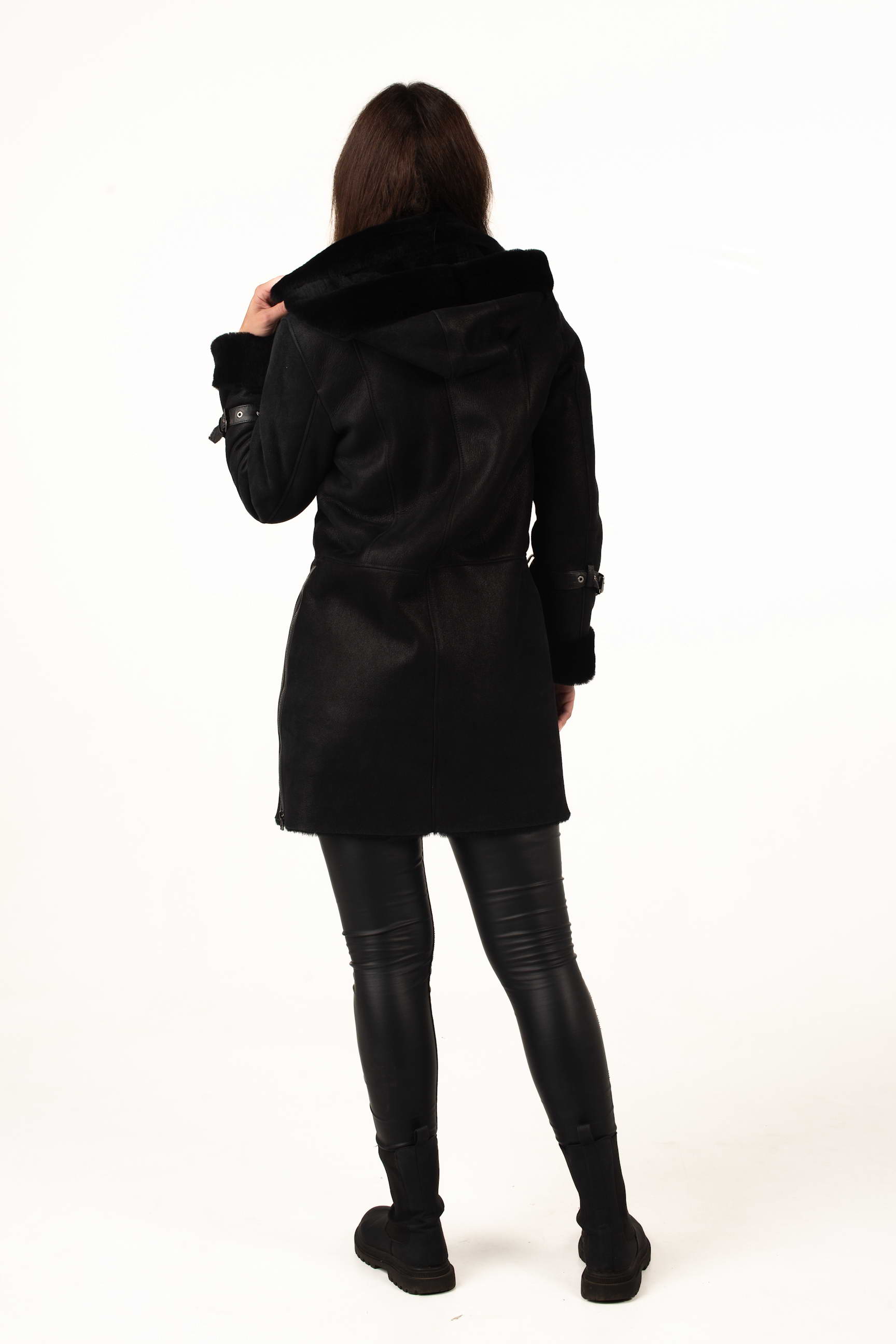 Чёрная женская натуральная дублёнка из овчины – сочетание тепла, комфорта и элегантного дизайна. Съёмный капюшон и продуманные детали делают эту модель идеальной для холодного времени года.