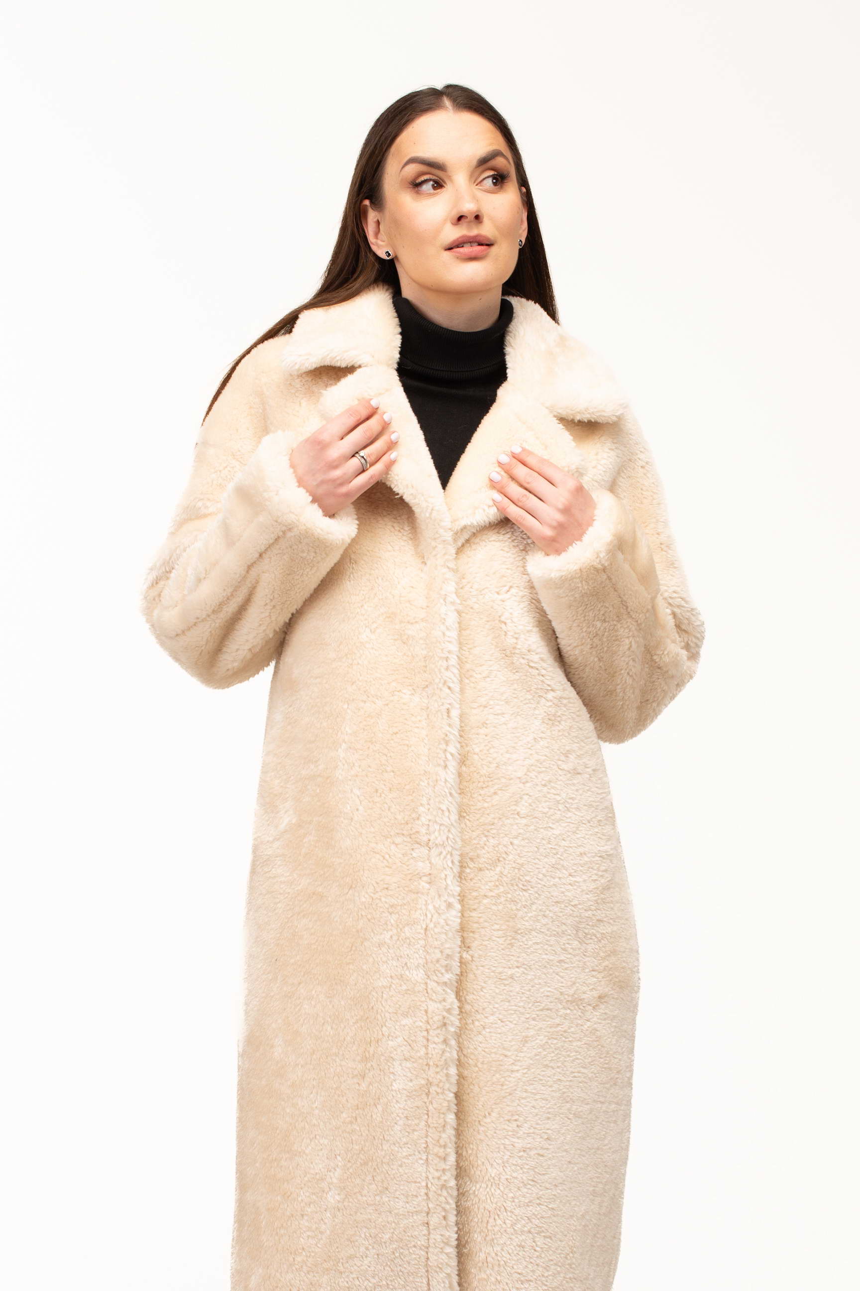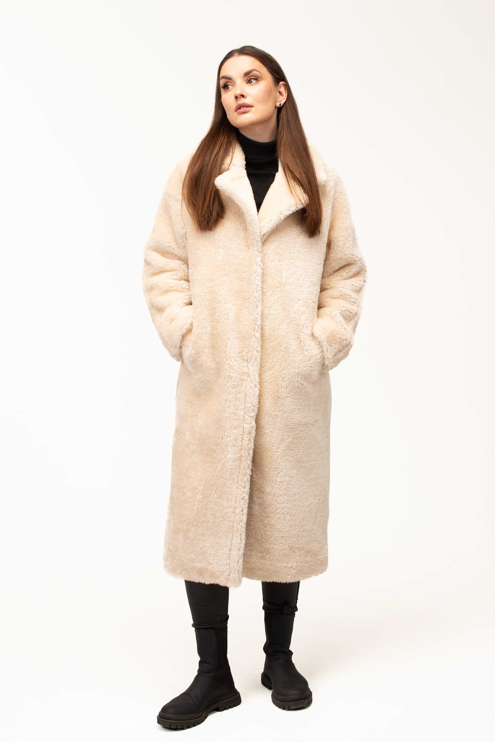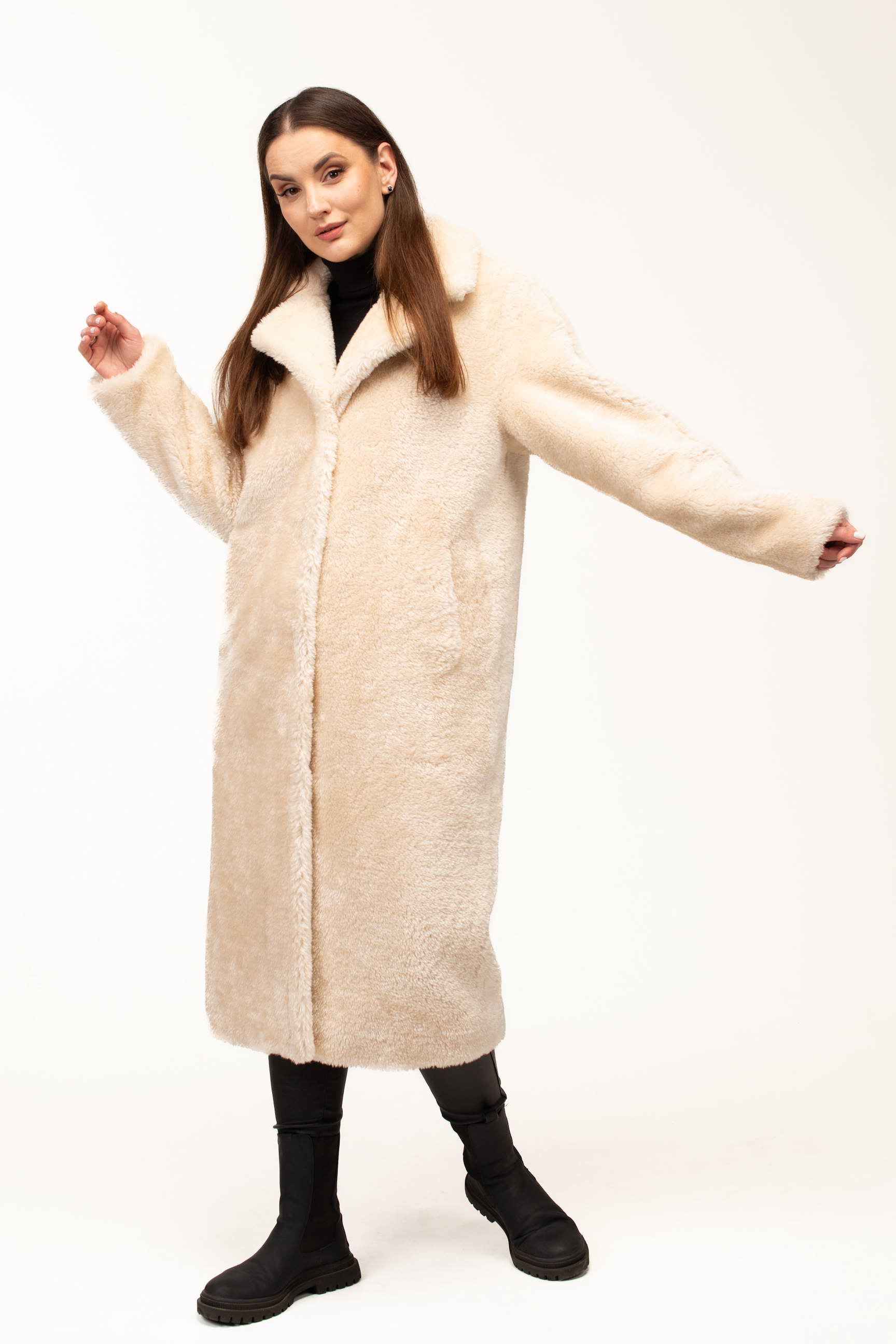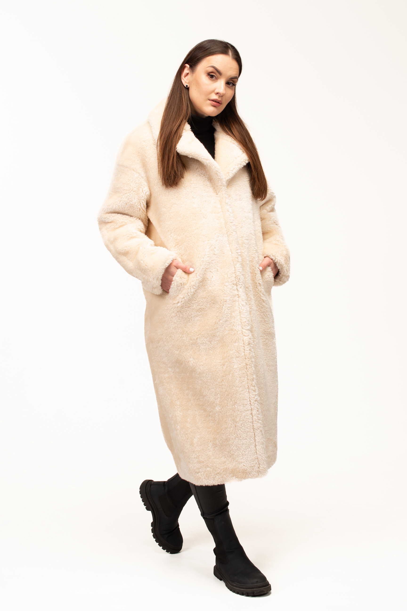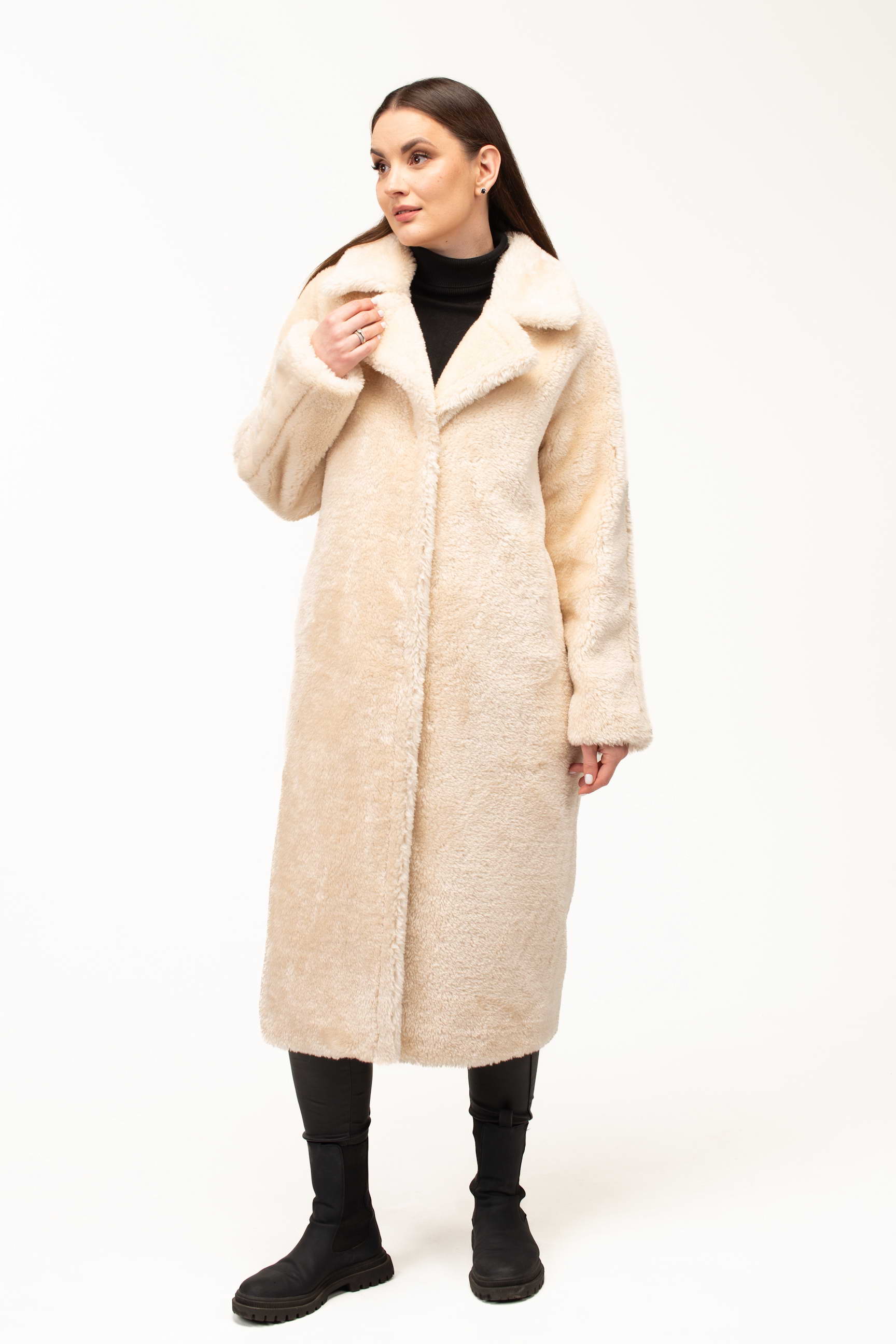 Длина 123 см создаёт утончённый и завершённый силуэт, обеспечивая дополнительную защиту от холода. Такая длина выгодно смотрится на разных типах фигуры и придаёт образу статусность и завершённость.