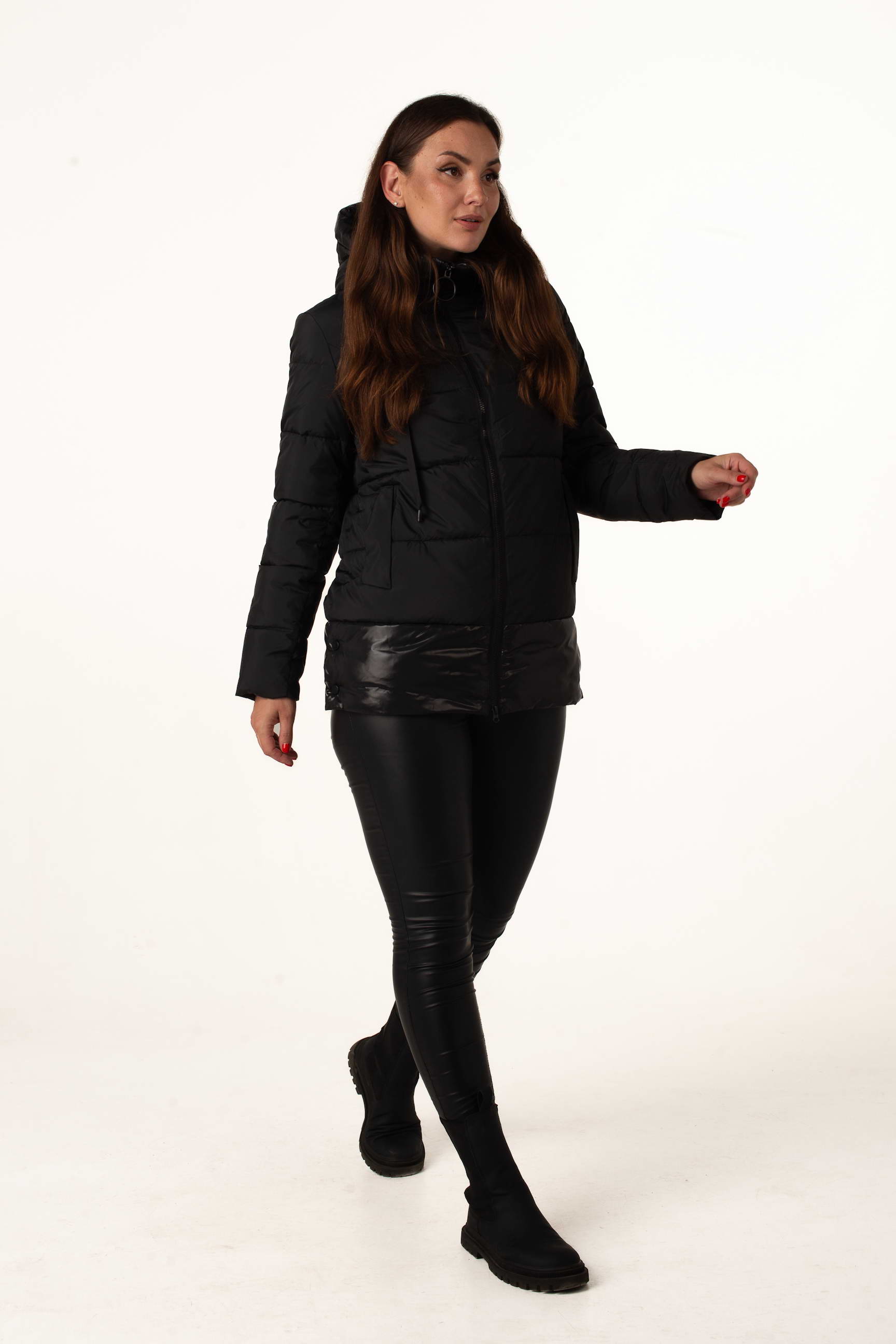 Стильная и тёплая модель для повседневного использования. Горизонтальная стёжка и декоративные кнопки добавляют уникальности. Лёгкий и комфортный крой для зимы.