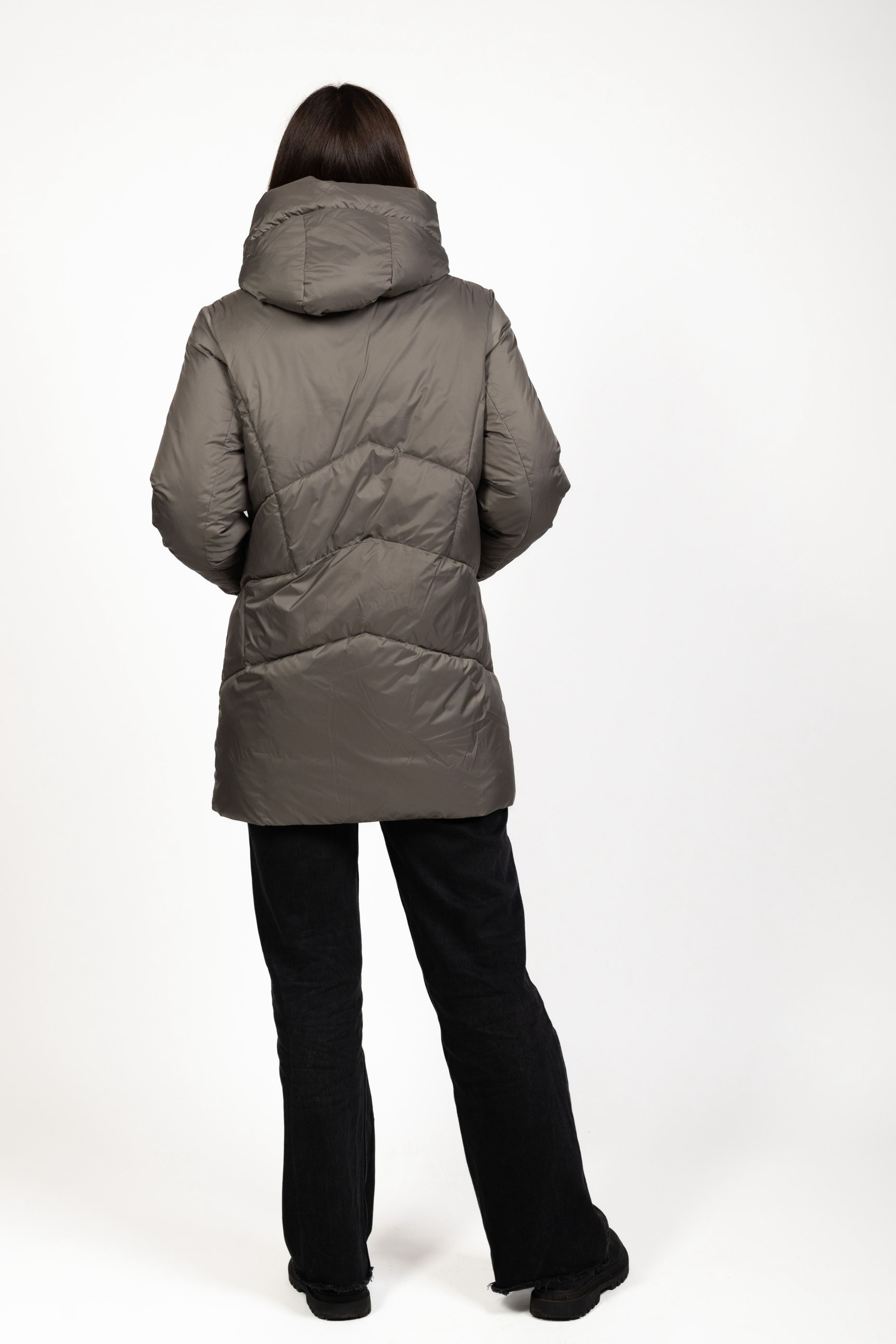 Серый женский биопуховик с фигурной стёжкой – современная и практичная модель, сочетающая комфорт, тепло и стильный дизайн. Идеально подходит для повседневного ношения в зимний период.