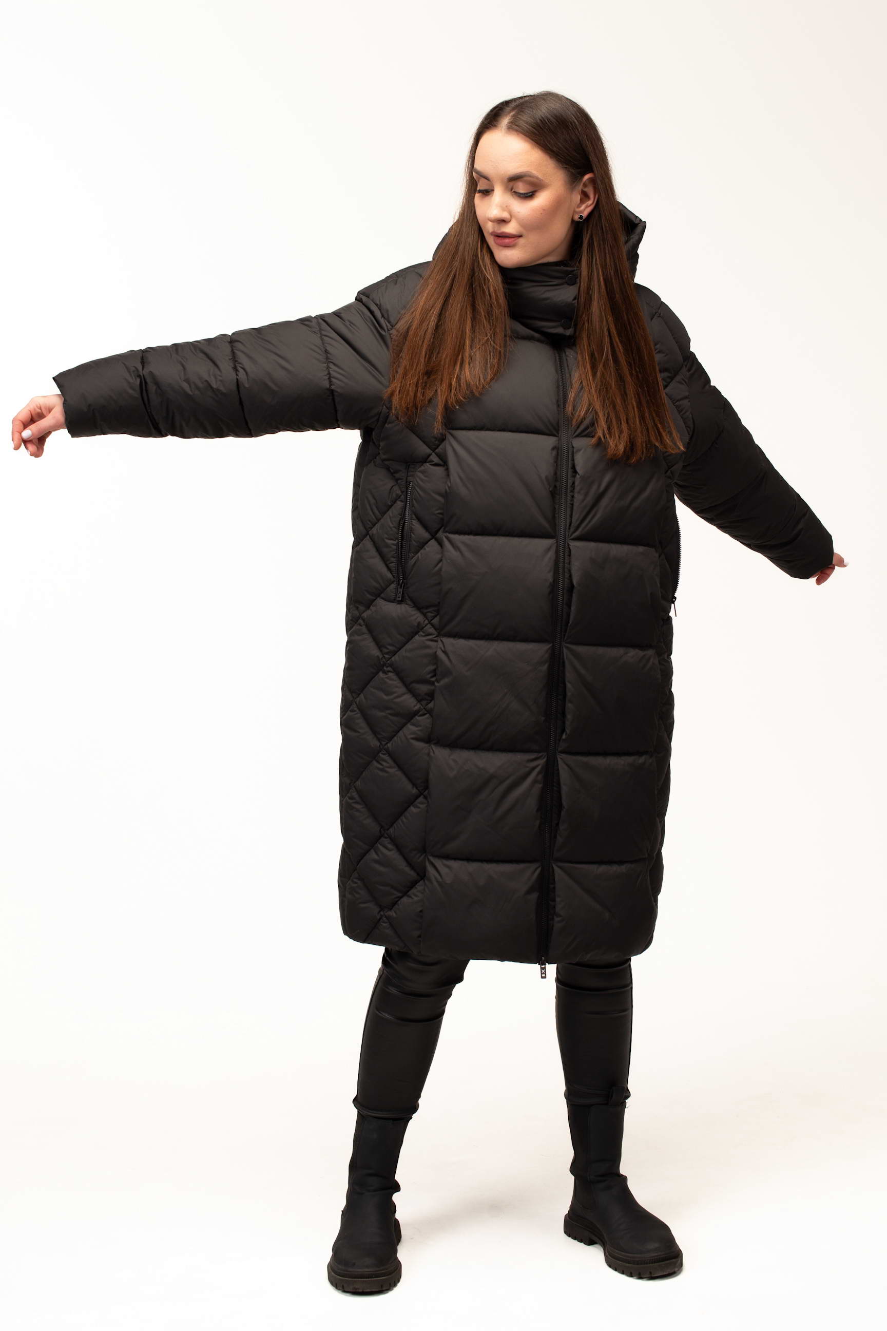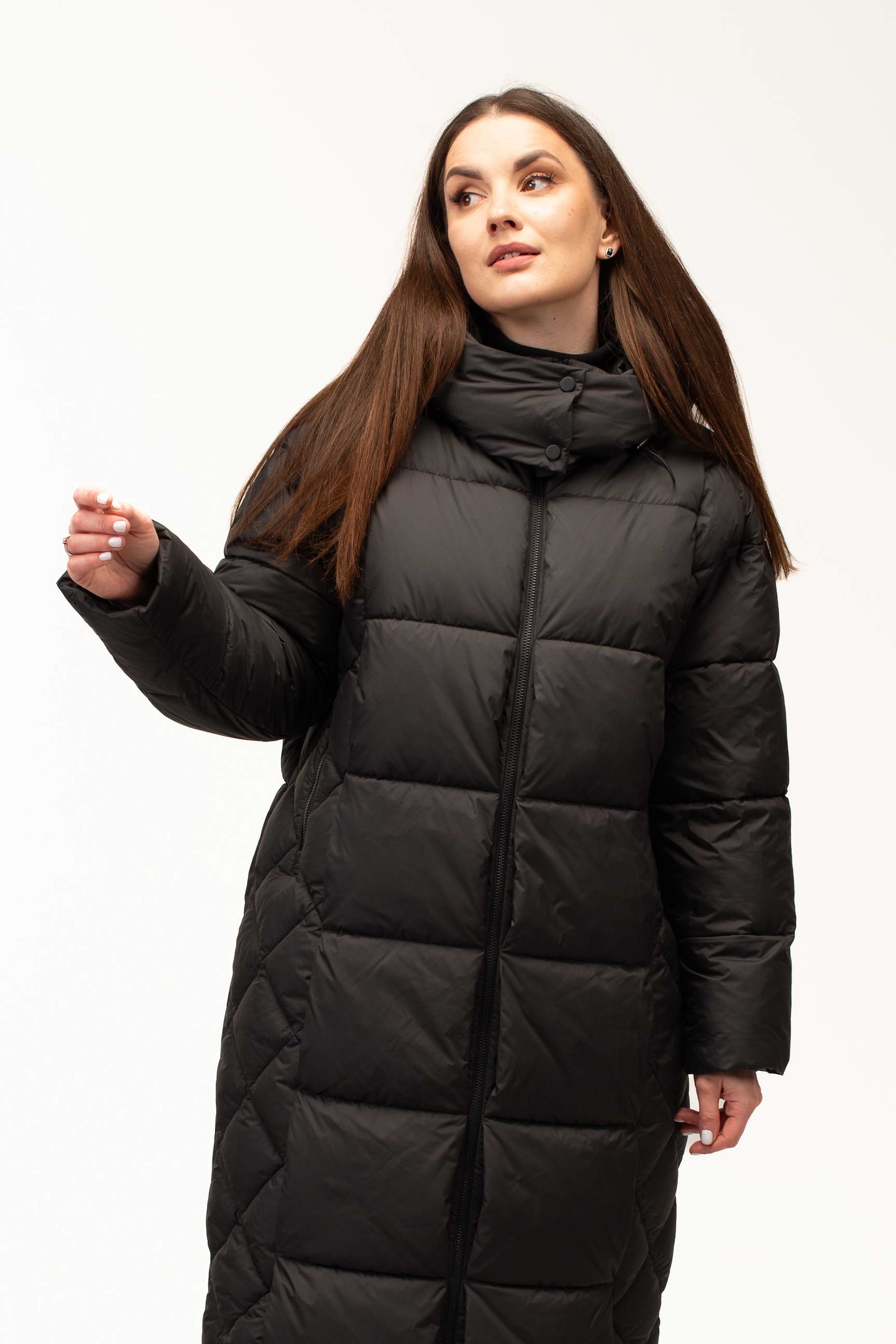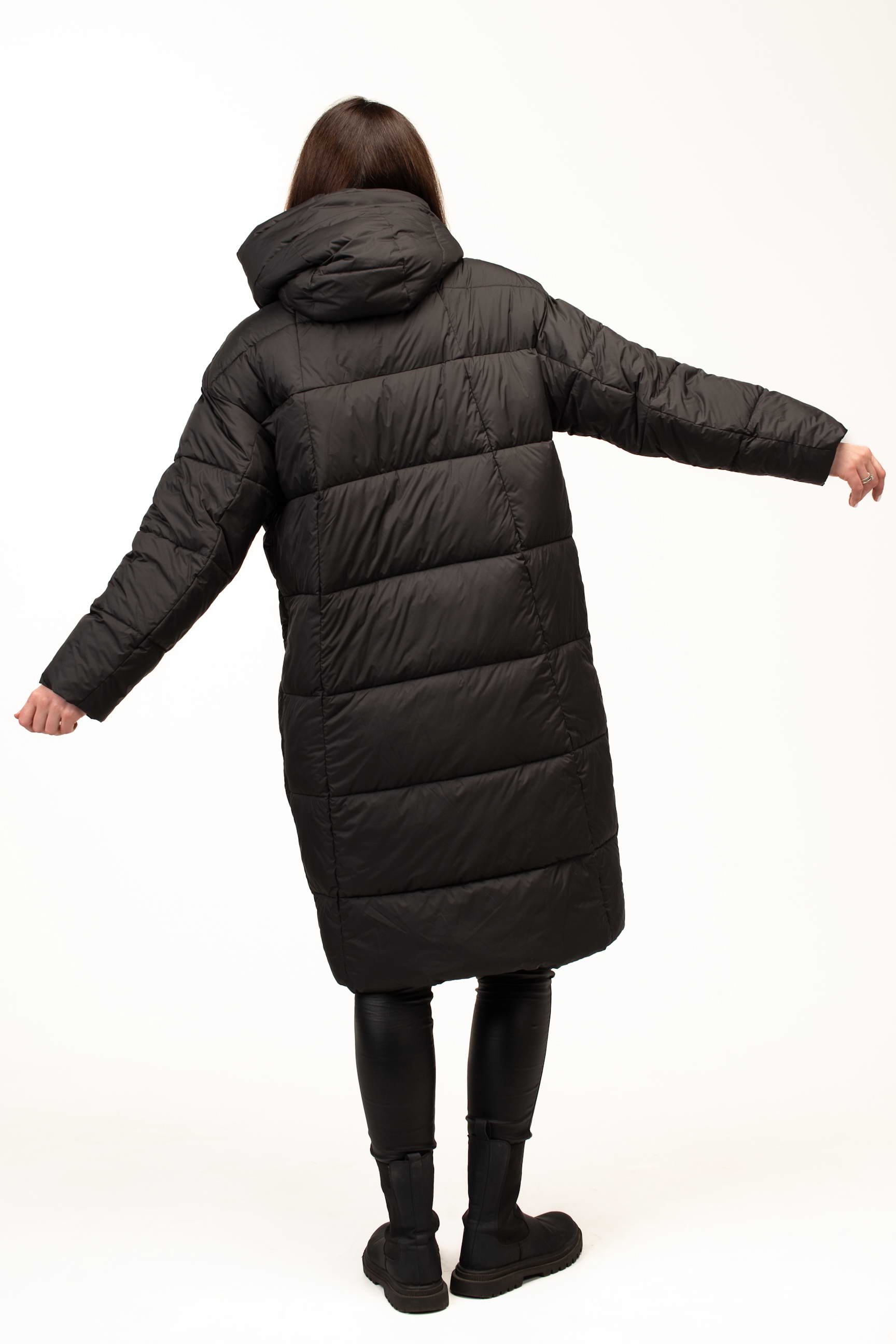 Классический черный цвет придает изделию элегантность и универсальность, позволяя легко комбинировать куртку с любым гардеробом. Удлиненная длина 105 см обеспечивает максимальную защиту от холода и ветра, что особенно важно во время длительных прогулок или активного ритма жизни в городе.