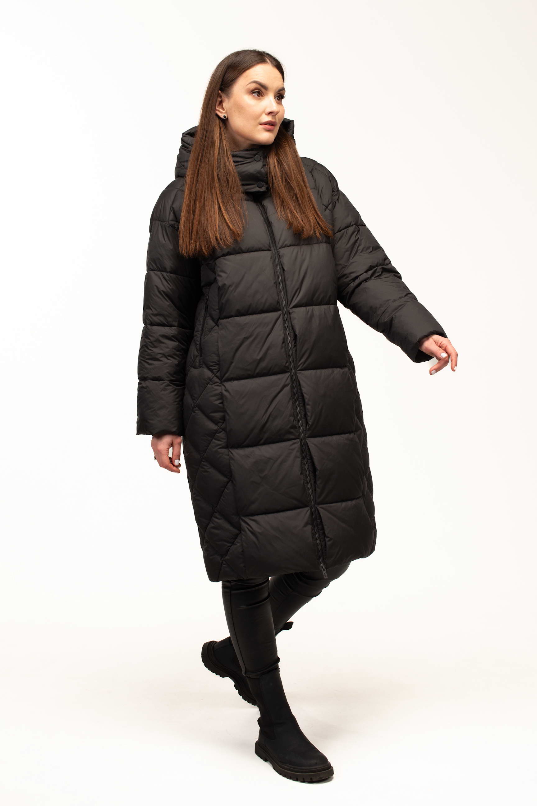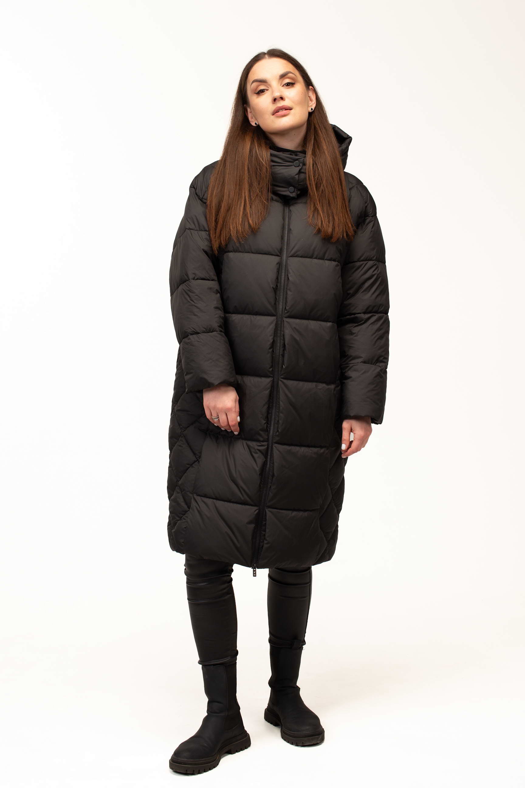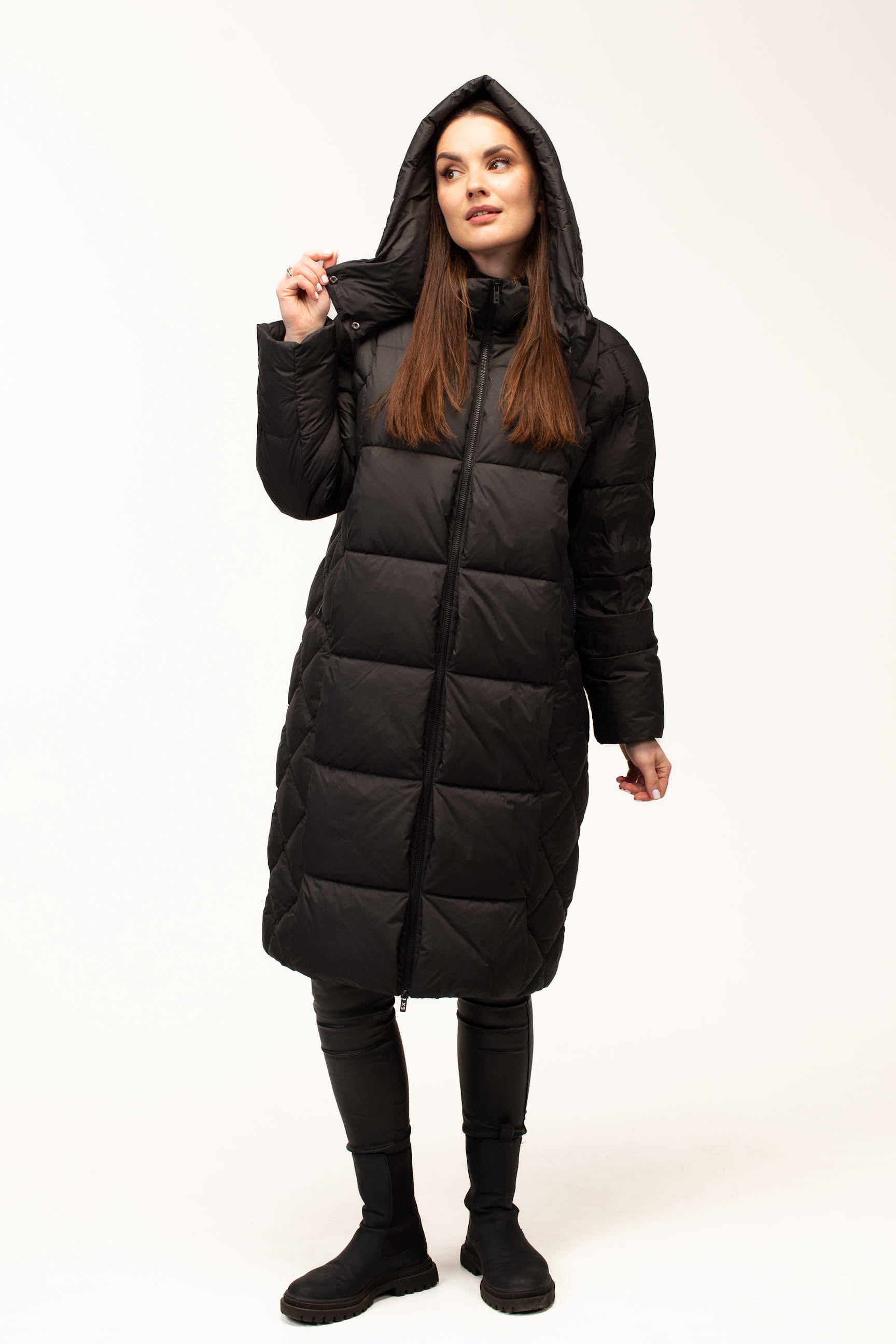Классический черный цвет придает изделию элегантность и универсальность, позволяя легко комбинировать куртку с любым гардеробом. Удлиненная длина 105 см обеспечивает максимальную защиту от холода и ветра, что особенно важно во время длительных прогулок или активного ритма жизни в городе.