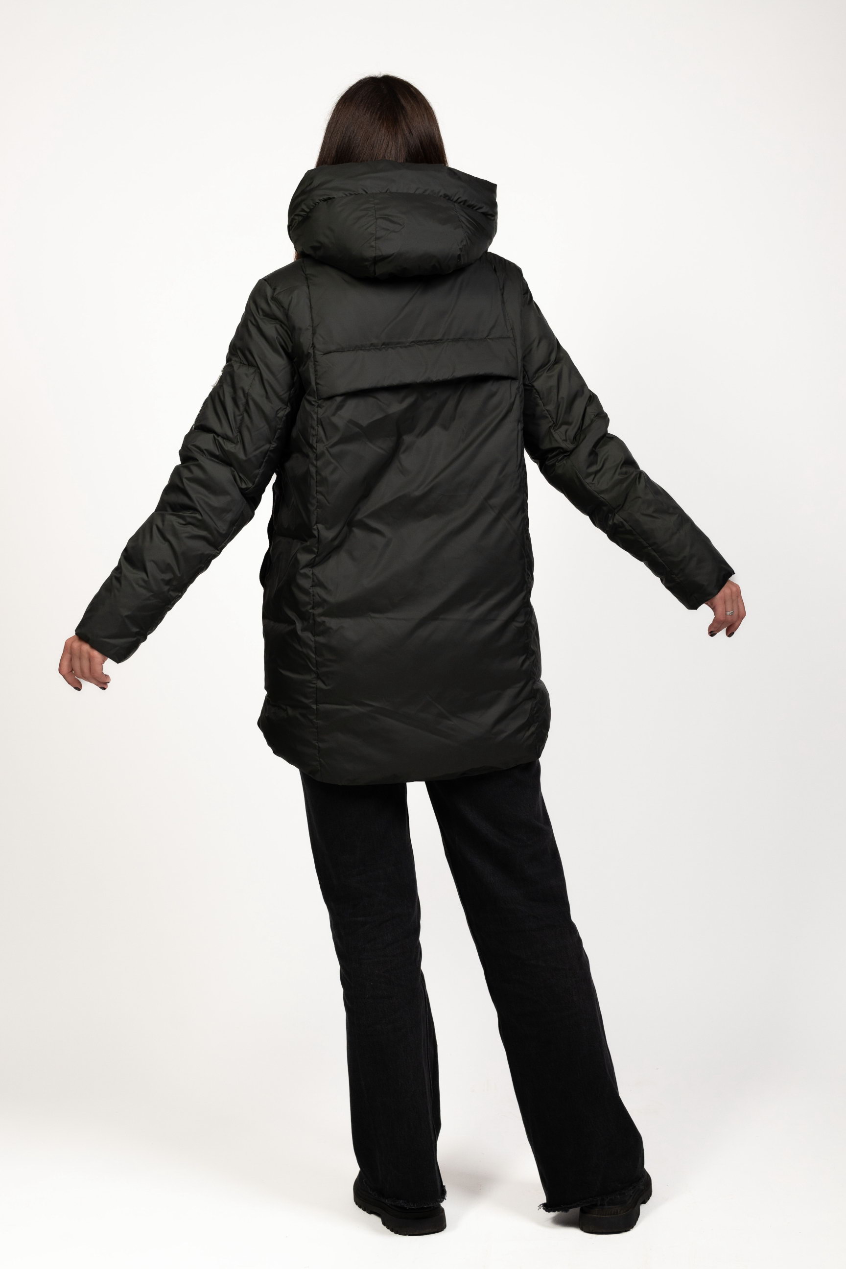 Воротник-стойка с капюшоном надёжно защищает шею и голову от ветра, снега и холода, создавая дополнительный комфорт в морозы.