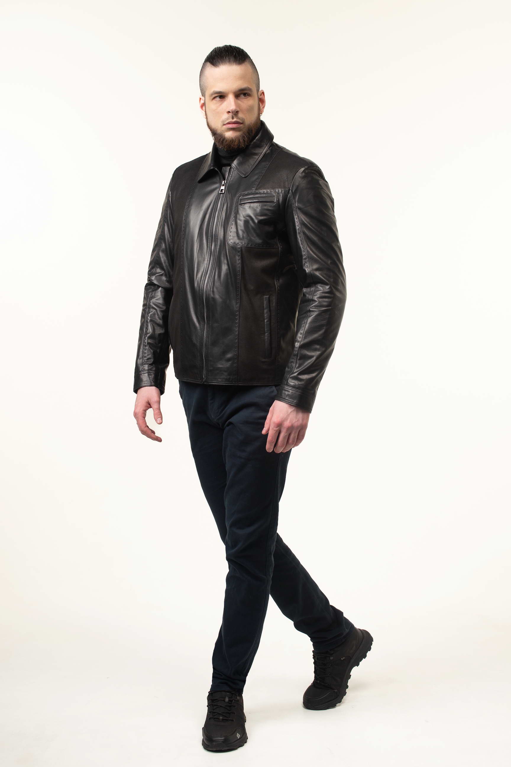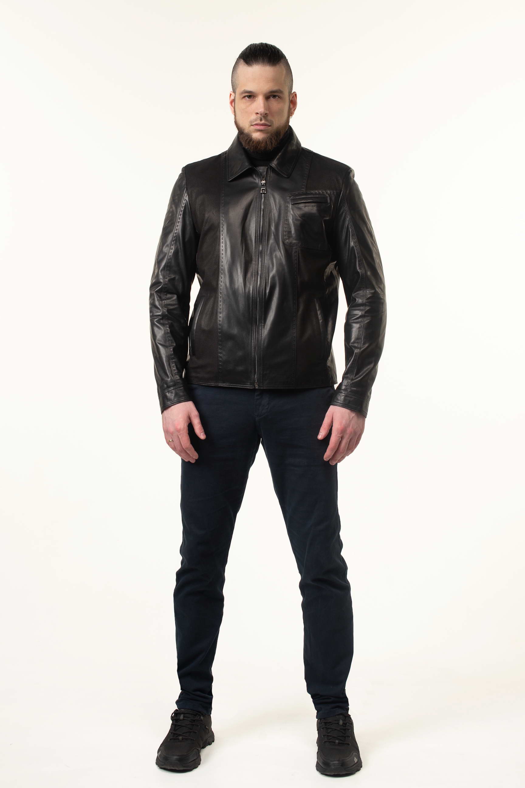 Стильна чоловіча шкіряна куртка для сезону весна/осінь — це поєднання класичного дизайну, преміальної якості матеріалу та продуманих деталей. Модель виготовлена з натуральної телячої шкіри високої якості, яка відзначається міцністю, еластичністю та гладкою текстурою. Чорний колір надає виробу універсальності, а декоративні шви додають куртці сучасного характеру та підкреслюють акуратність крою.