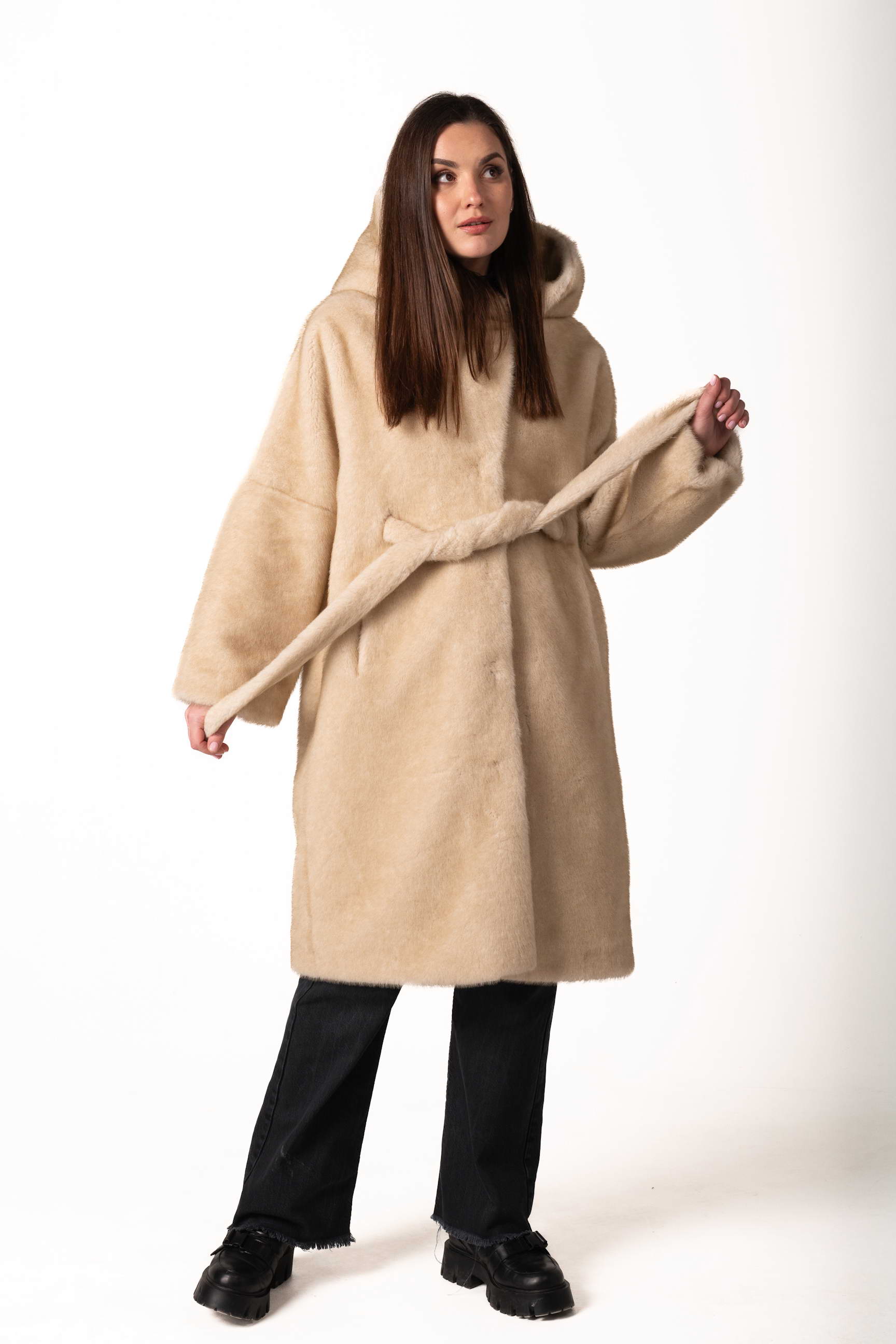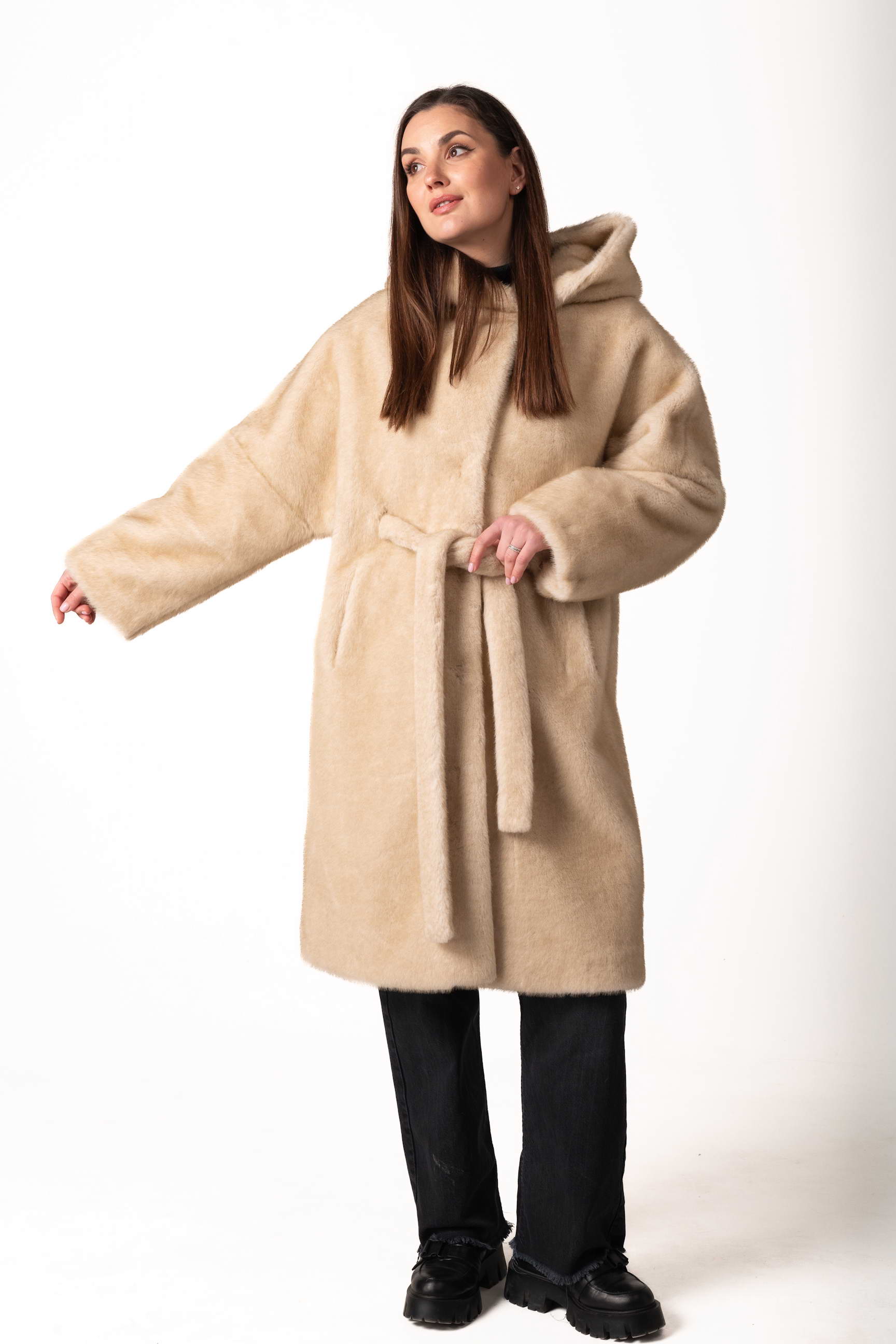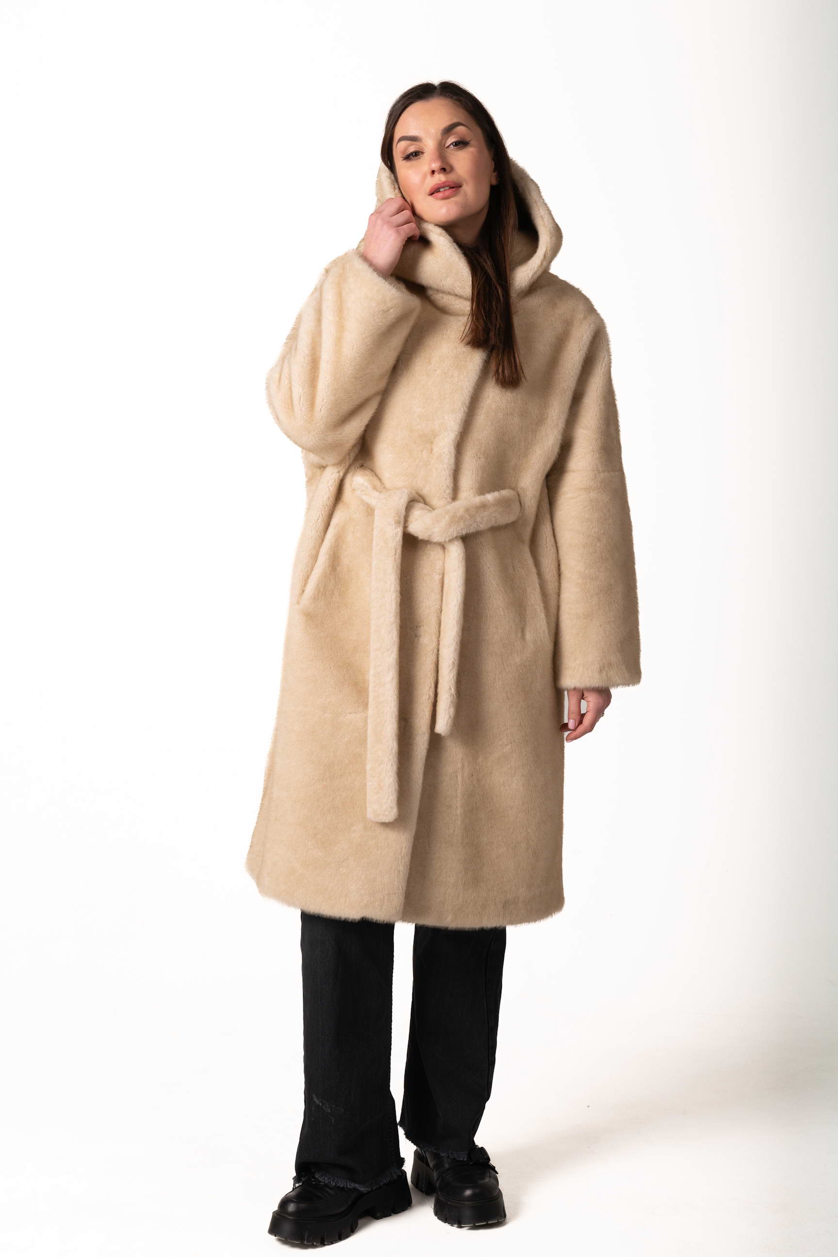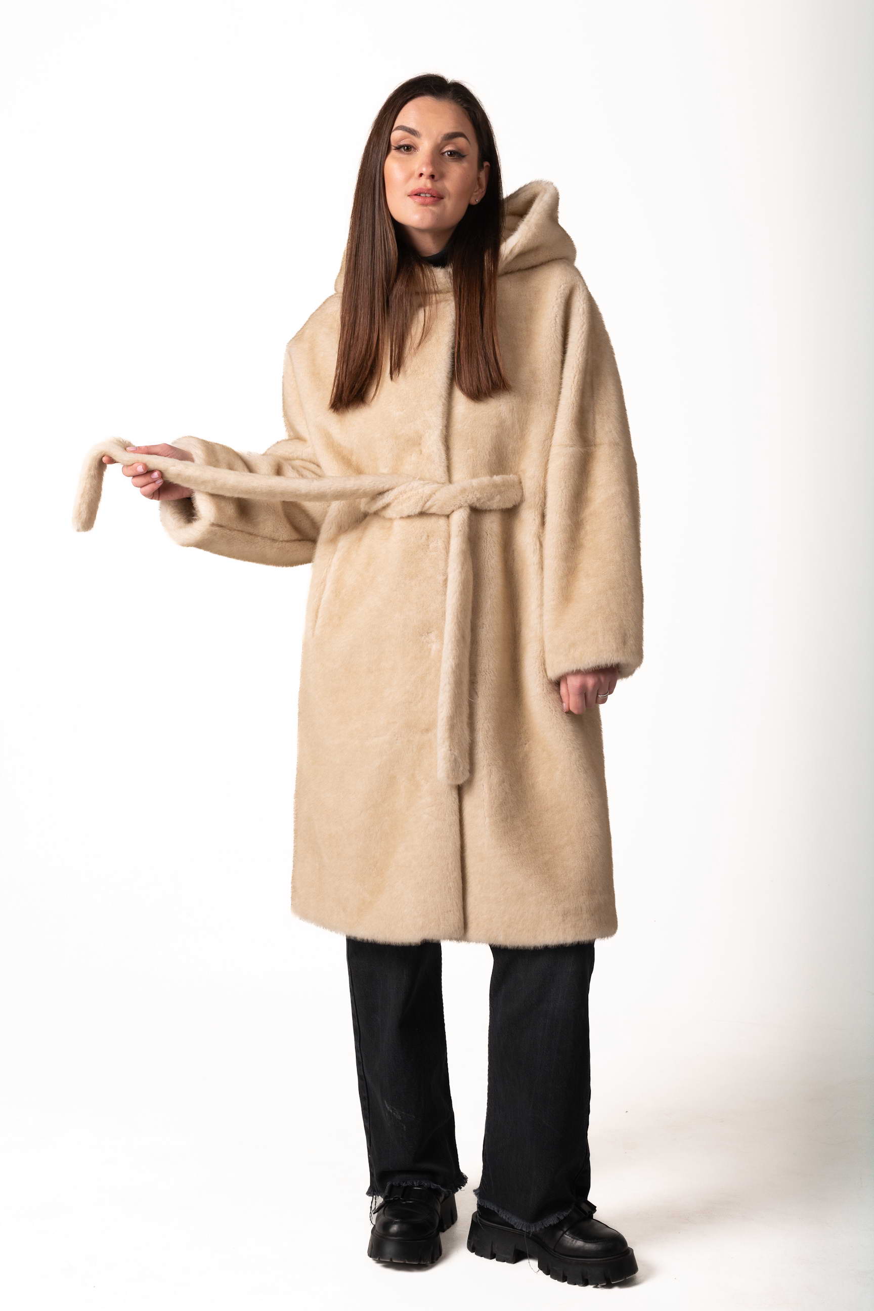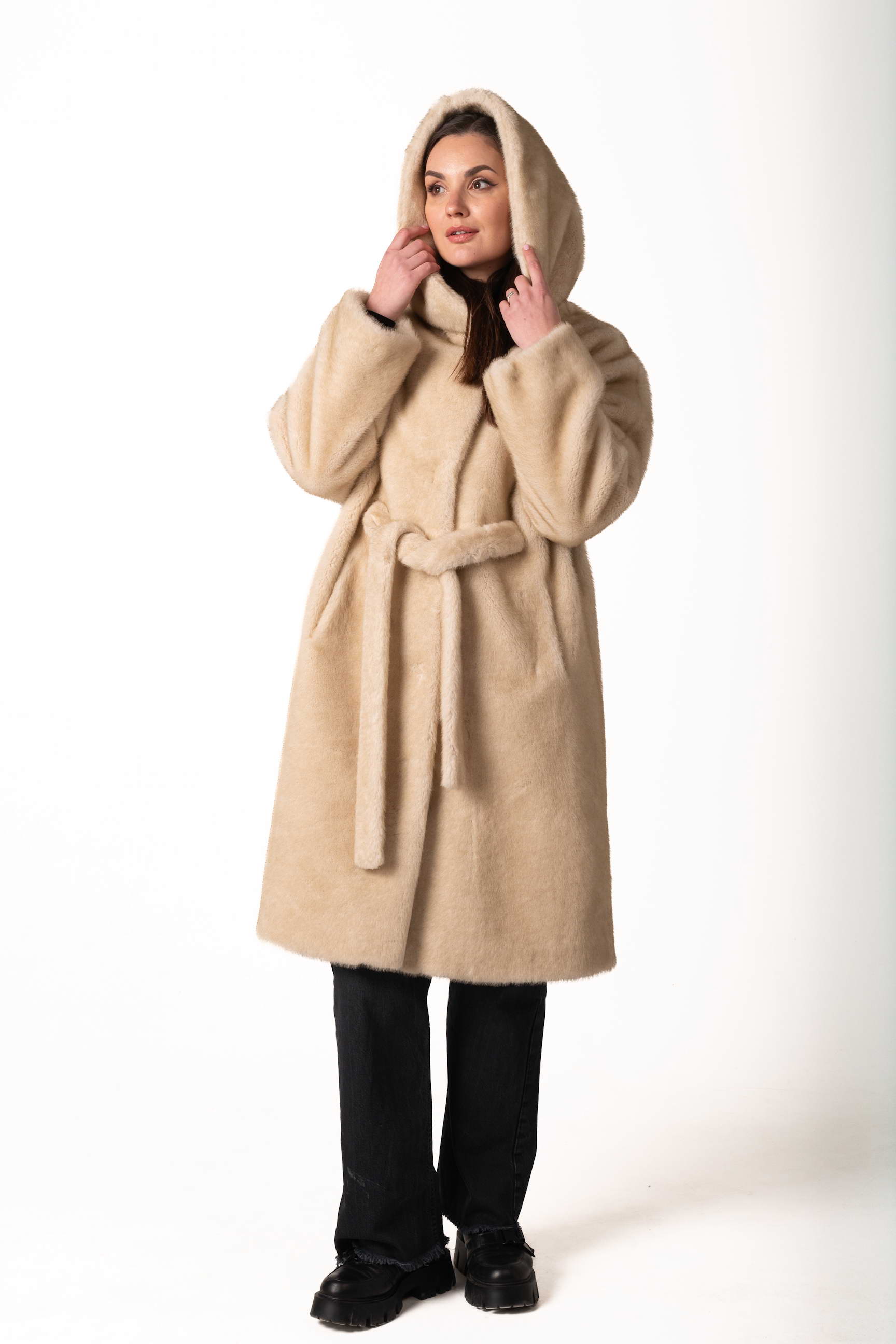 Прямий крій робить шубу зручною для щоденного носіння і підходить для будь-якого типу фігури. Особливий акцент — великий затишний капюшон, який надійно захищає від вітру та холоду, додає виробу стильності та завершеності образу.
