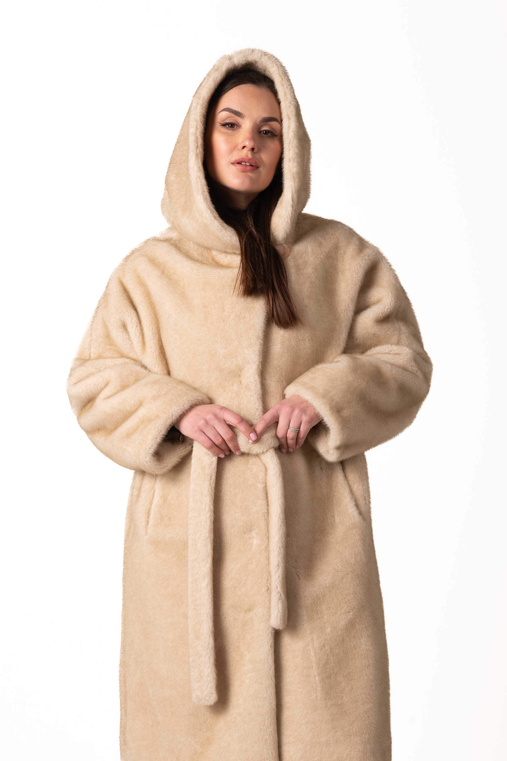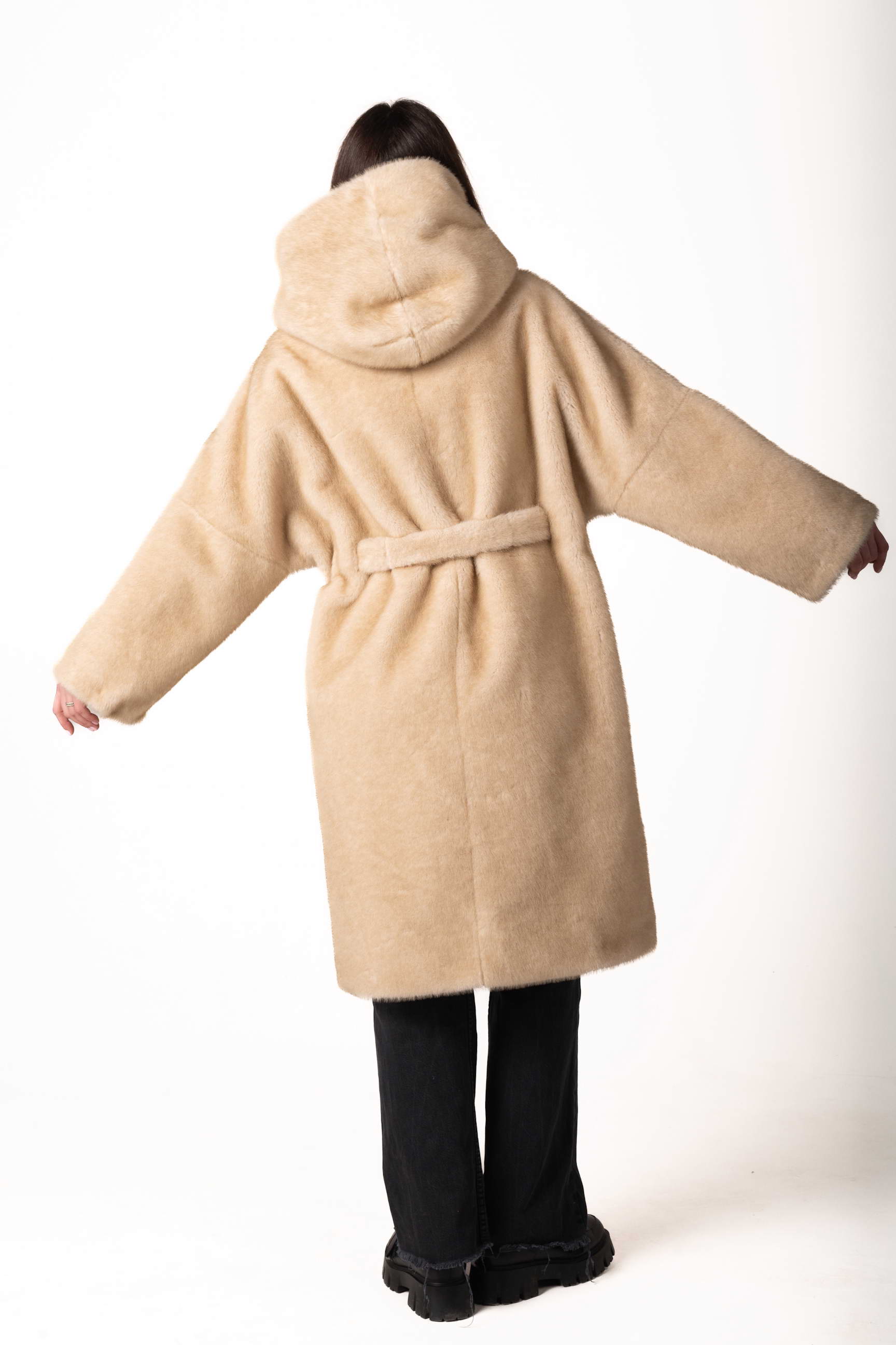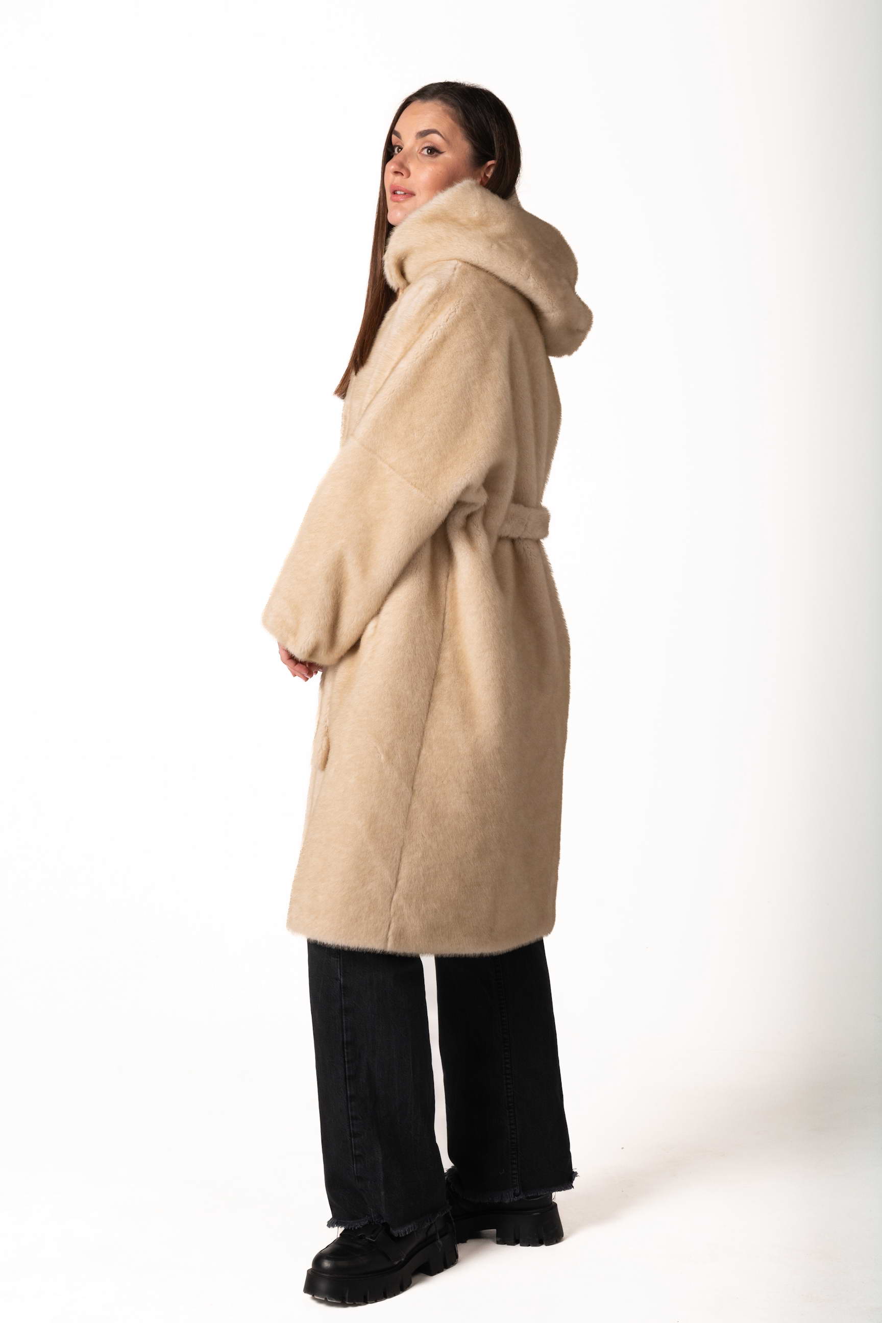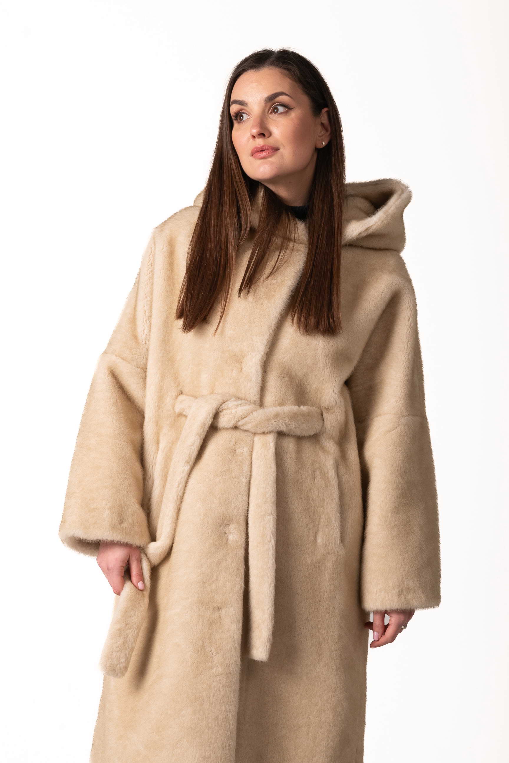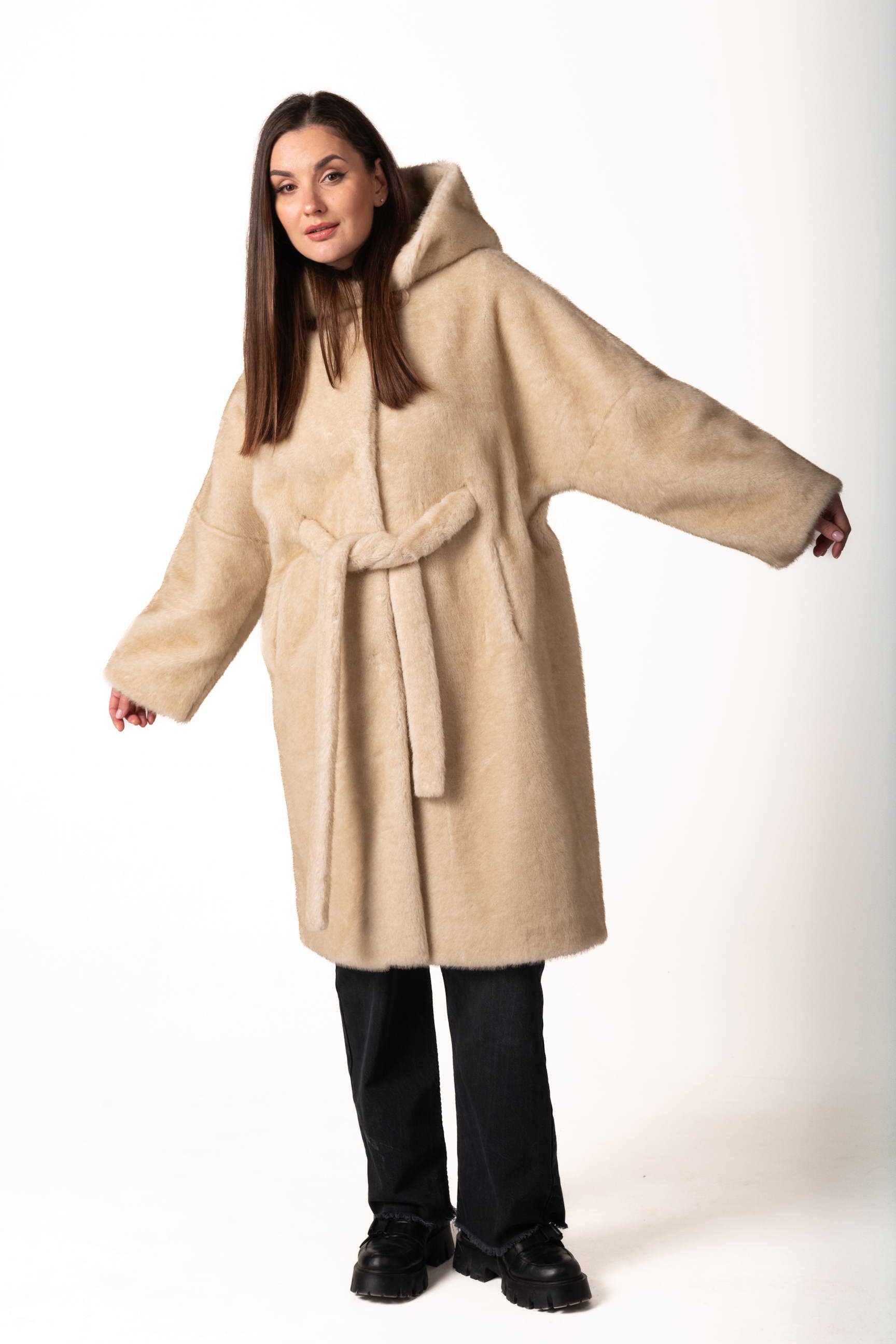 Прямий крій робить шубу зручною для щоденного носіння і підходить для будь-якого типу фігури. Особливий акцент — великий затишний капюшон, який надійно захищає від вітру та холоду, додає виробу стильності та завершеності образу.