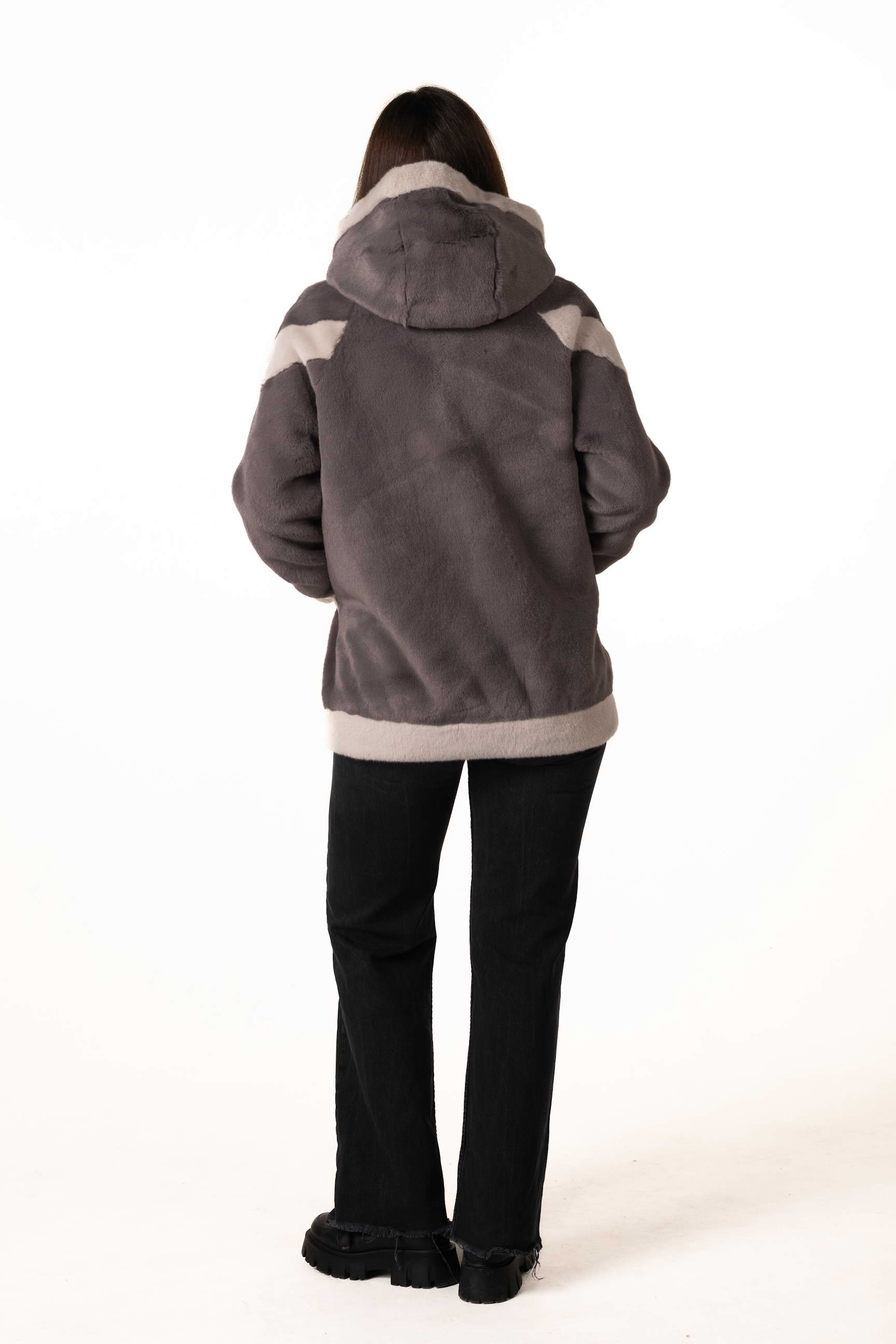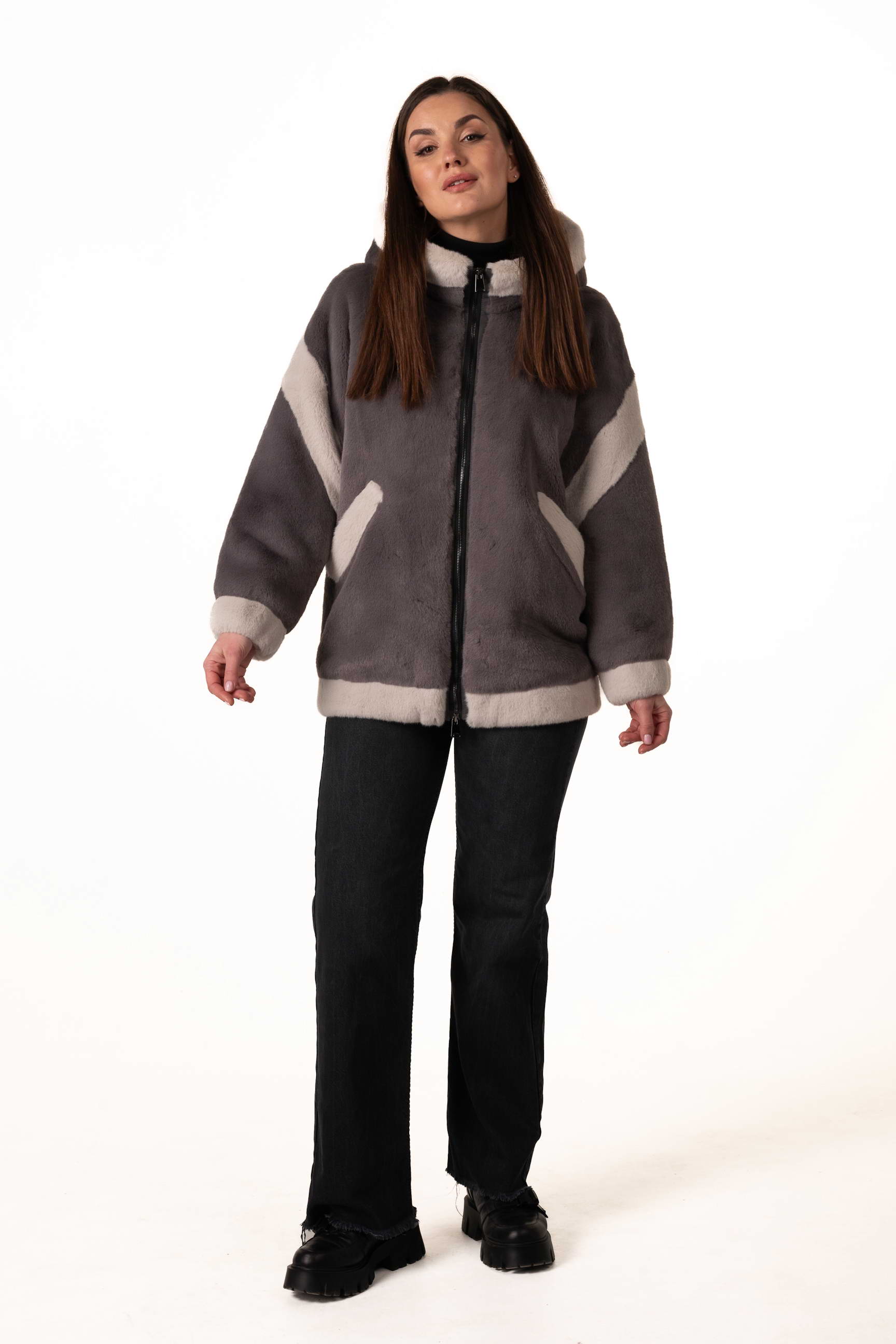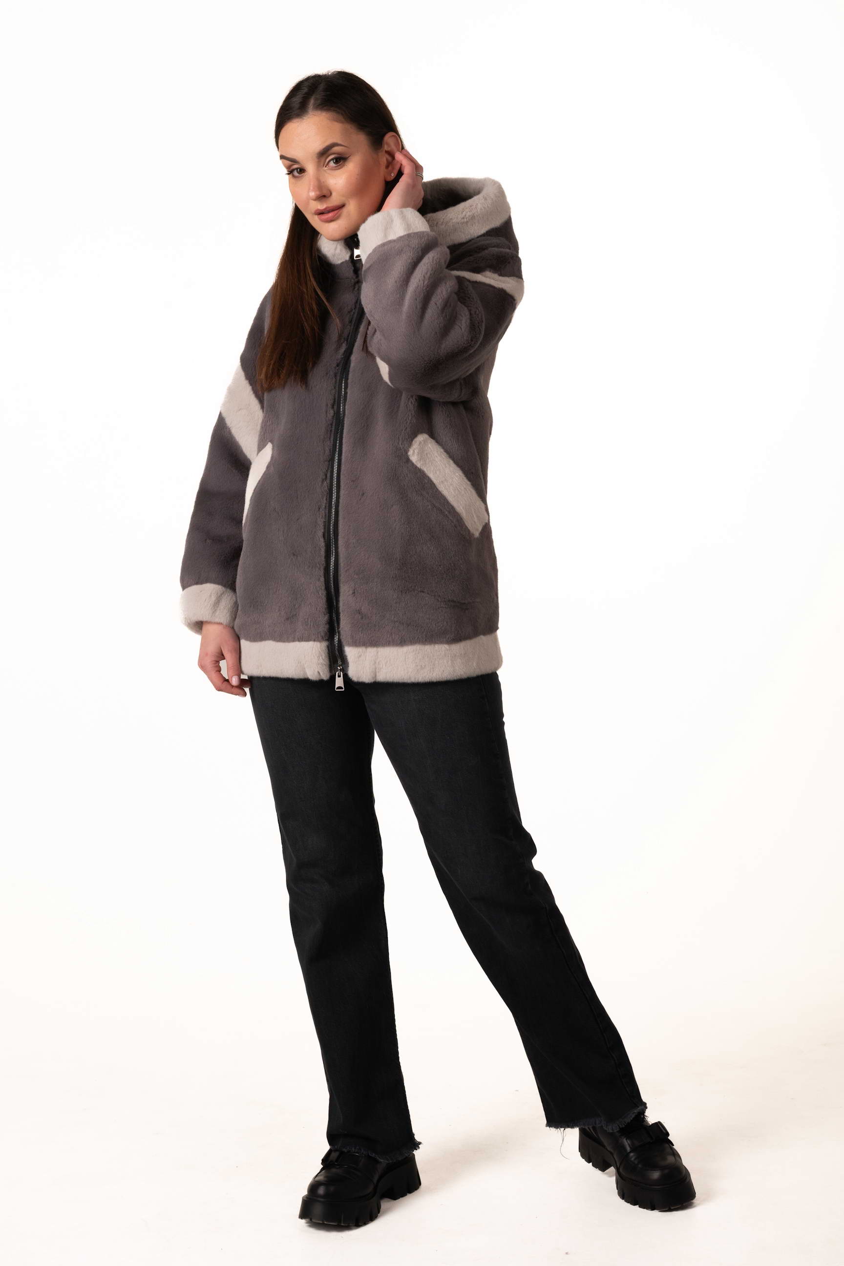 Сучасна жіноча шуба зі штучного хутра поєднує елегантність, комфорт і практичність для зимового гардеробу. Модель виготовлена з якісного екохутра, яке м’яке на дотик, довговічне та добре зберігає тепло, а також не вимагає складного догляду. Сірий колір додає виробу стриманості та універсальності, а декоративні вставки зі світлого екохутра створюють стильний контраст і додають образу легкого шарму та індивідуальності.