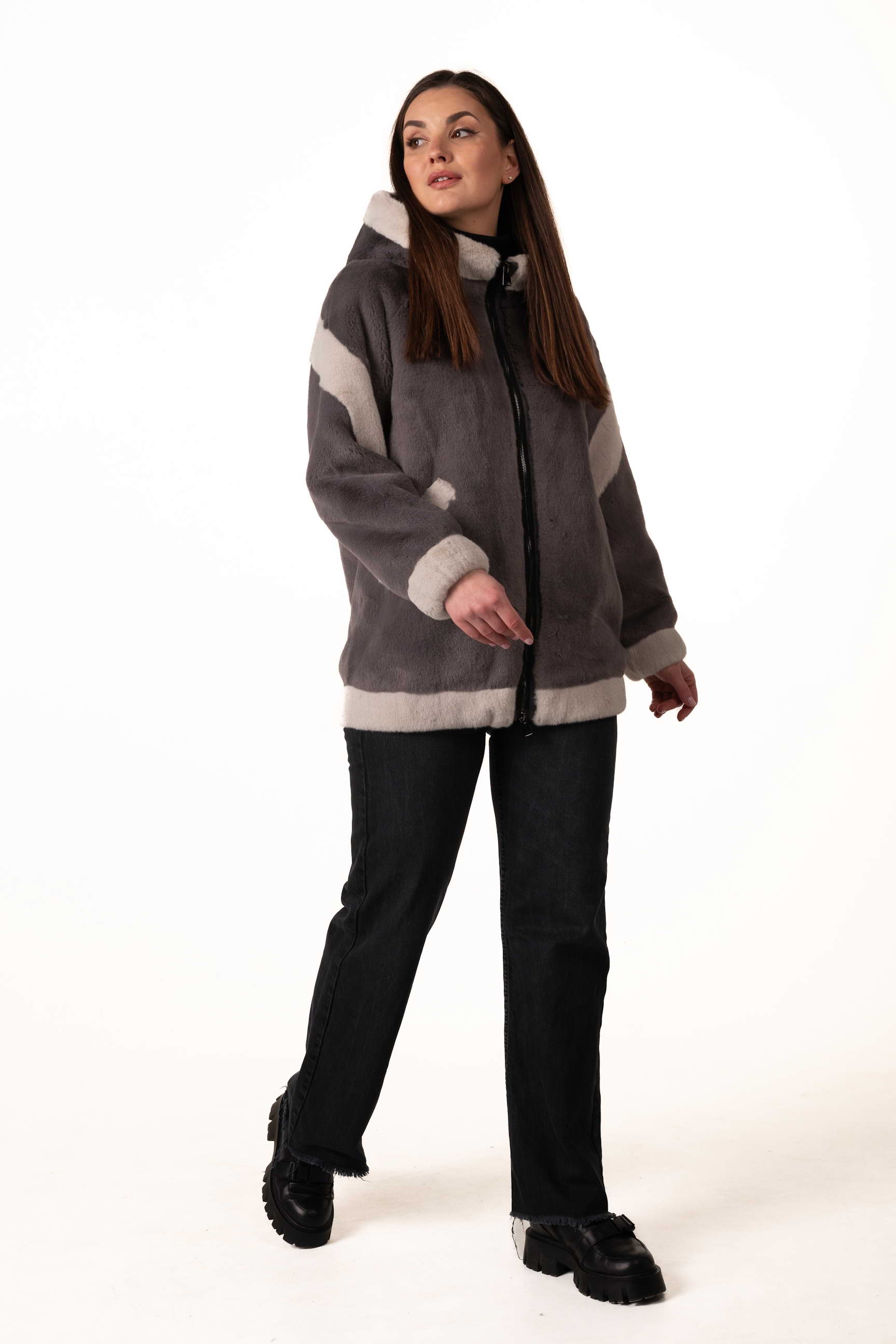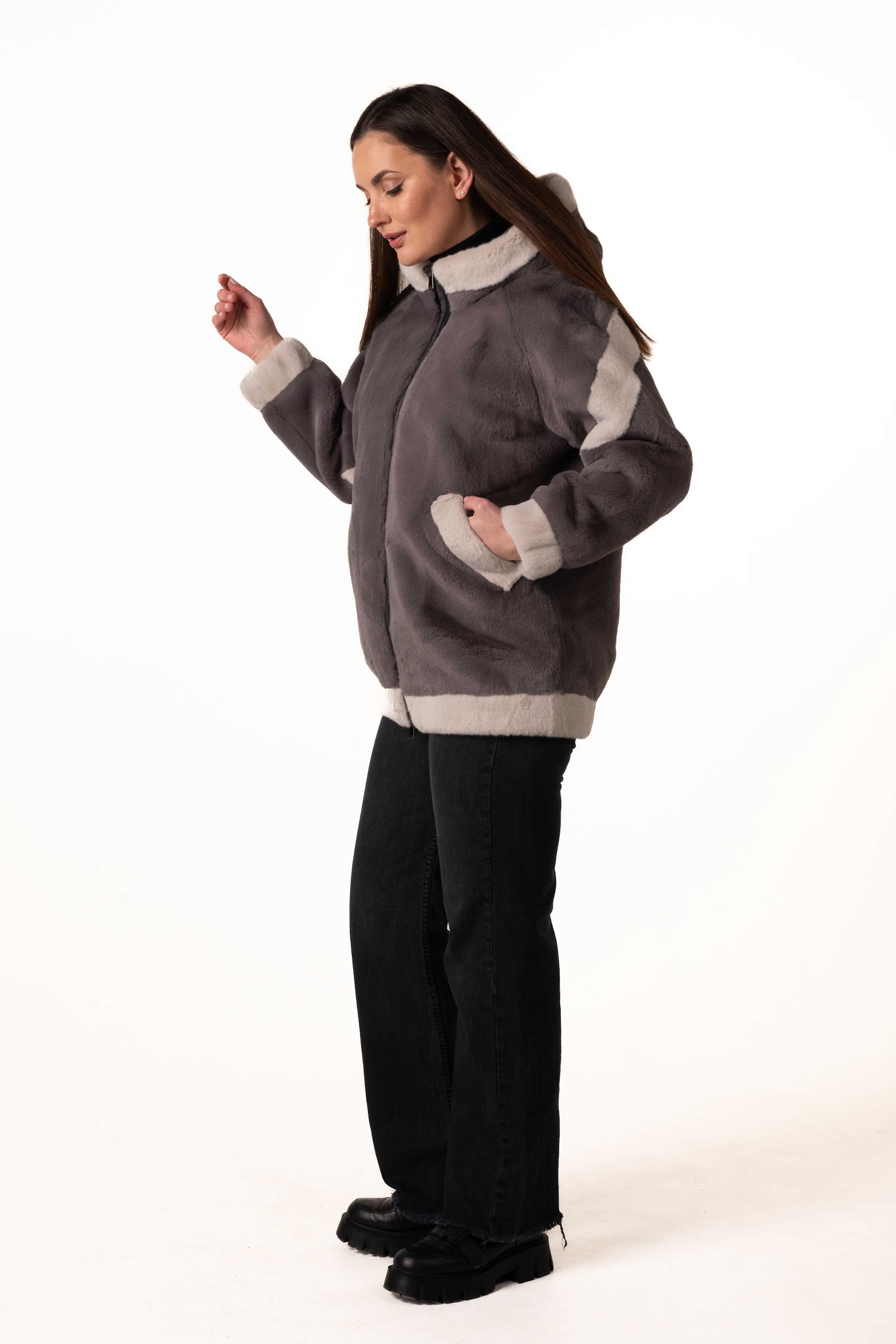 Довжина 75 см робить шубу компактною, легкою і універсальною: вона підходить як для щоденного носіння в місті, так і для прогулянок чи зустрічей у холодну погоду.
