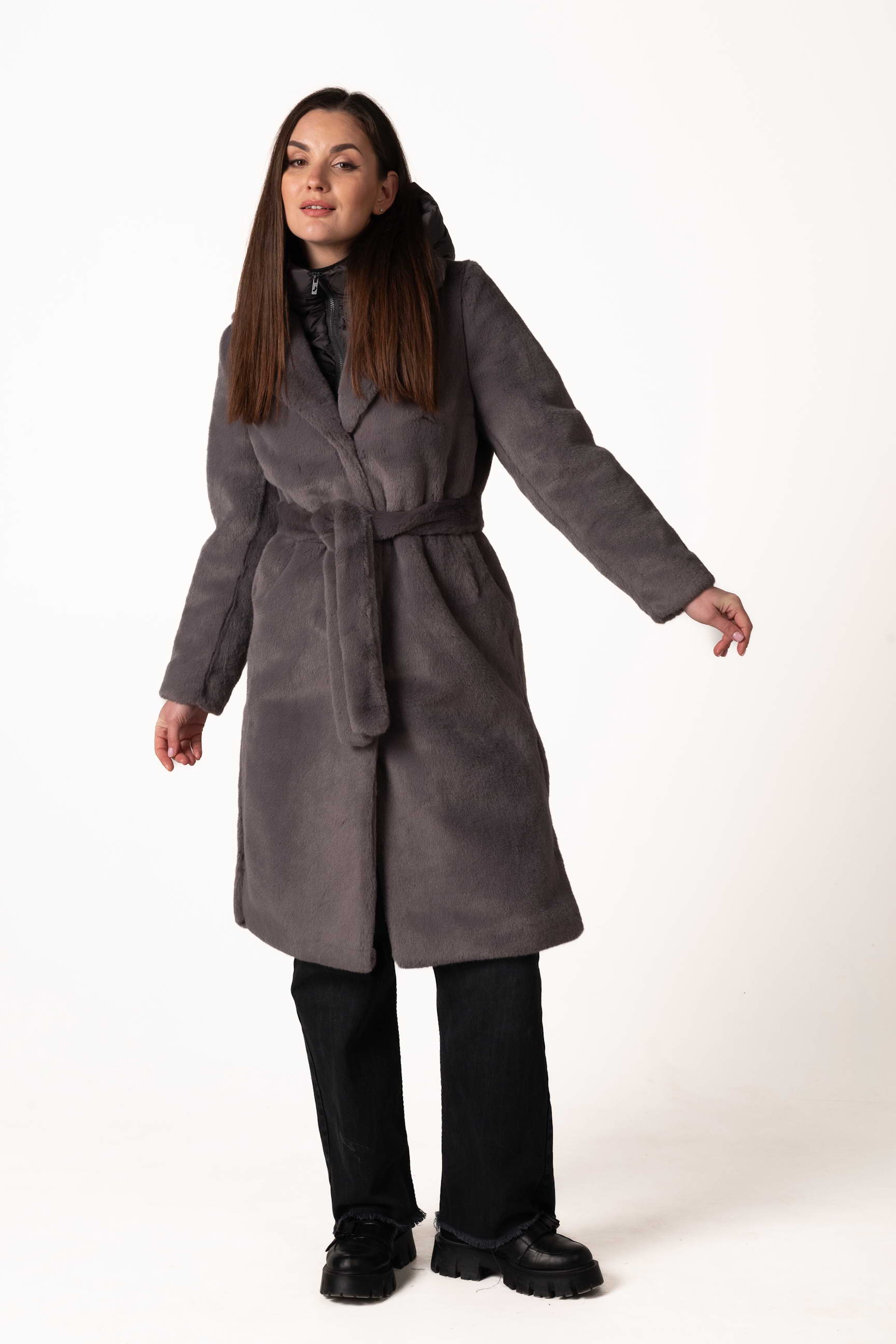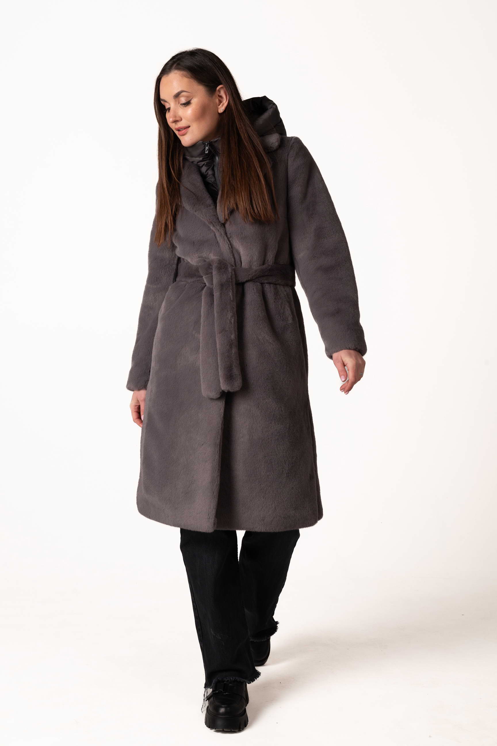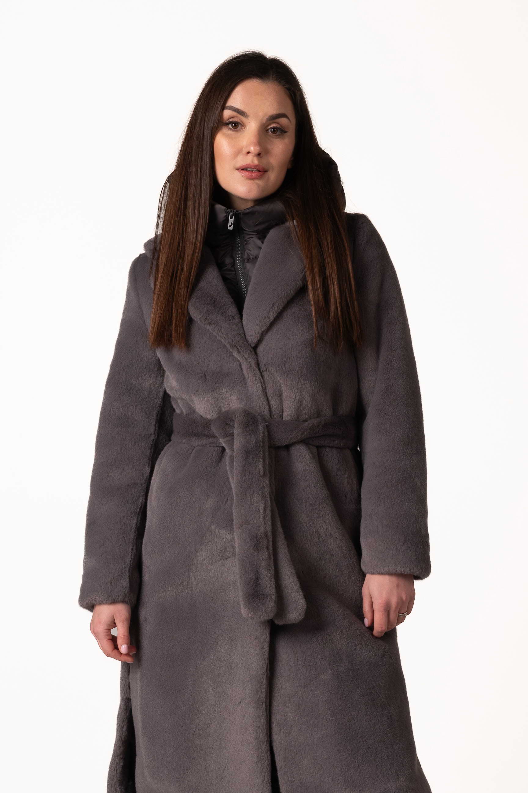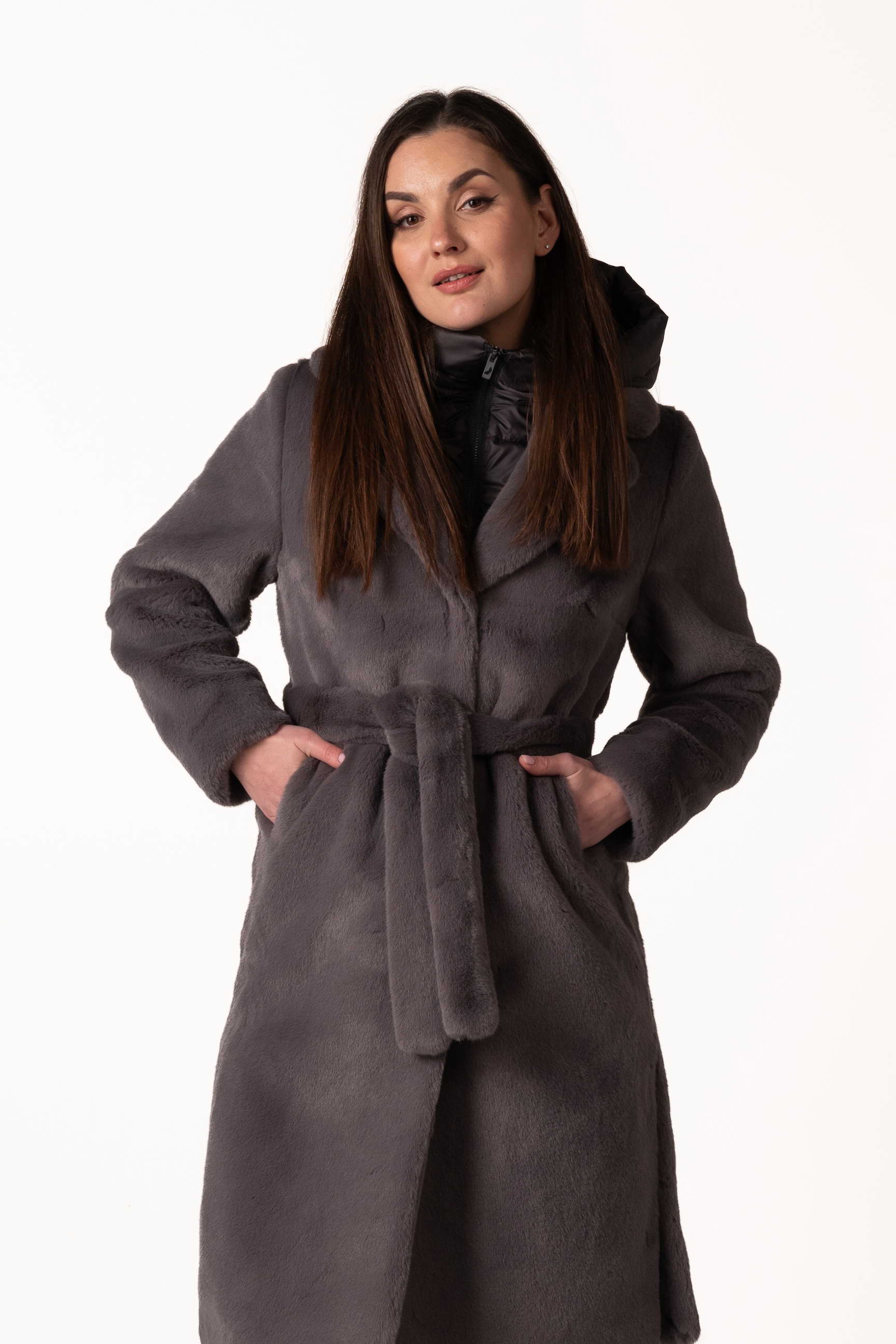 Сучасна жіноча шуба зі штучного хутра — це поєднання комфорту, стилю та практичності для холодного сезону. Модель виконана з якісного штучного хутра, яке м’яке, приємне на дотик і забезпечує надійне тепло, не потребуючи складного догляду. Темно-сірий колір додає виробу благородності, стриманості та універсальності, легко поєднується з будь-яким зимовим гардеробом.