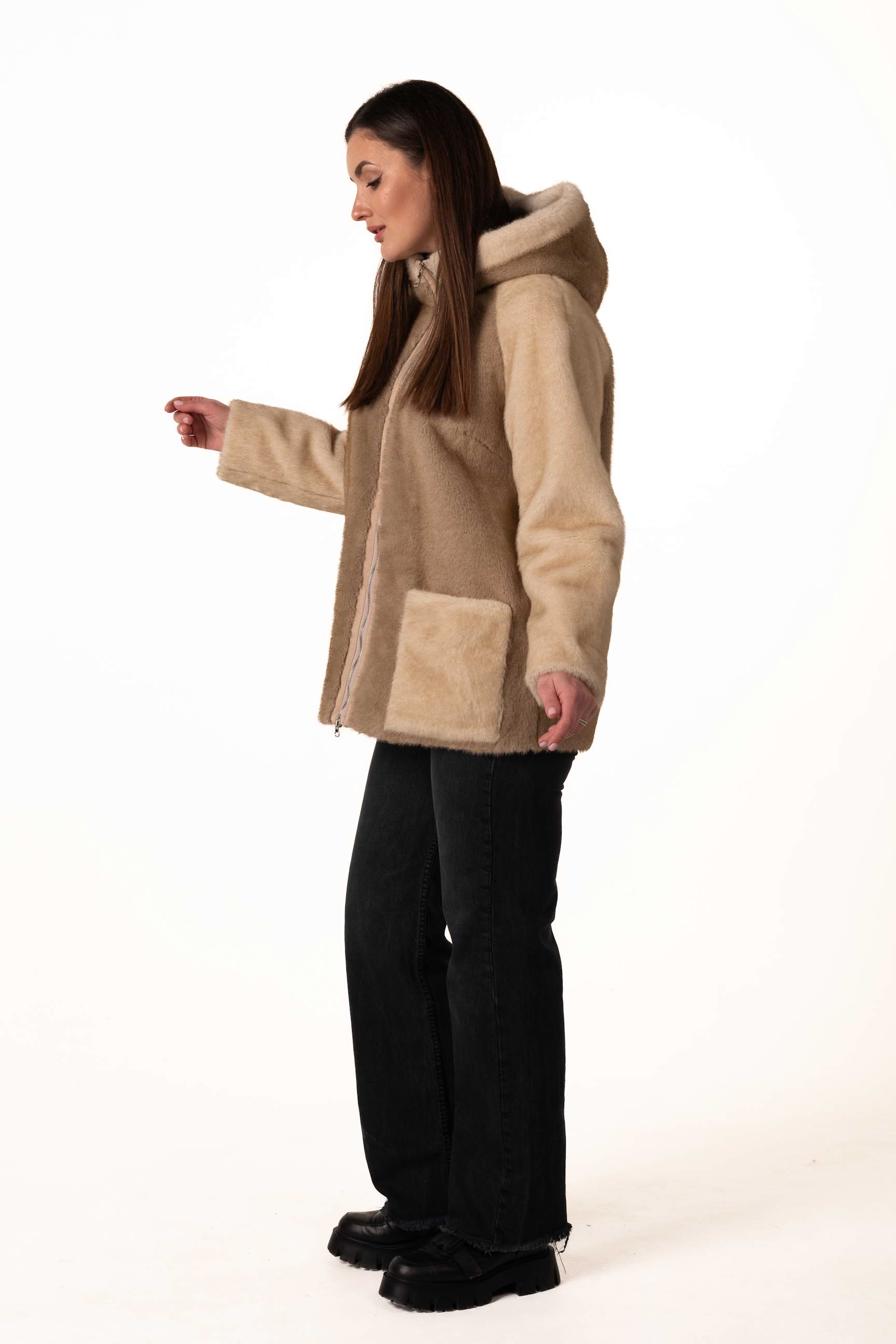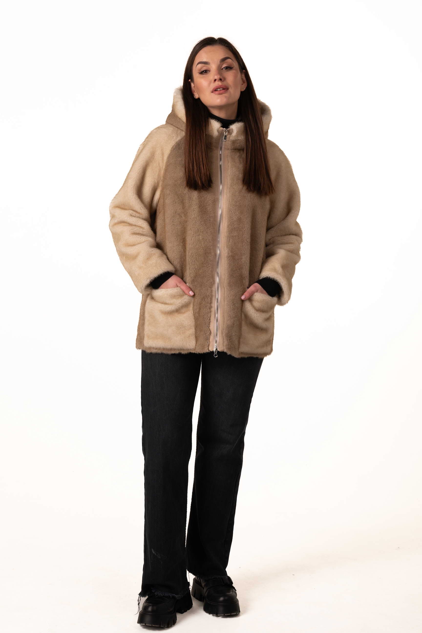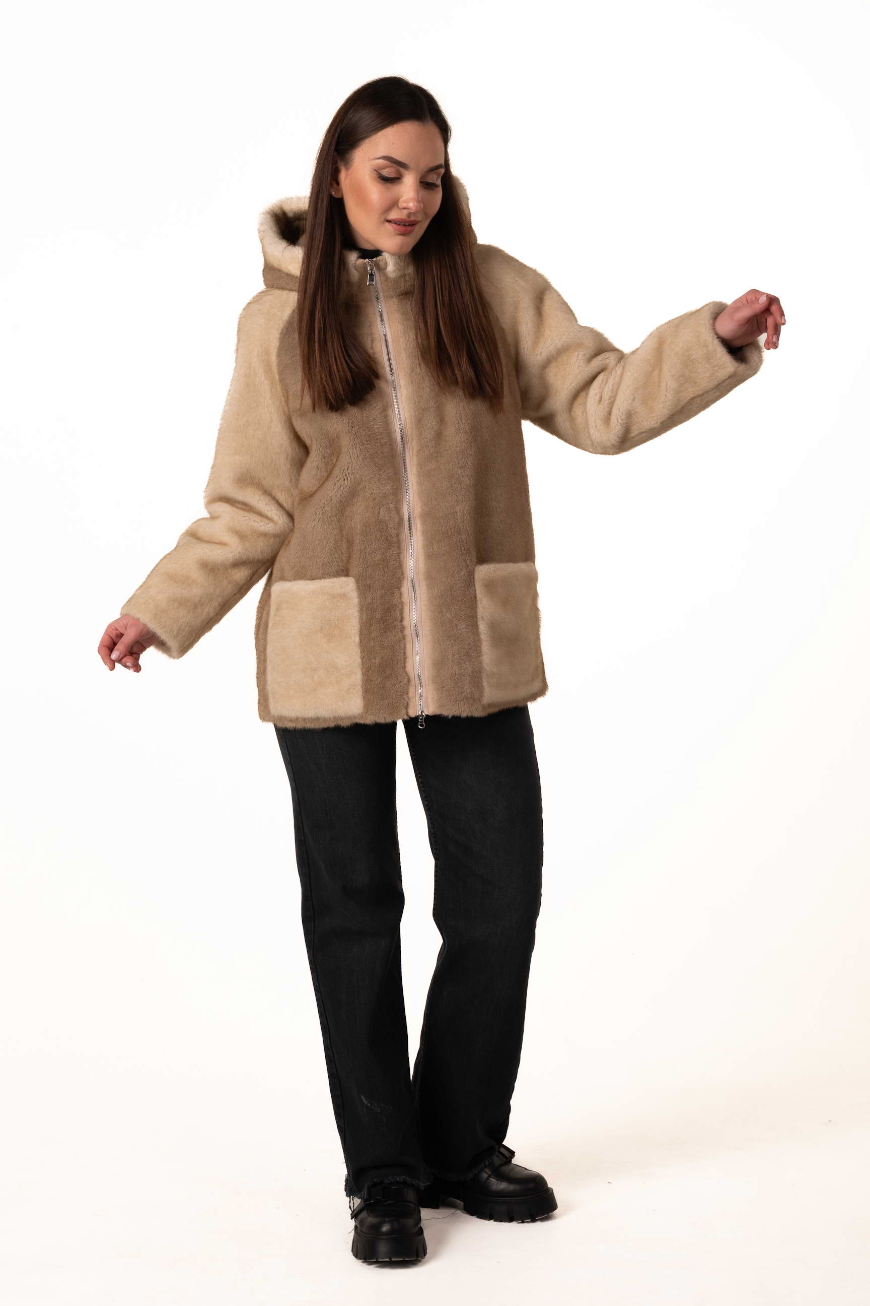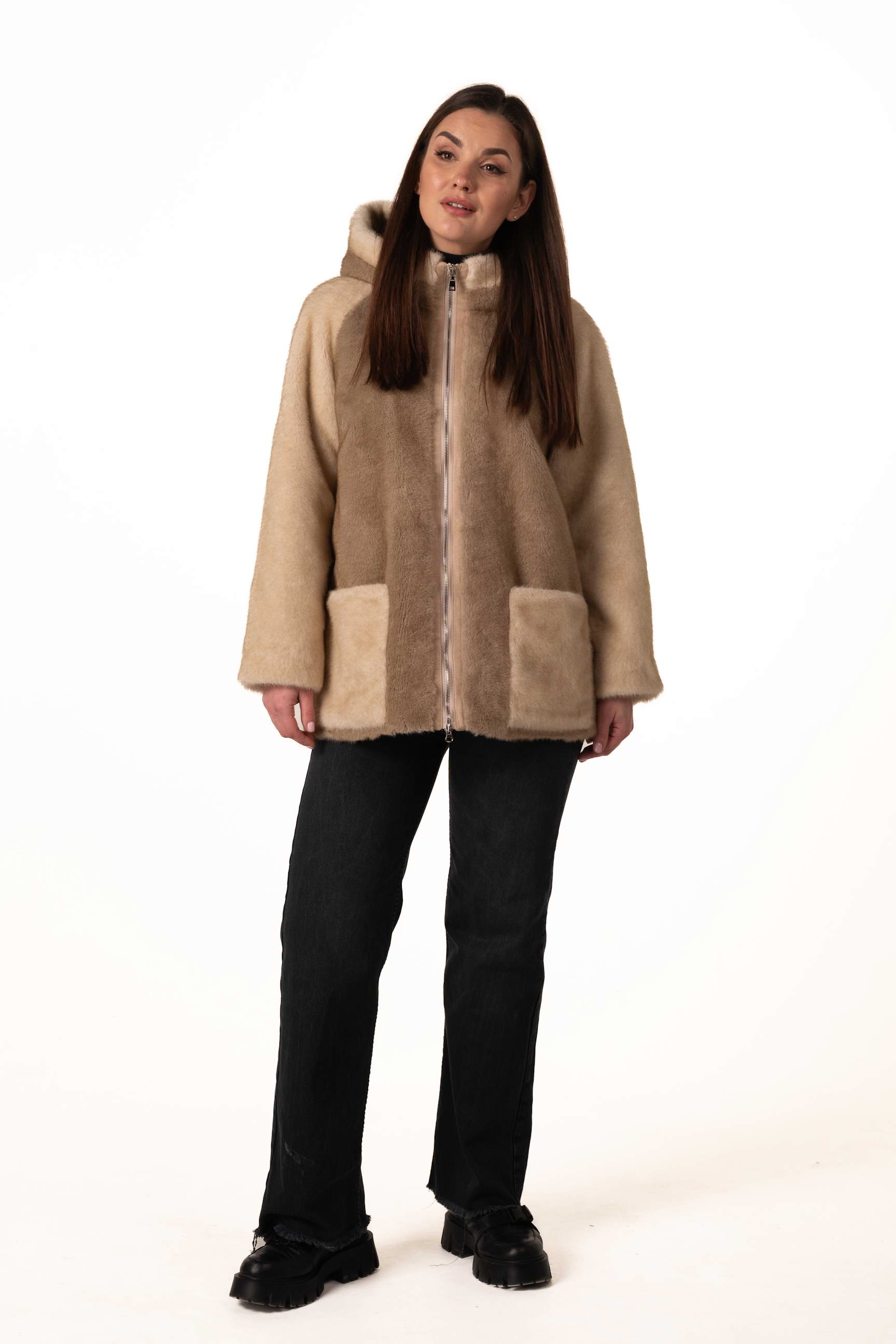 Прямий крій створює акуратний силует, не обмежує рухів і дозволяє легко поєднувати шубу з різними стилями — від casual до елегантного.