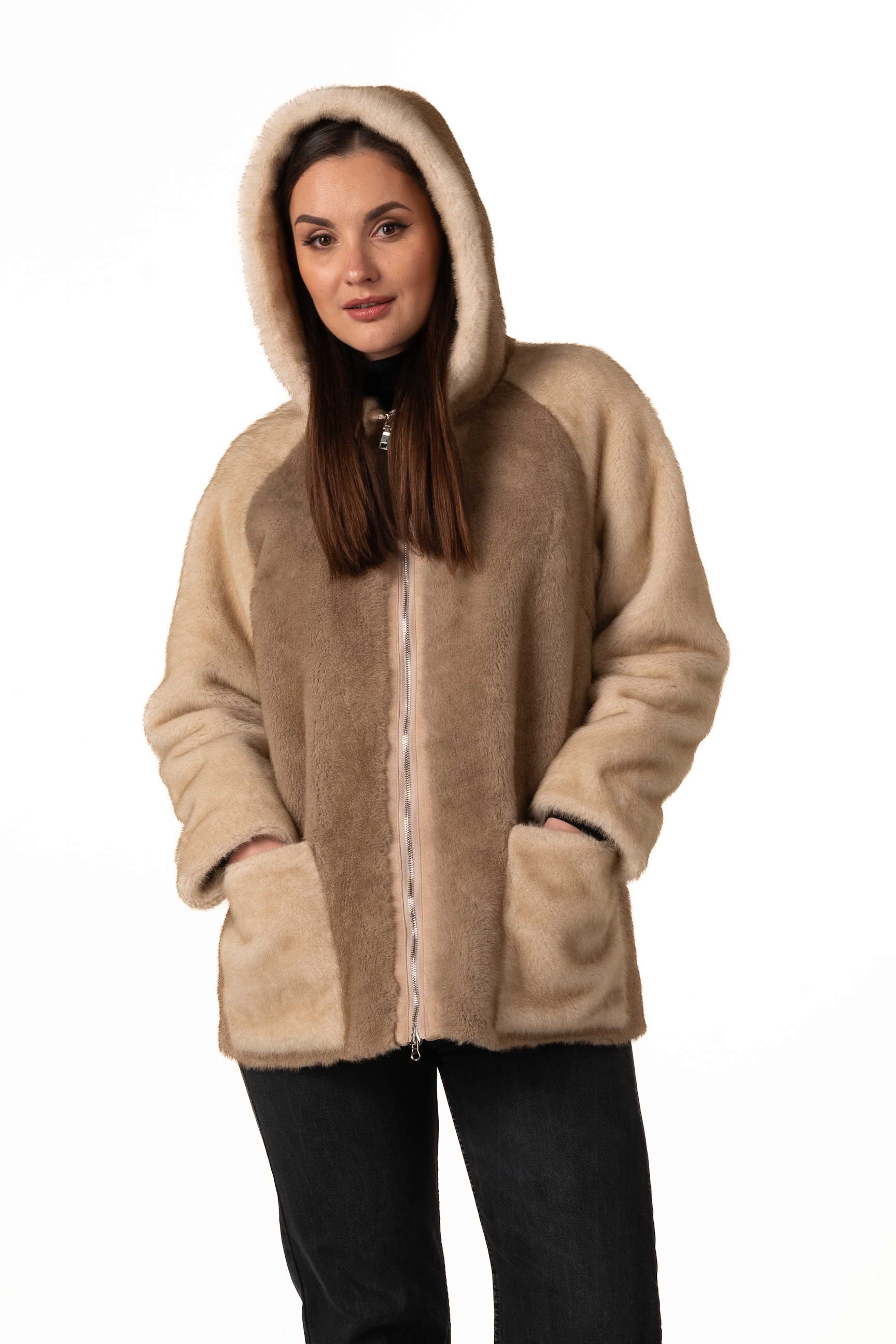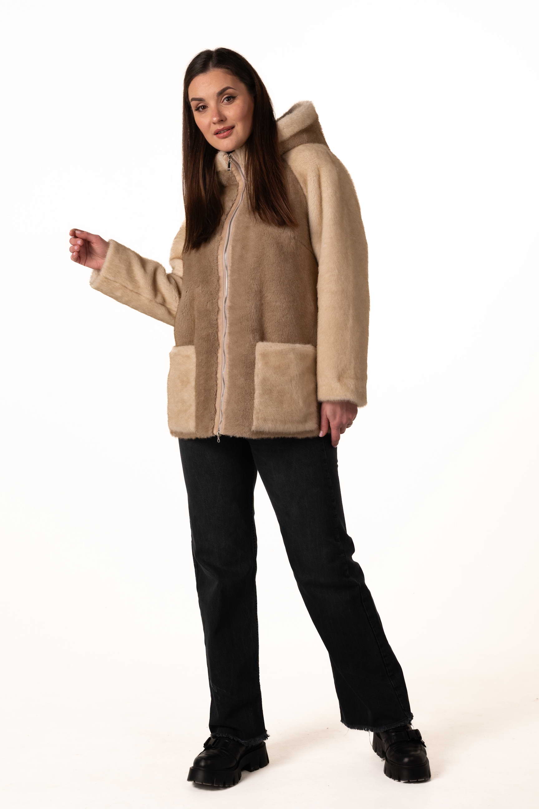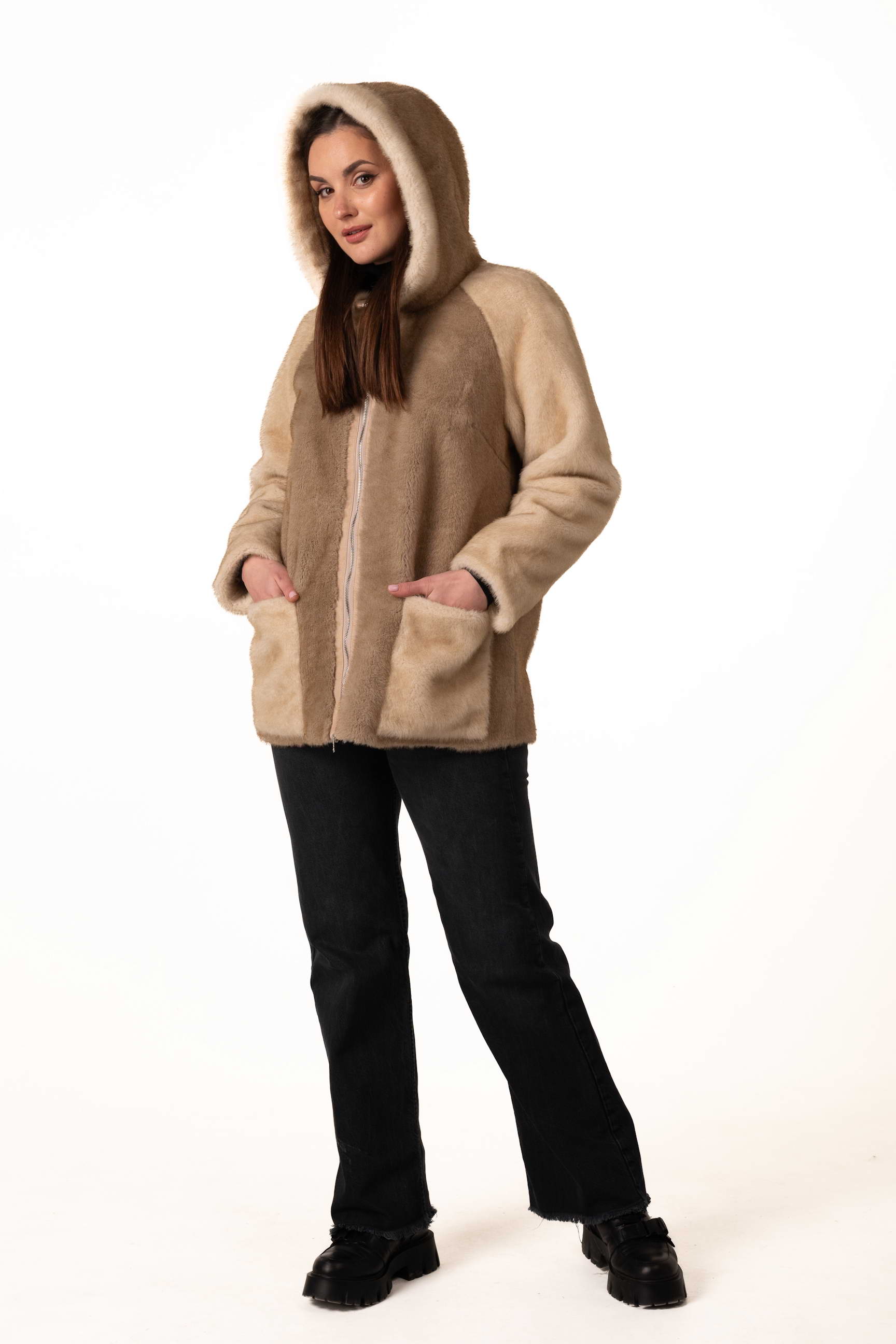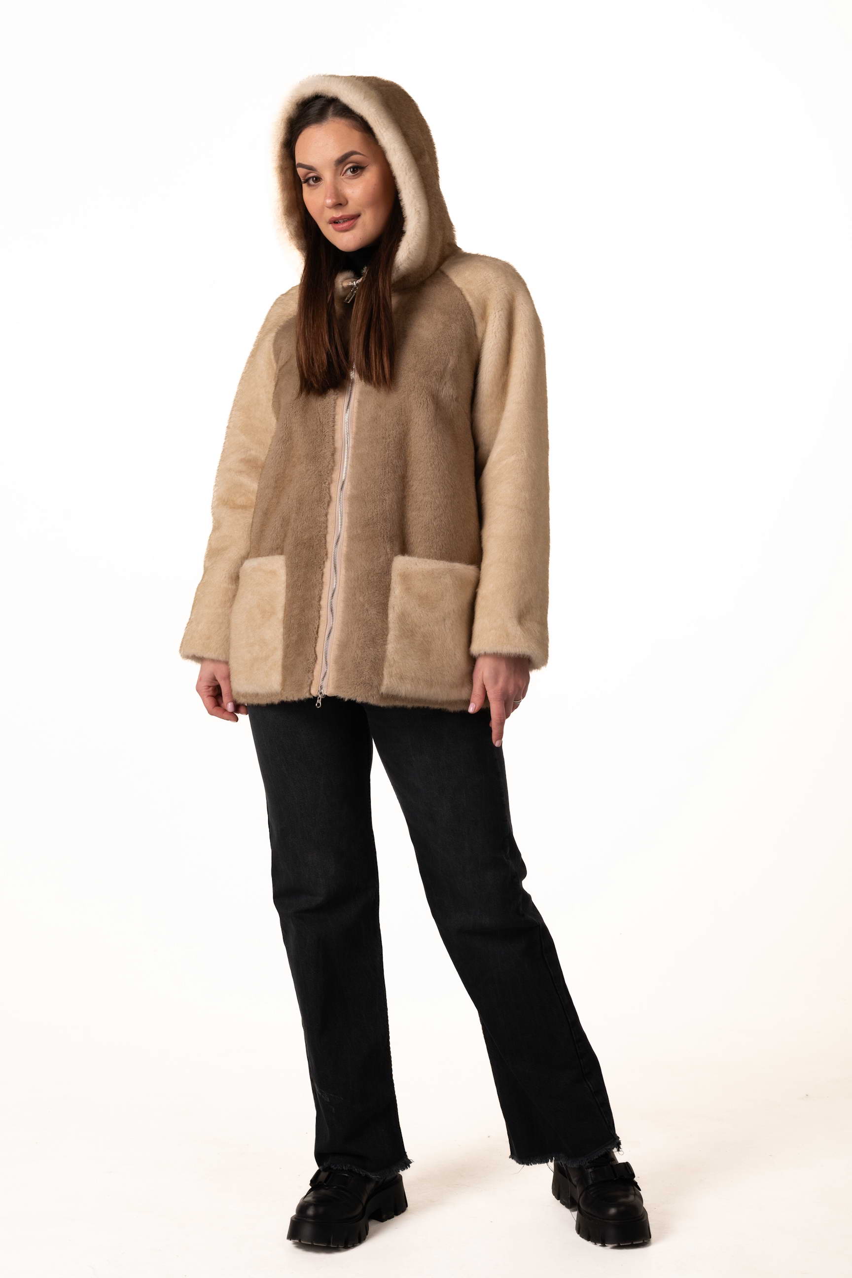 Прямий крій створює акуратний силует, не обмежує рухів і дозволяє легко поєднувати шубу з різними стилями — від casual до елегантного.