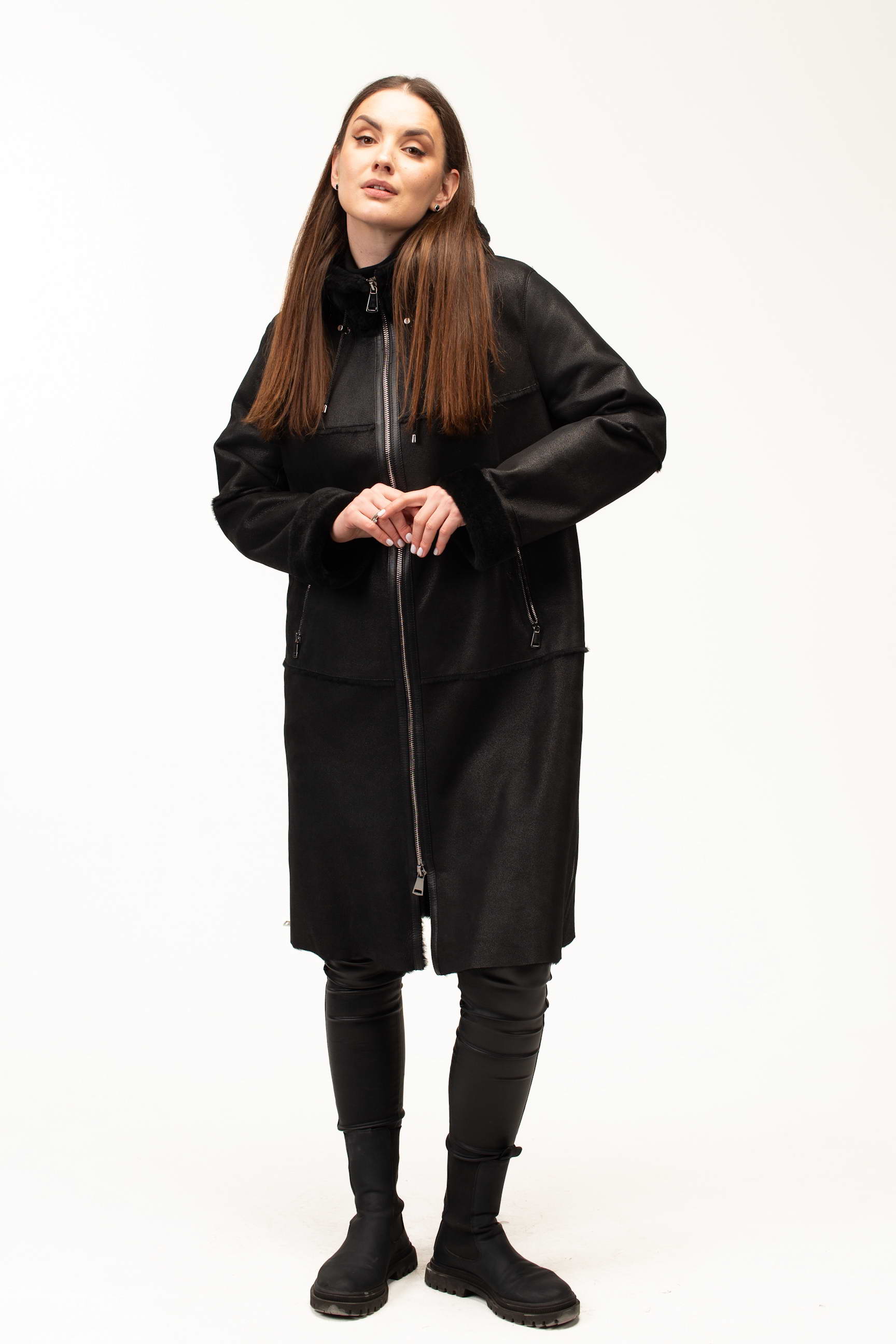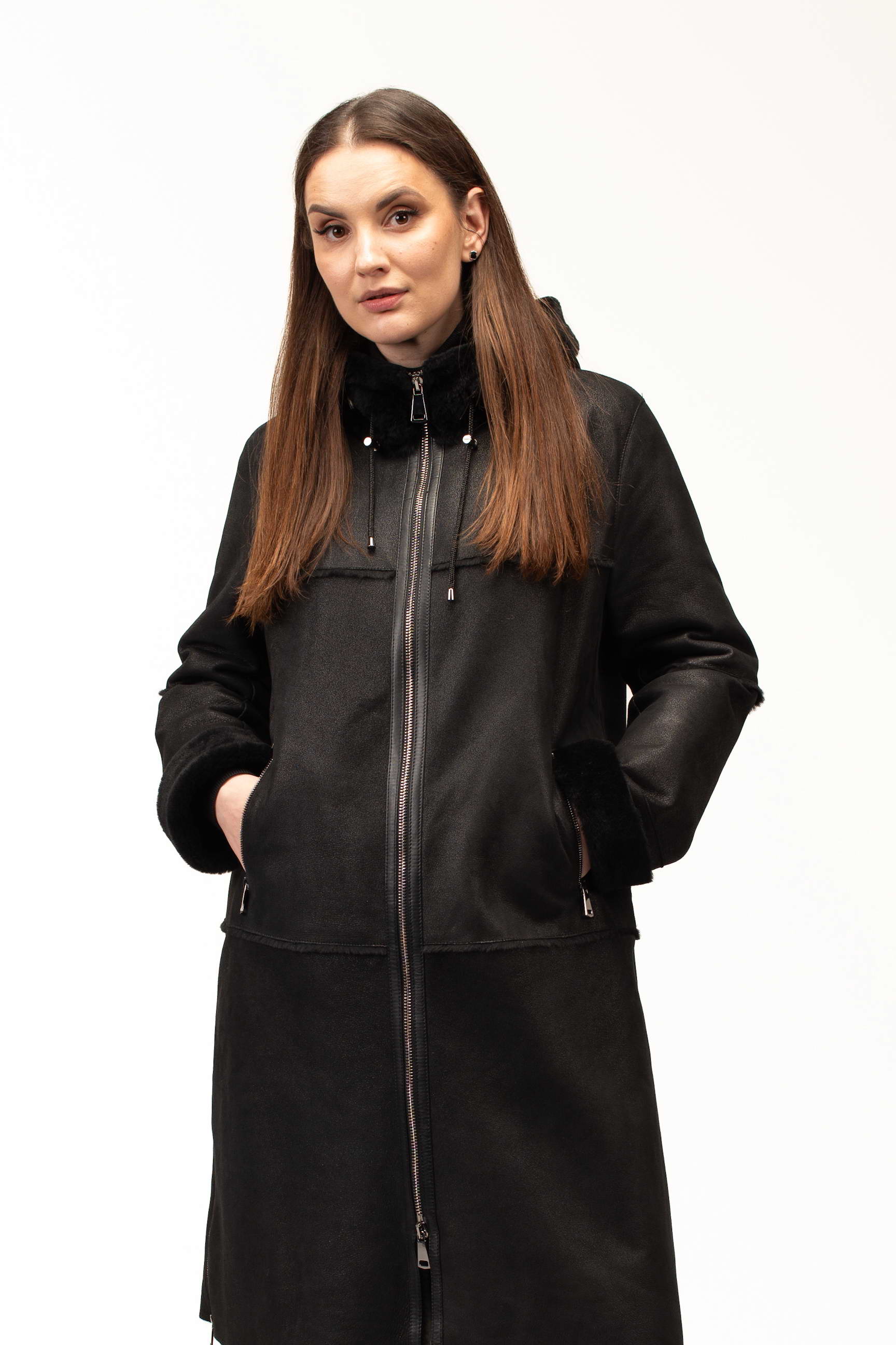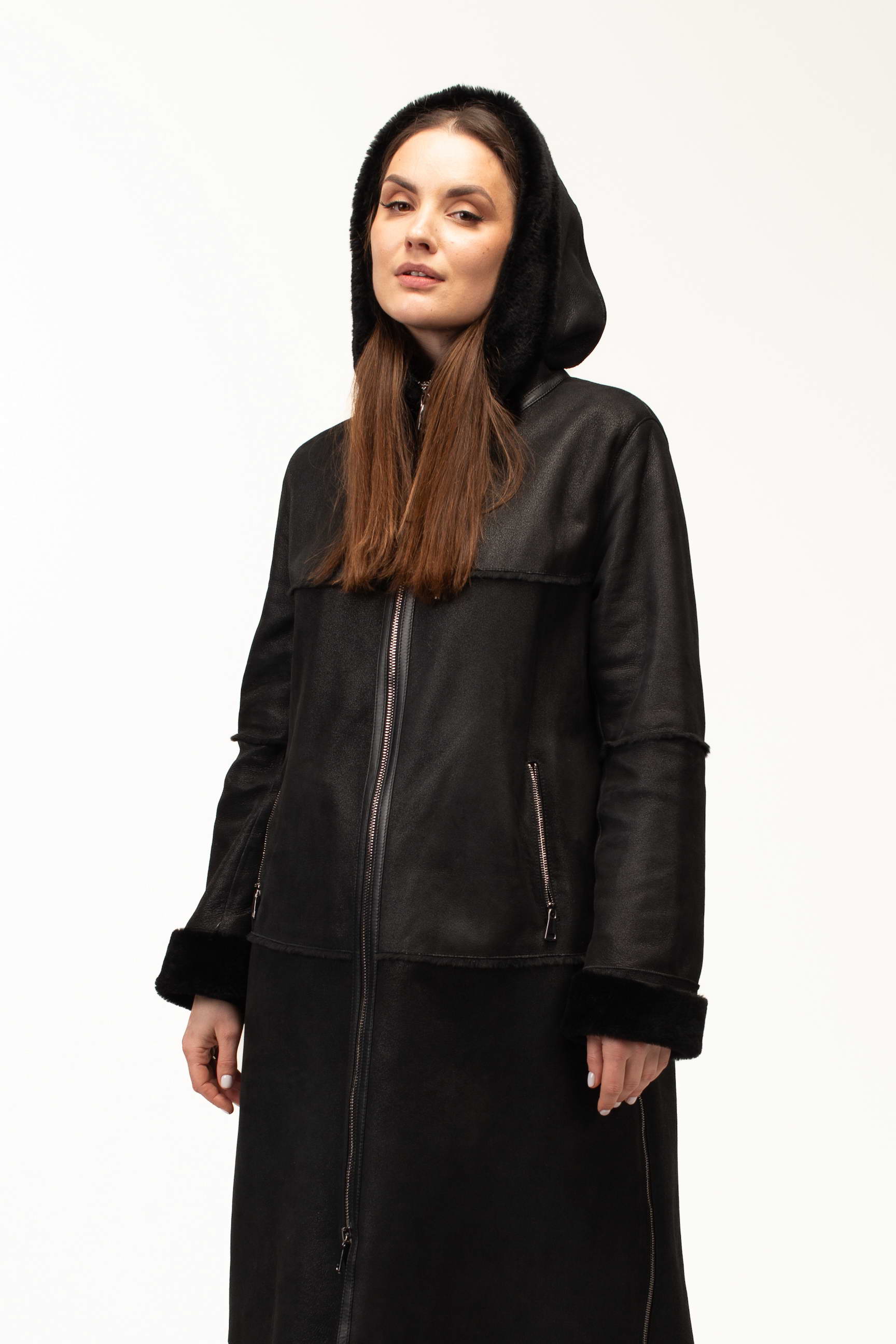 Класичний чорний колір робить модель універсальною та практичною, дозволяючи легко комбінувати її з будь-яким гардеробом. Така дублянка виглядає елегантно й сучасно, підходить як для повсякденних образів, так і для більш стриманого міського стилю. Подовжена довжина 112 см забезпечує додатковий захист від холоду, огортаючи та зігріваючи у найхолодніші дні.