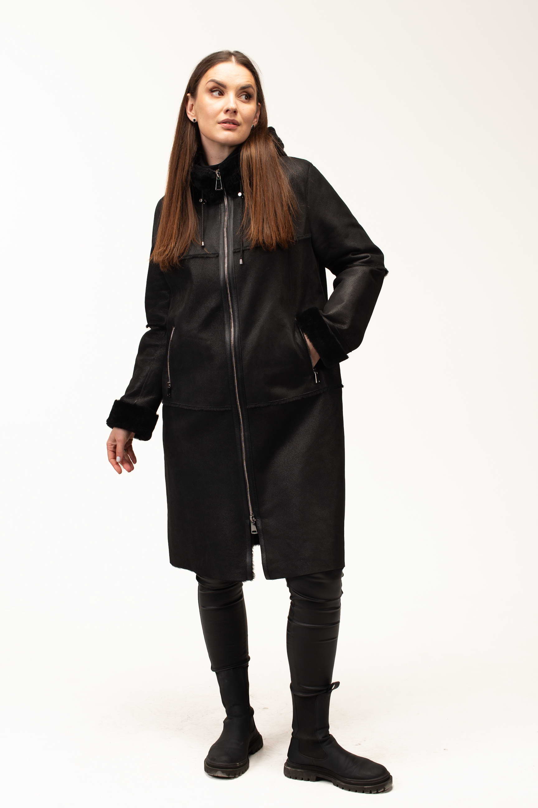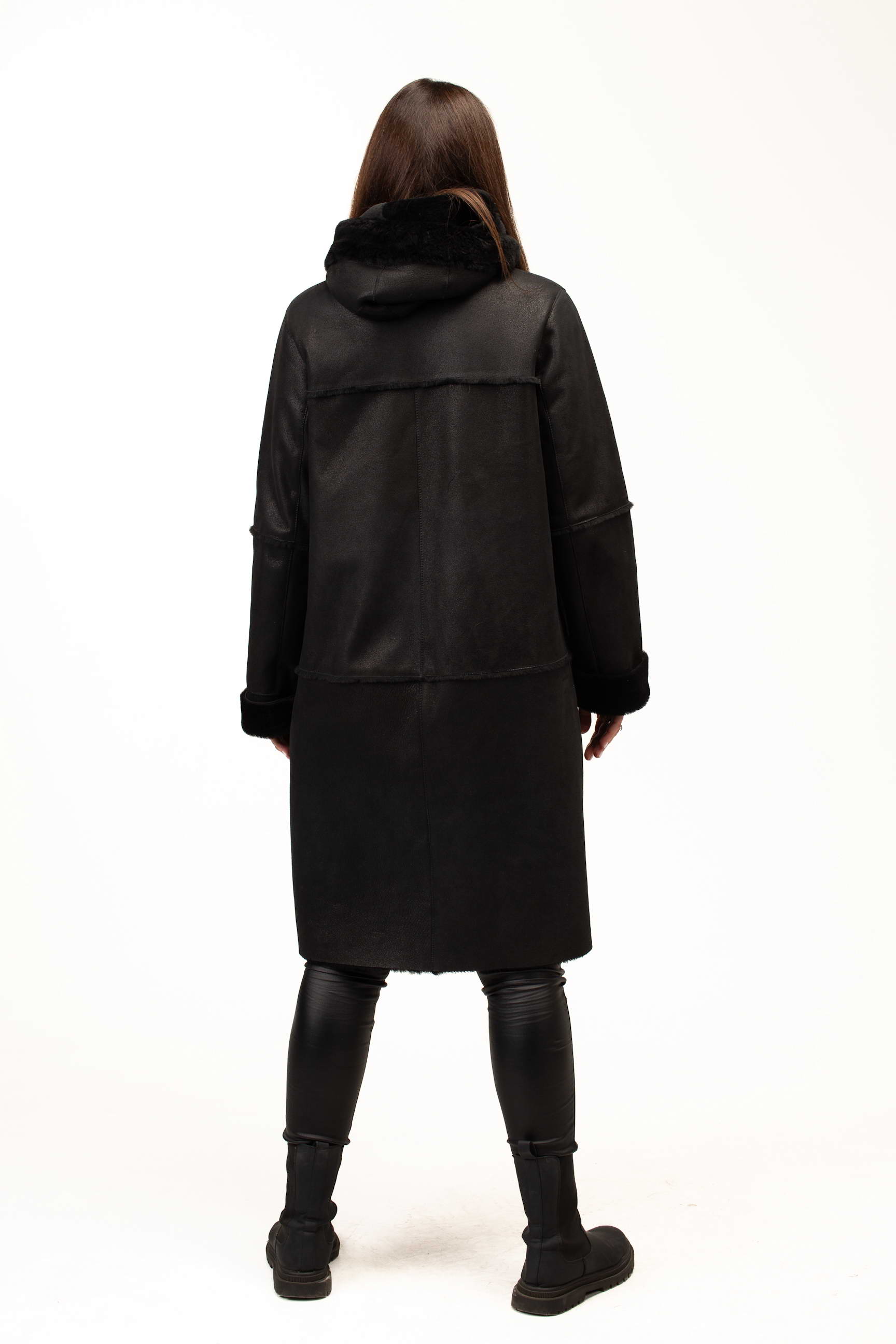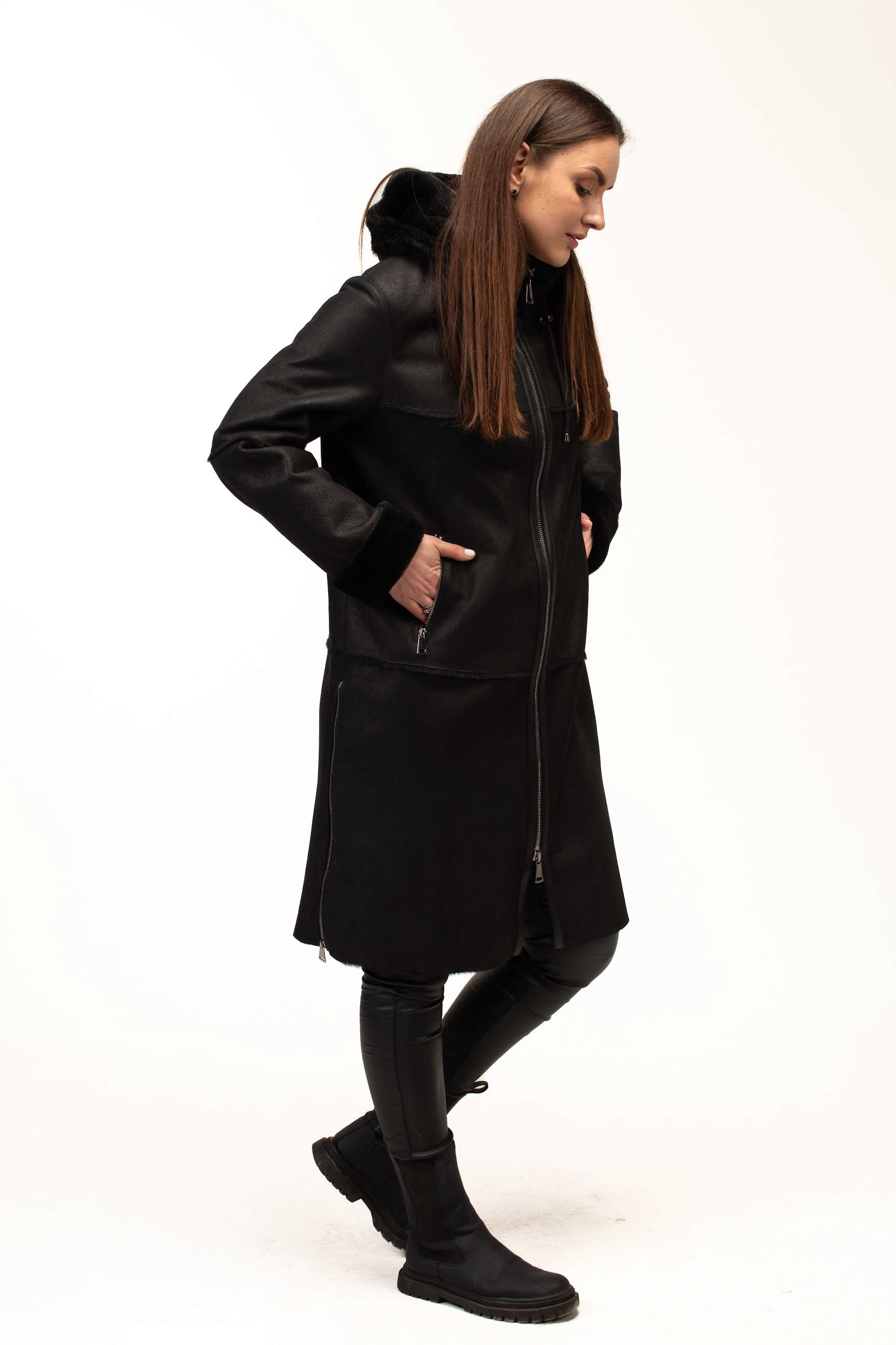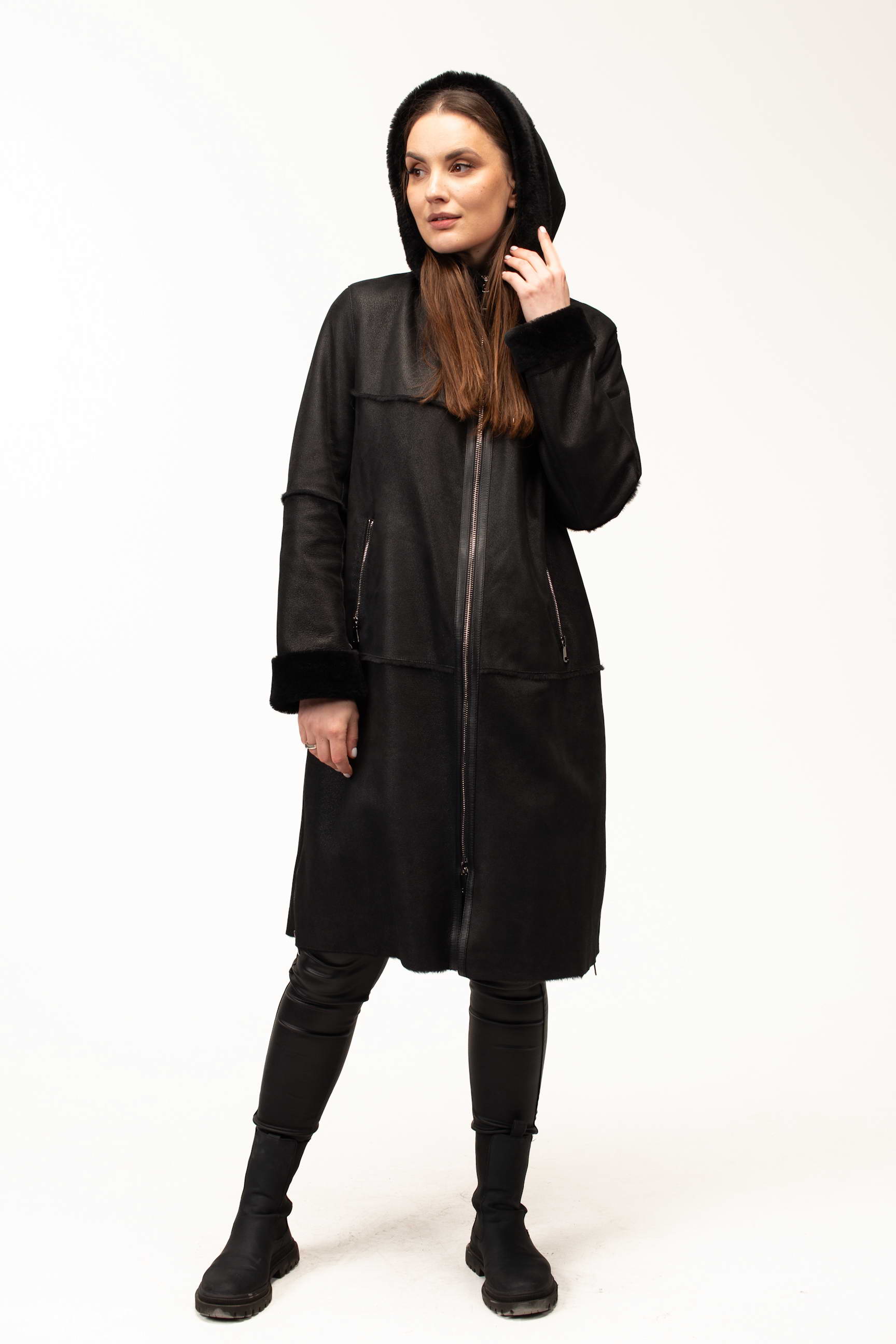 Класичний чорний колір робить модель універсальною та практичною, дозволяючи легко комбінувати її з будь-яким гардеробом. Така дублянка виглядає елегантно й сучасно, підходить як для повсякденних образів, так і для більш стриманого міського стилю. Подовжена довжина 112 см забезпечує додатковий захист від холоду, огортаючи та зігріваючи у найхолодніші дні.