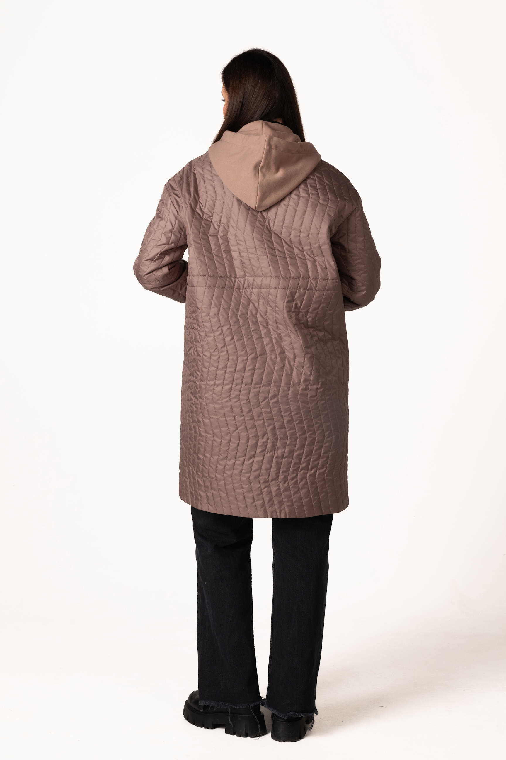 Бежевий колір додає м’якості та елегантності, роблячи образ ніжним і універсальним. Відкладний комір зі знімним трикотажним капюшоном захищає від вітру та дощу, а внутрішня куліска по талії дозволяє регулювати силует і підкреслювати жіночні форми.