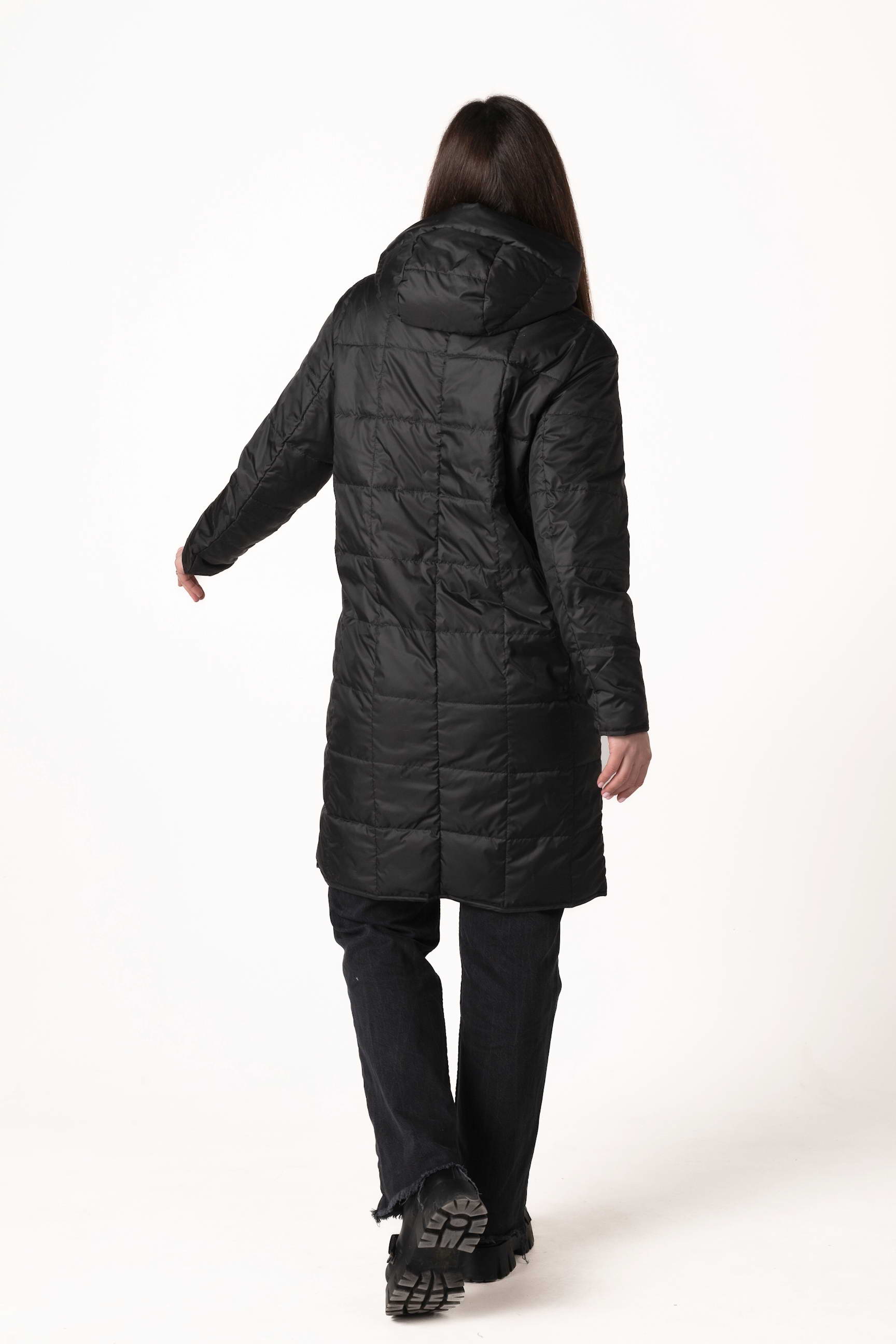 Стильна прострочка у вигляді квадратів створює сучасний візуальний акцент і додає виробу акуратного вигляду. Довжина 100 см забезпечує додатковий захист від холоду та робить модель практичною для щоденних прогулянок.