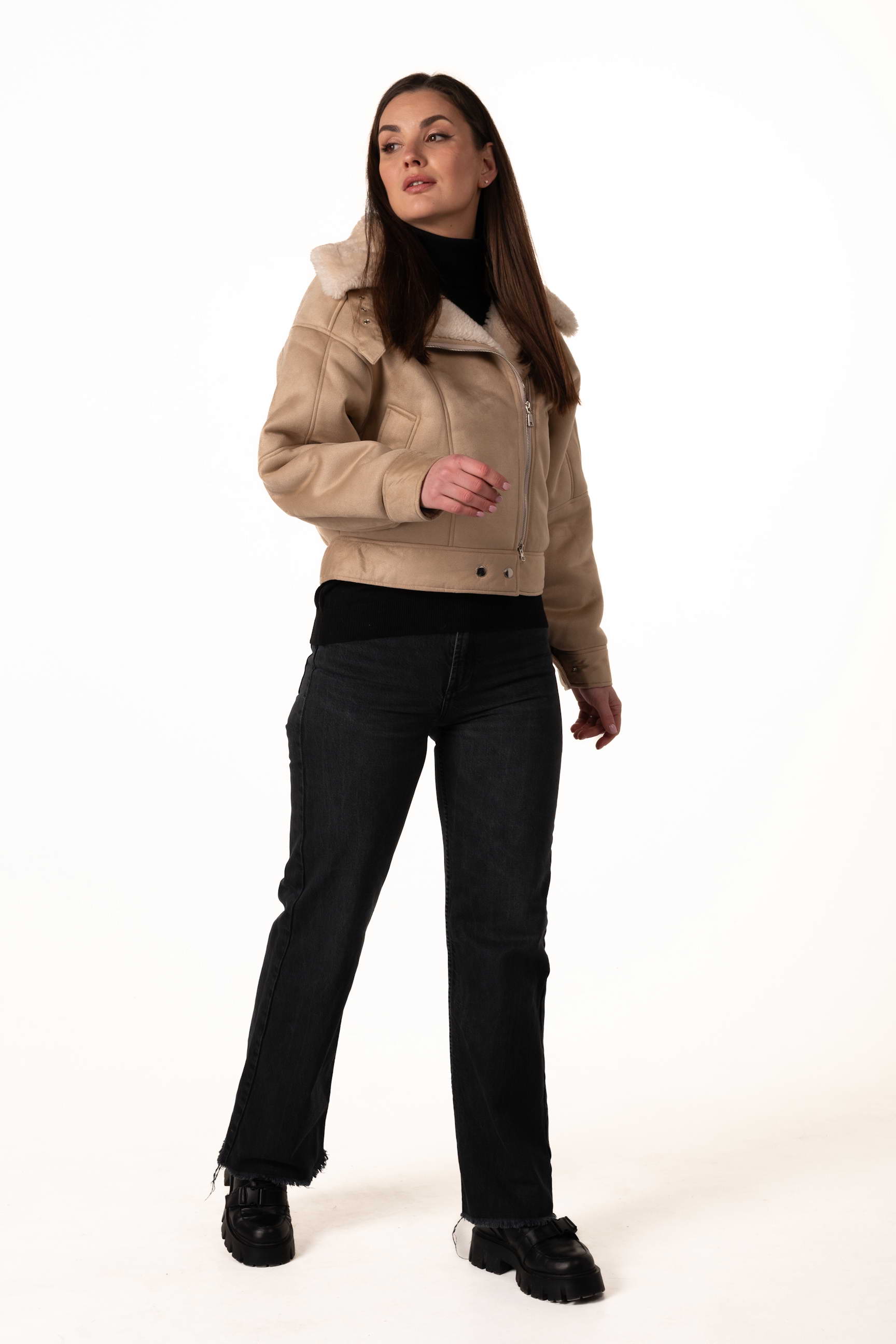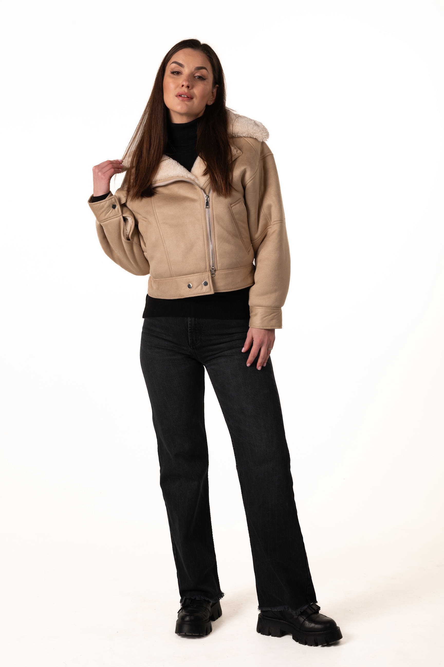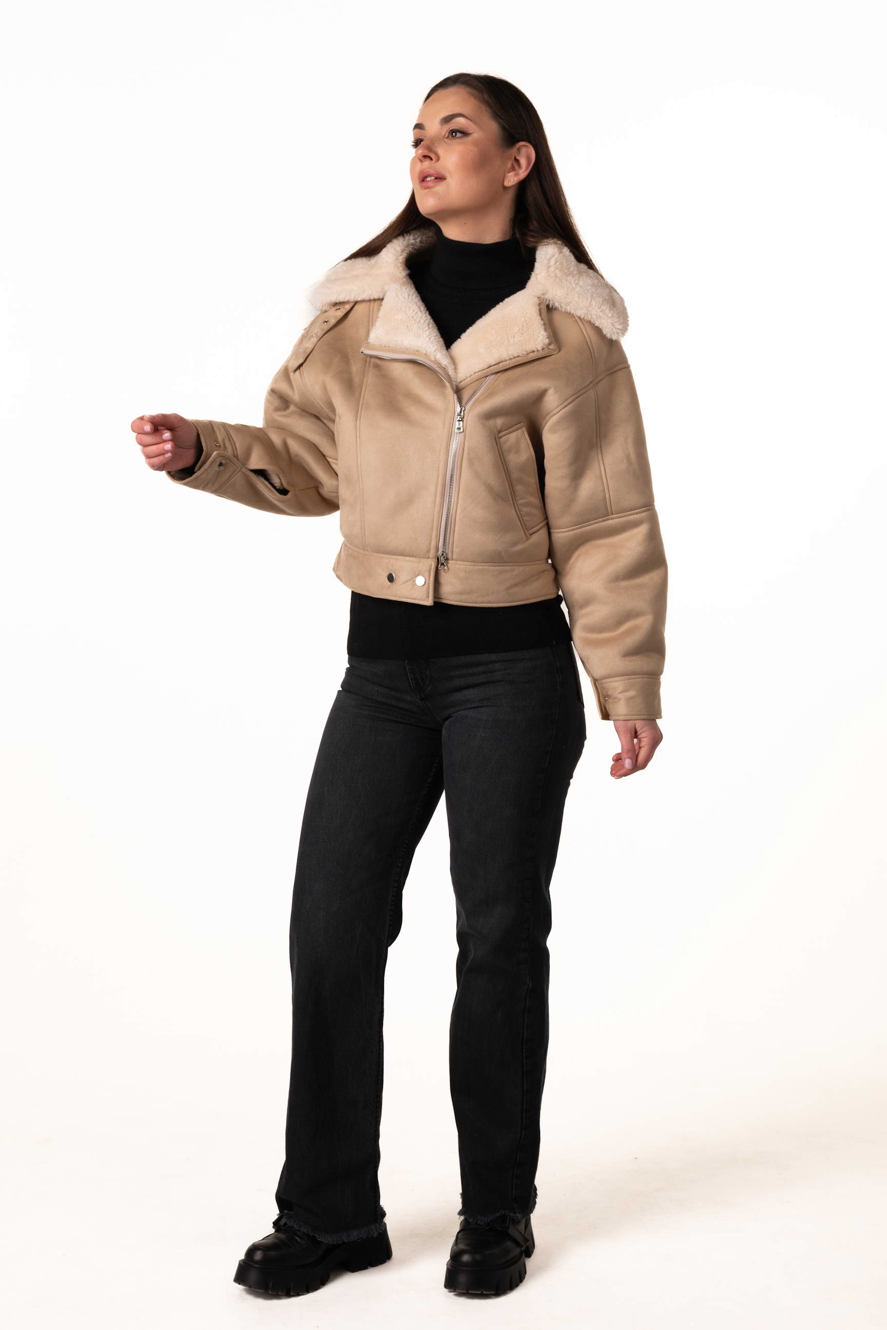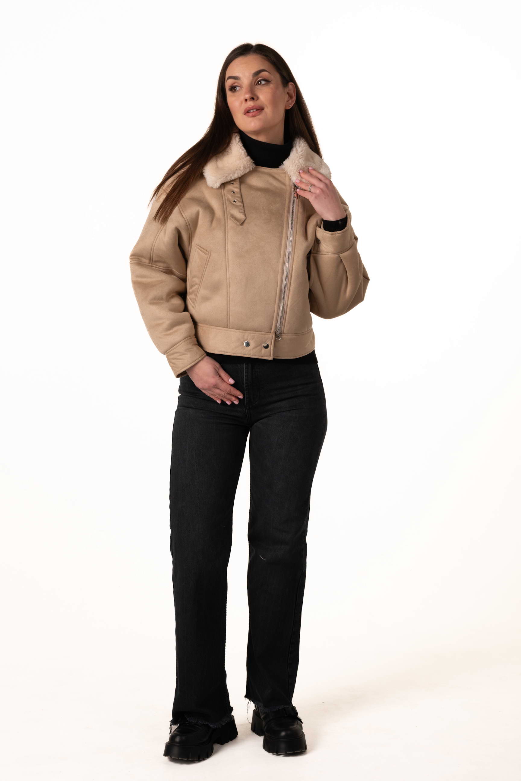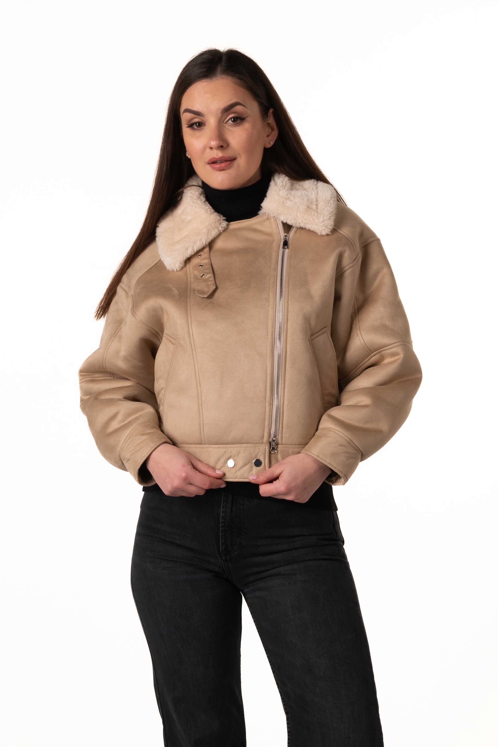 Ця модель стане чудовим вибором для тих, хто шукає, де купити жіночу штучну дублянку-бомбер, що поєднує модний дизайн, практичність і високий рівень комфорту.