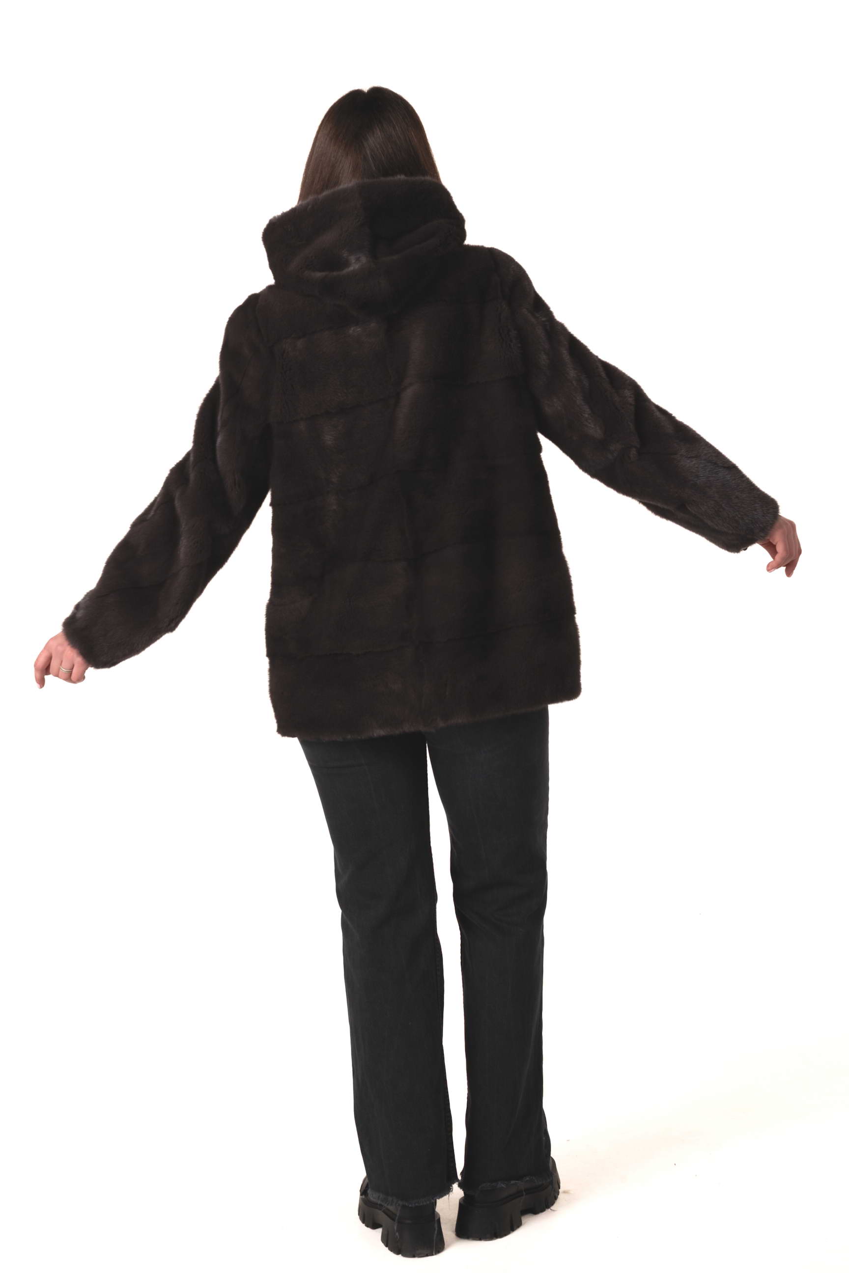 - передня частина з вертикальною викладкою пластин хутра, спинка з горизонтальною викладкою