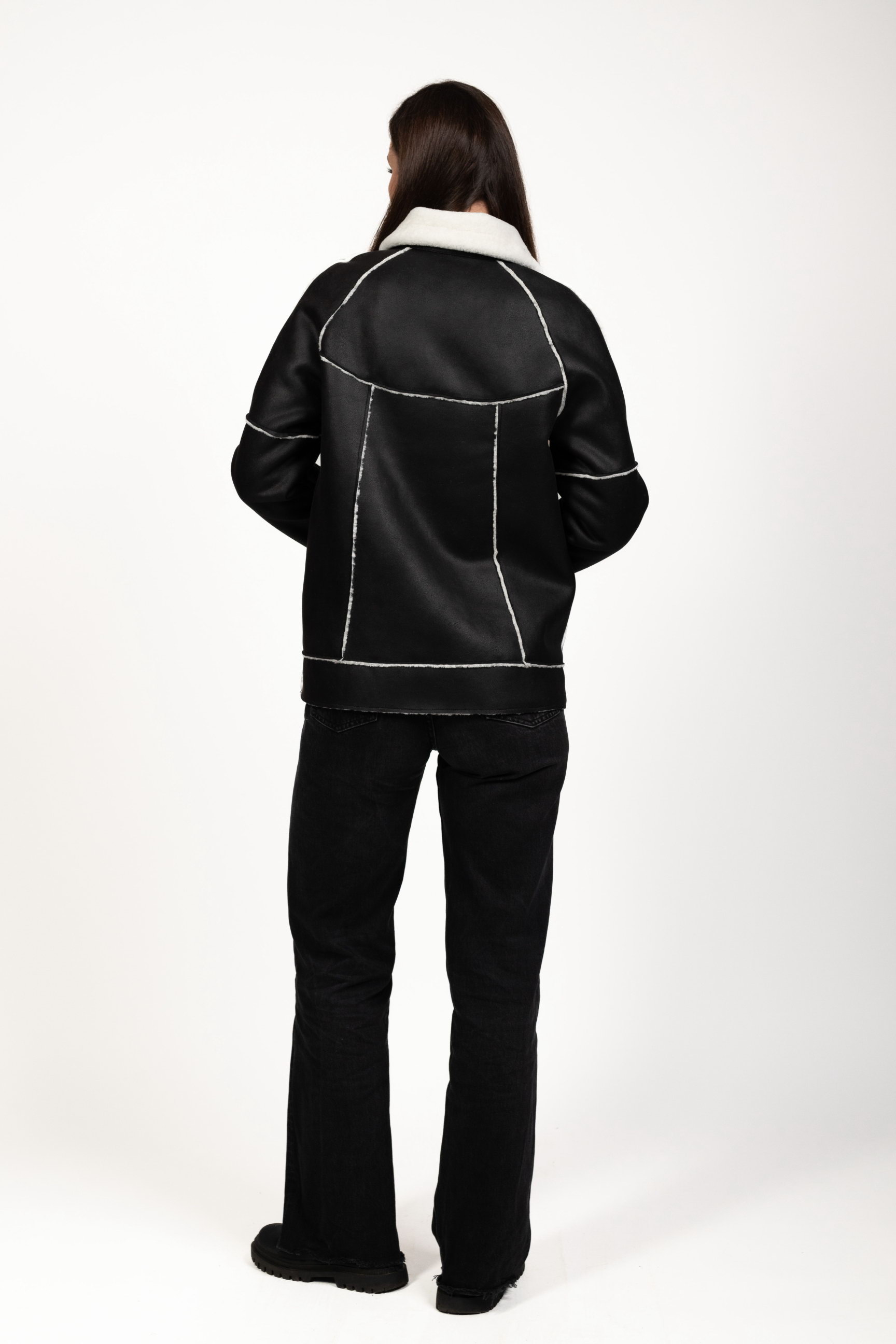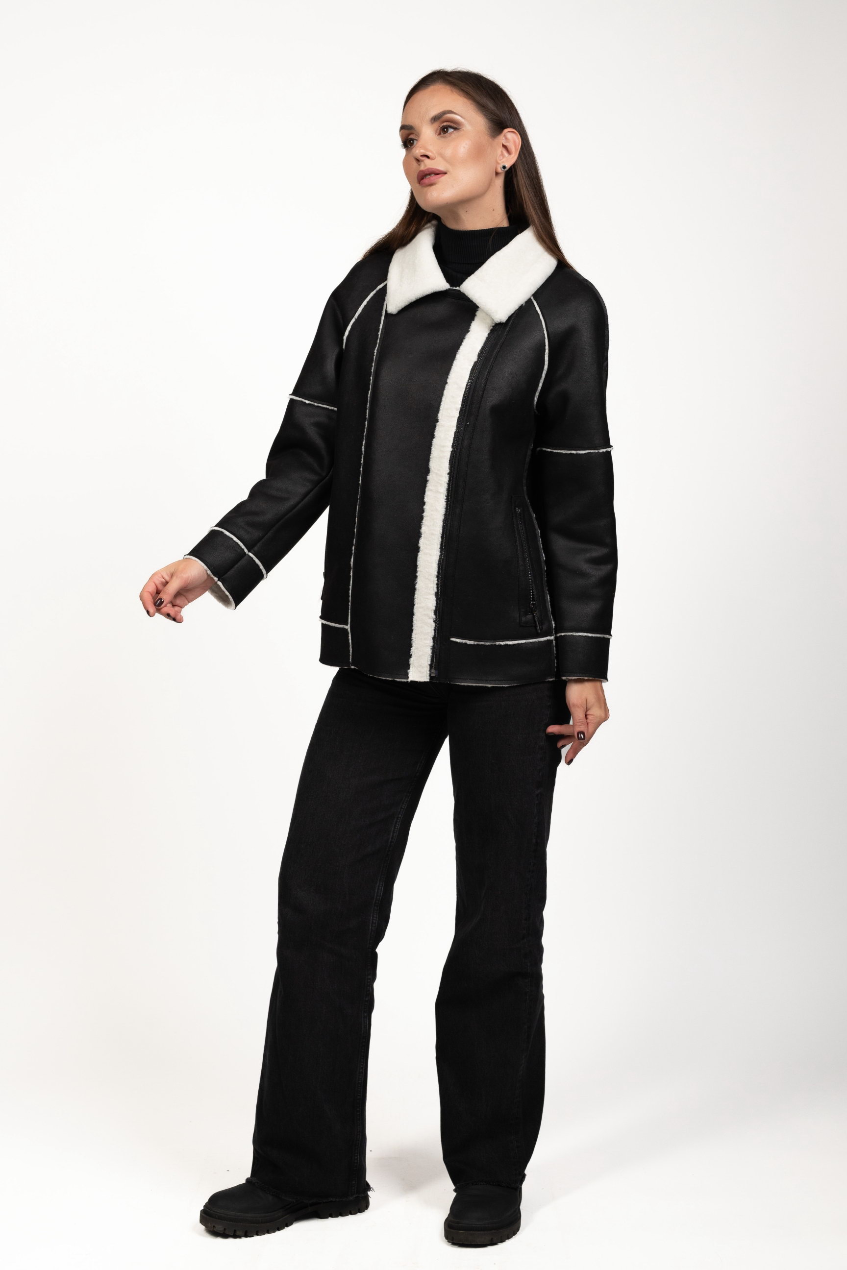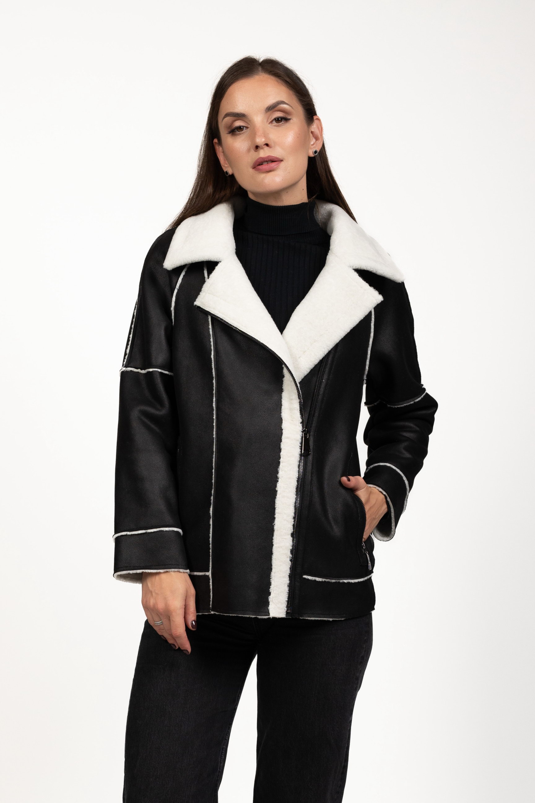 Чорно-білий — ефектне контрастне поєднання, яке привертає увагу та робить образ виразним. Така дублянка стане стильним акцентом зимового гардеробу.