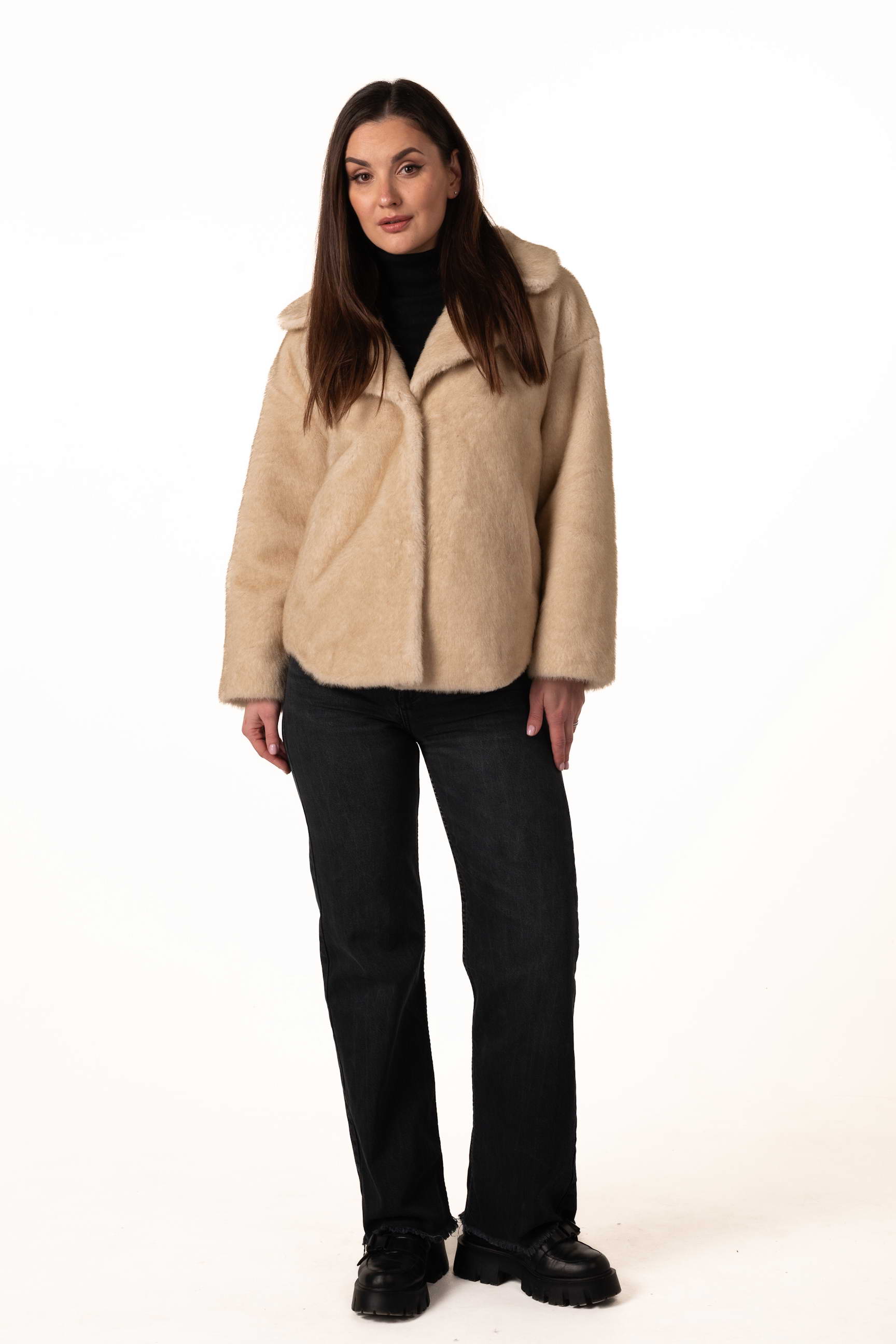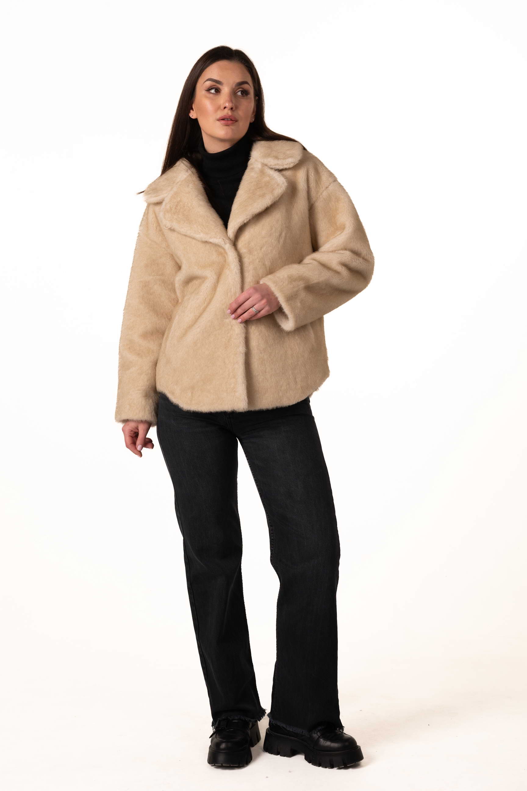 Сучасна жіноча шуба зі штучного хутра — це ідеальне поєднання елегантності, тепла та практичності для холодного сезону. Виріб виготовлений з якісного штучного хутра, яке м’яке, приємне на дотик та добре утримує тепло, при цьому не потребує складного догляду. Бежевий колір додає образу ніжності та універсальності, роблячи шубу ідеальним доповненням до будь-якого зимового гардероба.
