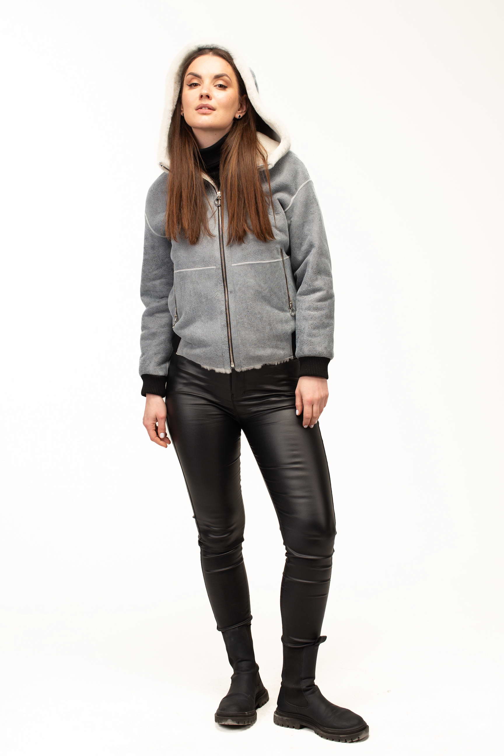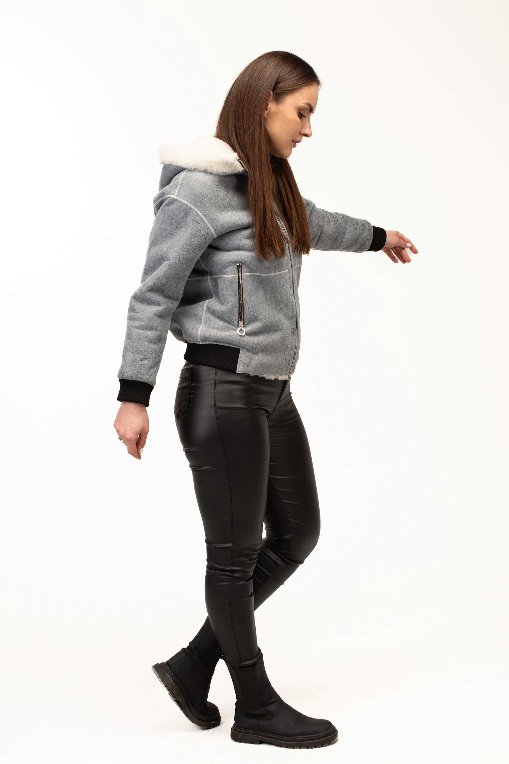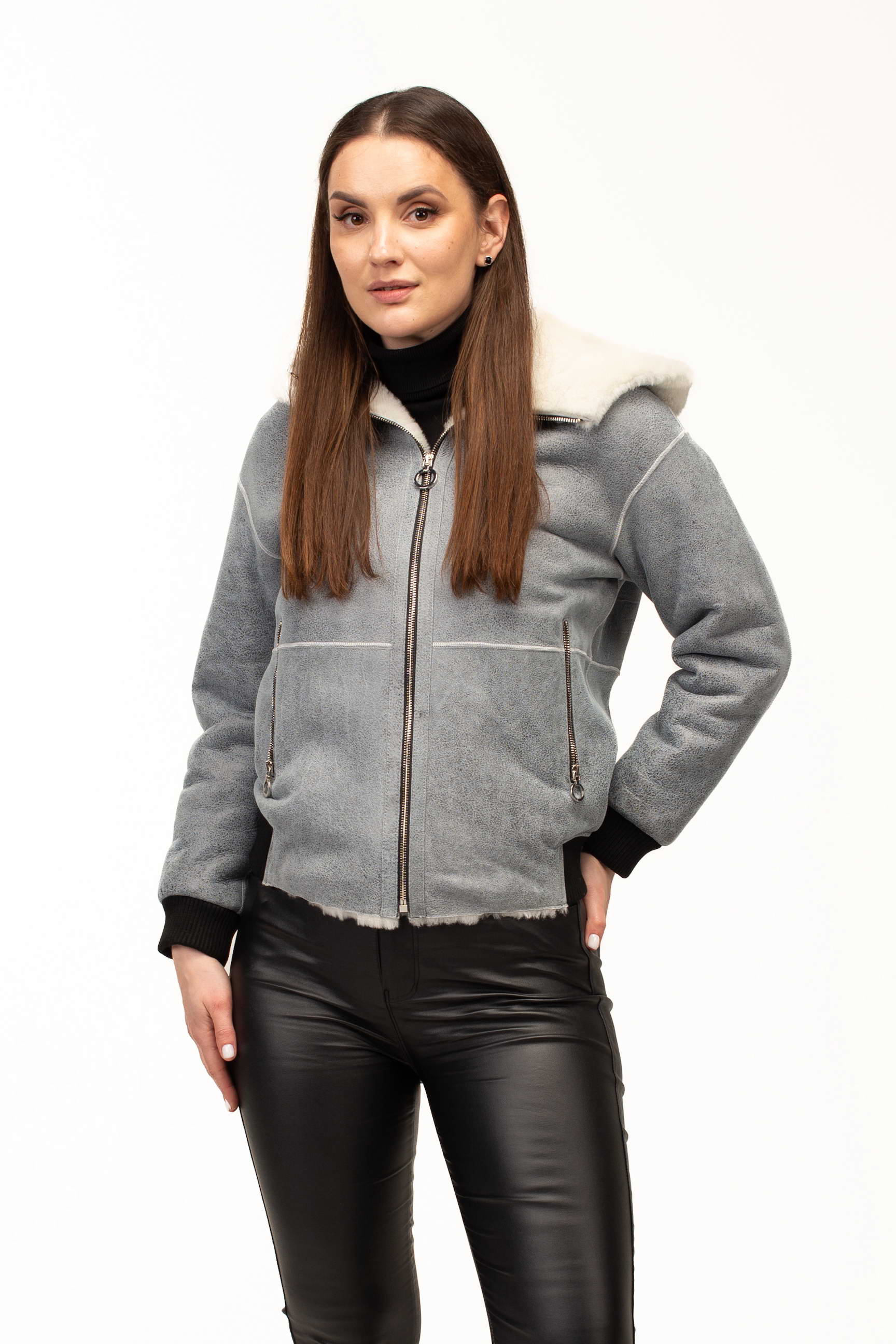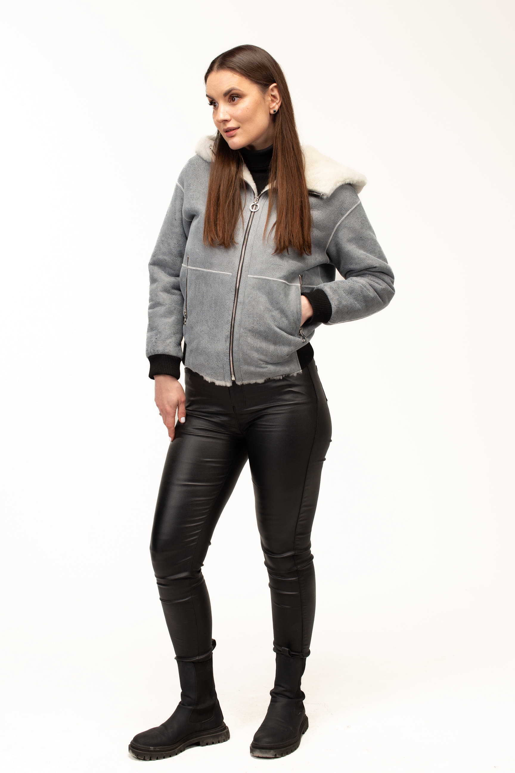 Жіноча натуральна дублянка у сірому кольорі виготовлена з поєднання замші в накаті та натуральної овчини, що забезпечує надійний захист від холоду та комфорт у зимовий сезон. Замша з захисним покриттям від вологи підвищує практичність виробу, допомагаючи зберігати його привабливий вигляд навіть за несприятливих погодних умов, а овчина всередині гарантує тепло та затишок.