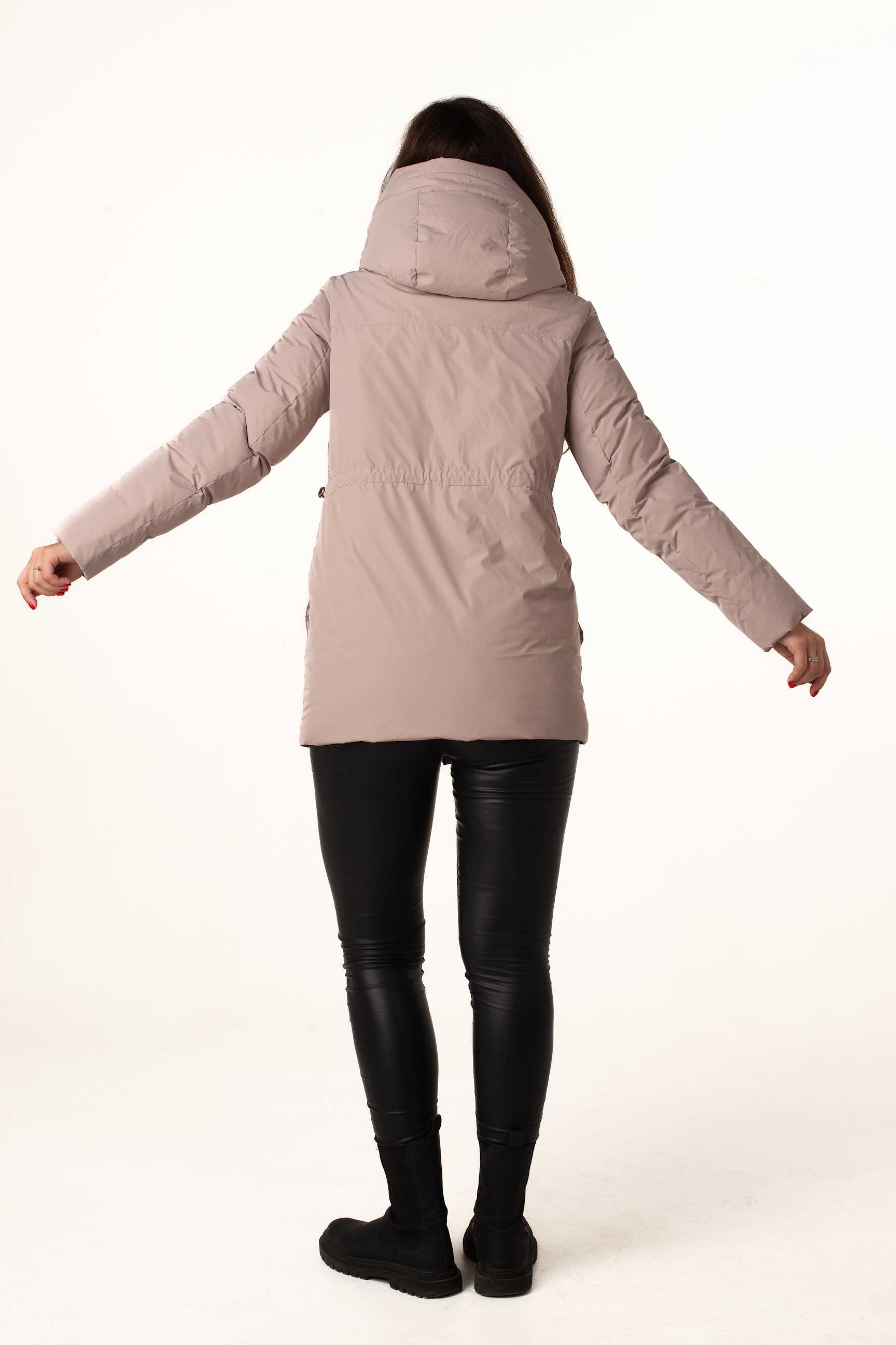 Бежевий жіночий біопуховик поєднує тепло, легкість і сучасний дизайн. Подовжена модель з декоративними деталями створена для максимального комфорту у холодну пору року.